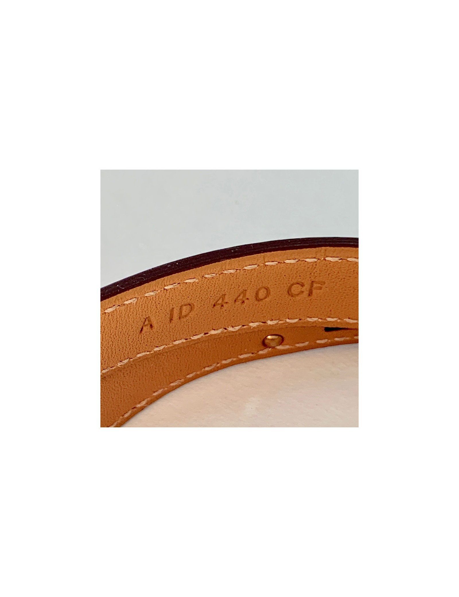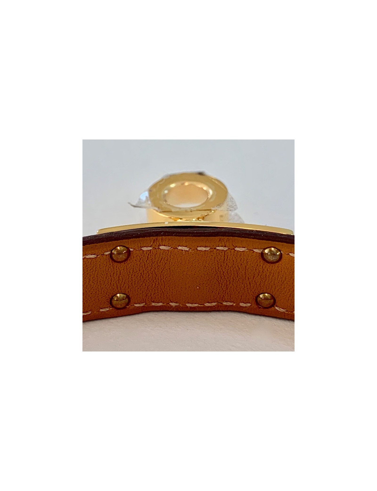 Last items in stock BRACELETS Unbranded leather and 18 k gold bracelet AUTRES MARQUES 16575 880.00 € Unbranded leather and 18 k gold bracelet Condition: good (the gold parts have patina)Matrials: leather, 18 carats goldColors: brown, goldMeasurements: length: 16cm, height: 1cmDetails: Lovely rigid bracelet in aged brown leather with beige saddle stitching. The corners are in solid 18-carat gold, set with 2 aged coins, in the spirit of Bulgari jewelry. It... Add to cart