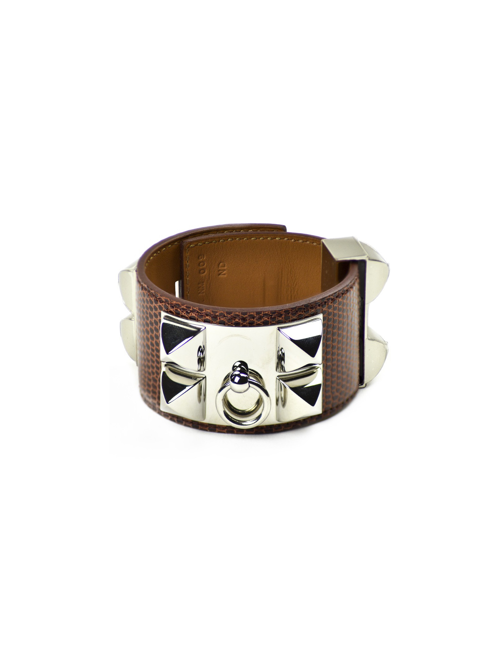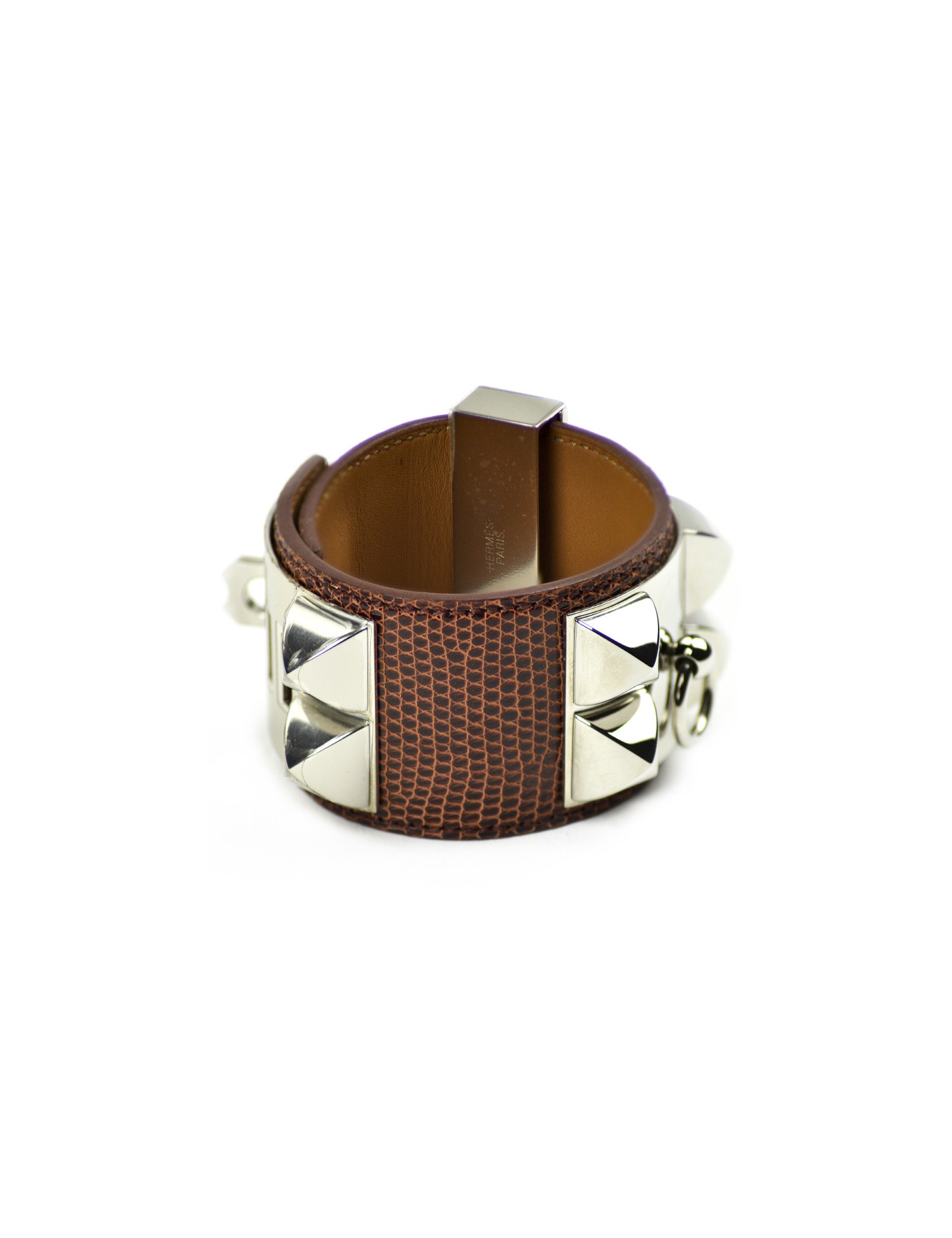 HERMES dog collar bracelet smooth Etrusque nilocus lezard leather