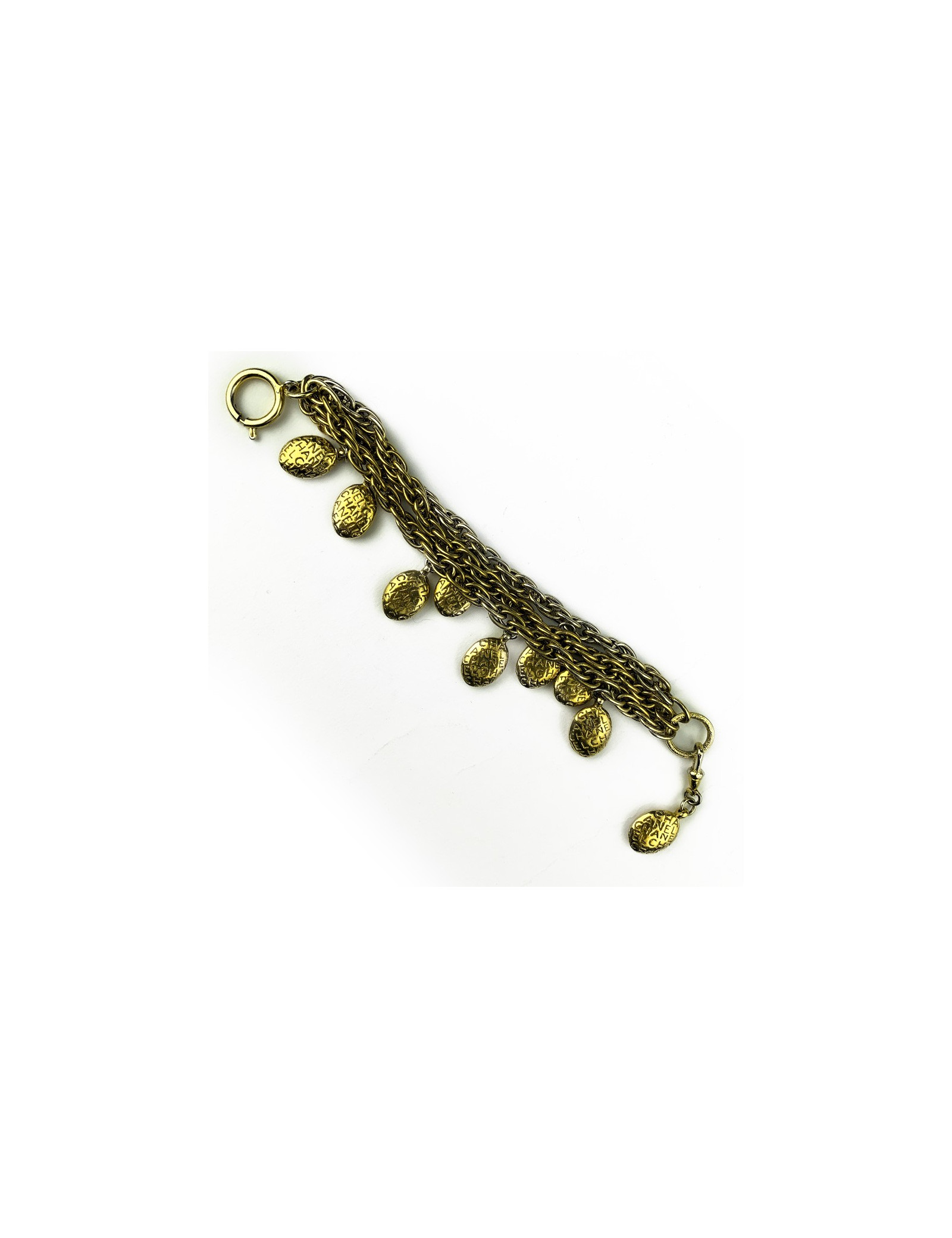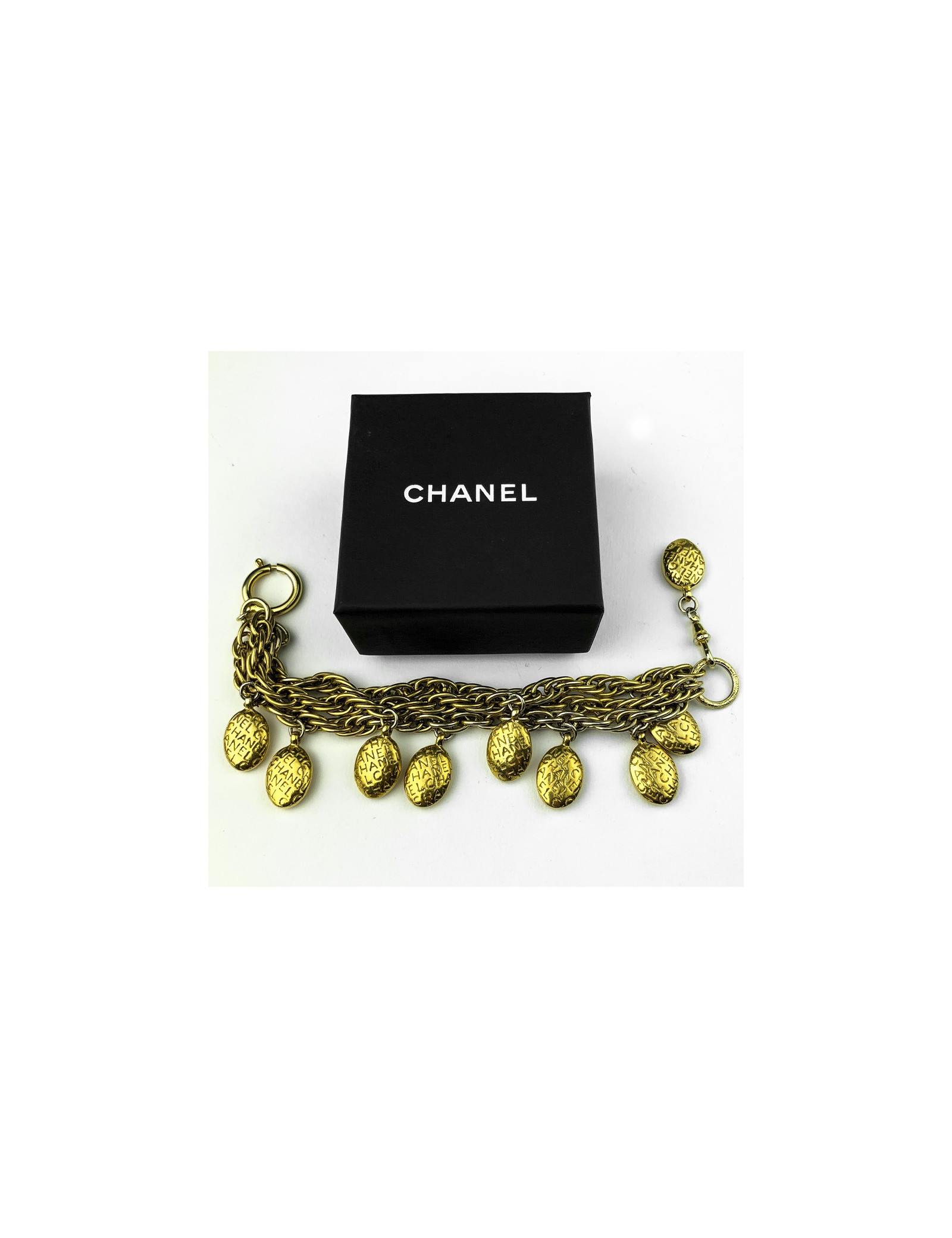 BRACELETS CHANEL black and gold metal chain pattern bracelet CHANEL 23251 730.00 € CHANEL black and gold metal chain pattern bracelet Condition: good (micro-scratches on the bracelet)Made in FranceMaterials: metalColors: gold, blackMeasurements: internal diameter: 6.7cm, width 1.6cmyear: Spring 2004 Delivered in a Valois Vintage Paris pouch Add to cart