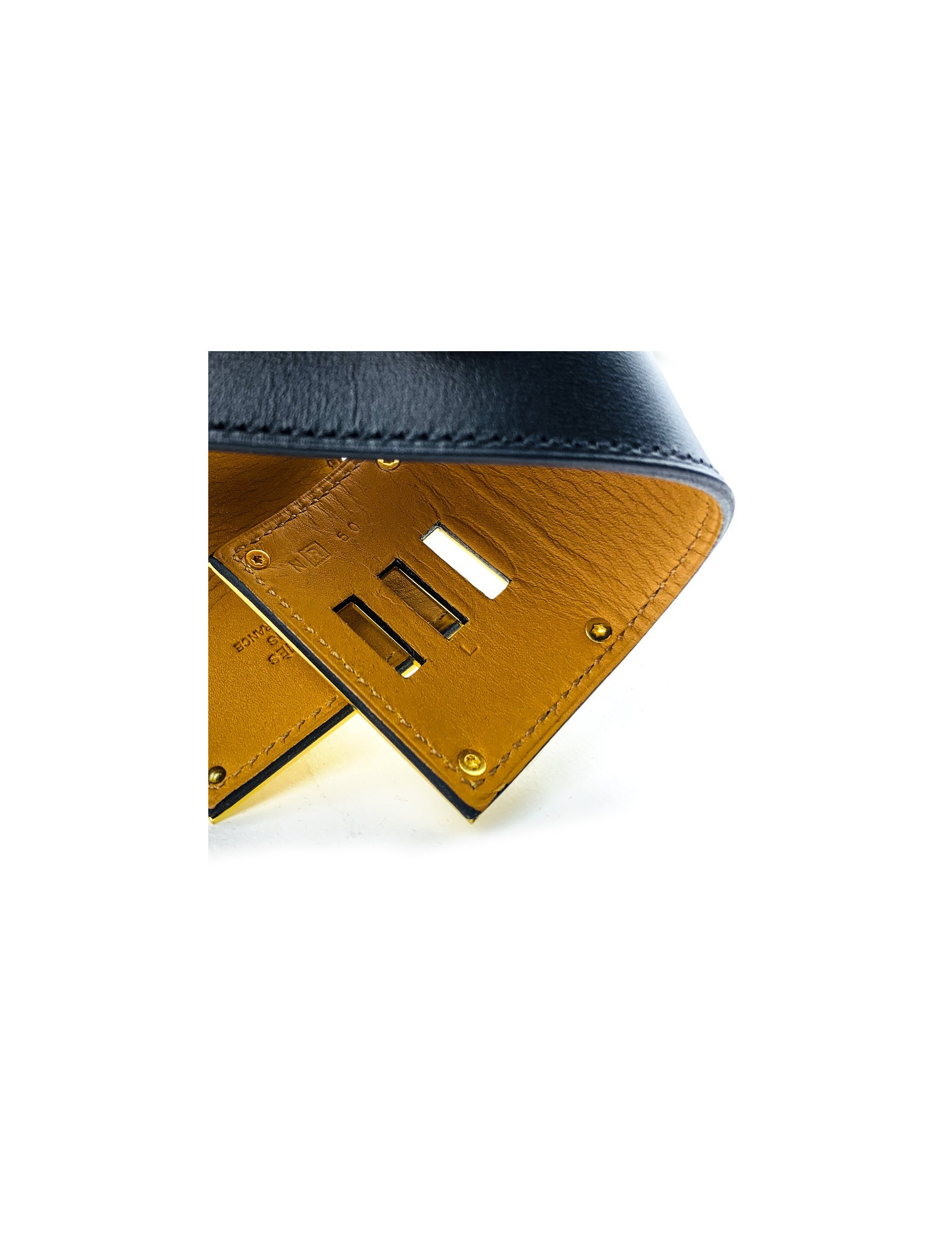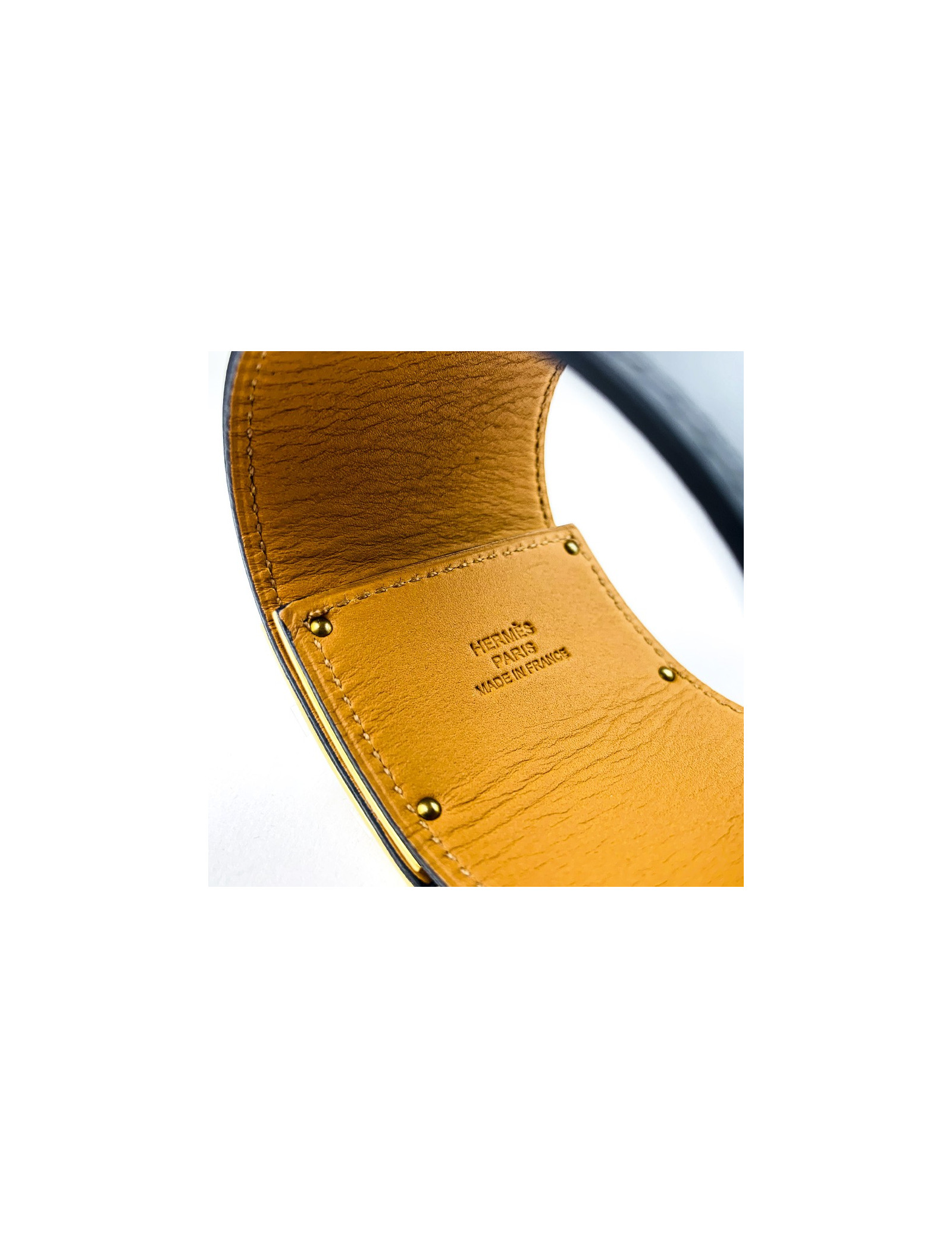 Last items in stock BRACELETS Unbranded leather and 18 k gold bracelet AUTRES MARQUES 16575 880.00 € Unbranded leather and 18 k gold bracelet Condition: good (the gold parts have patina)Matrials: leather, 18 carats goldColors: brown, goldMeasurements: length: 16cm, height: 1cmDetails: Lovely rigid bracelet in aged brown leather with beige saddle stitching. The corners are in solid 18-carat gold, set with 2 aged coins, in the spirit of Bulgari jewelry. It... Add to cart
