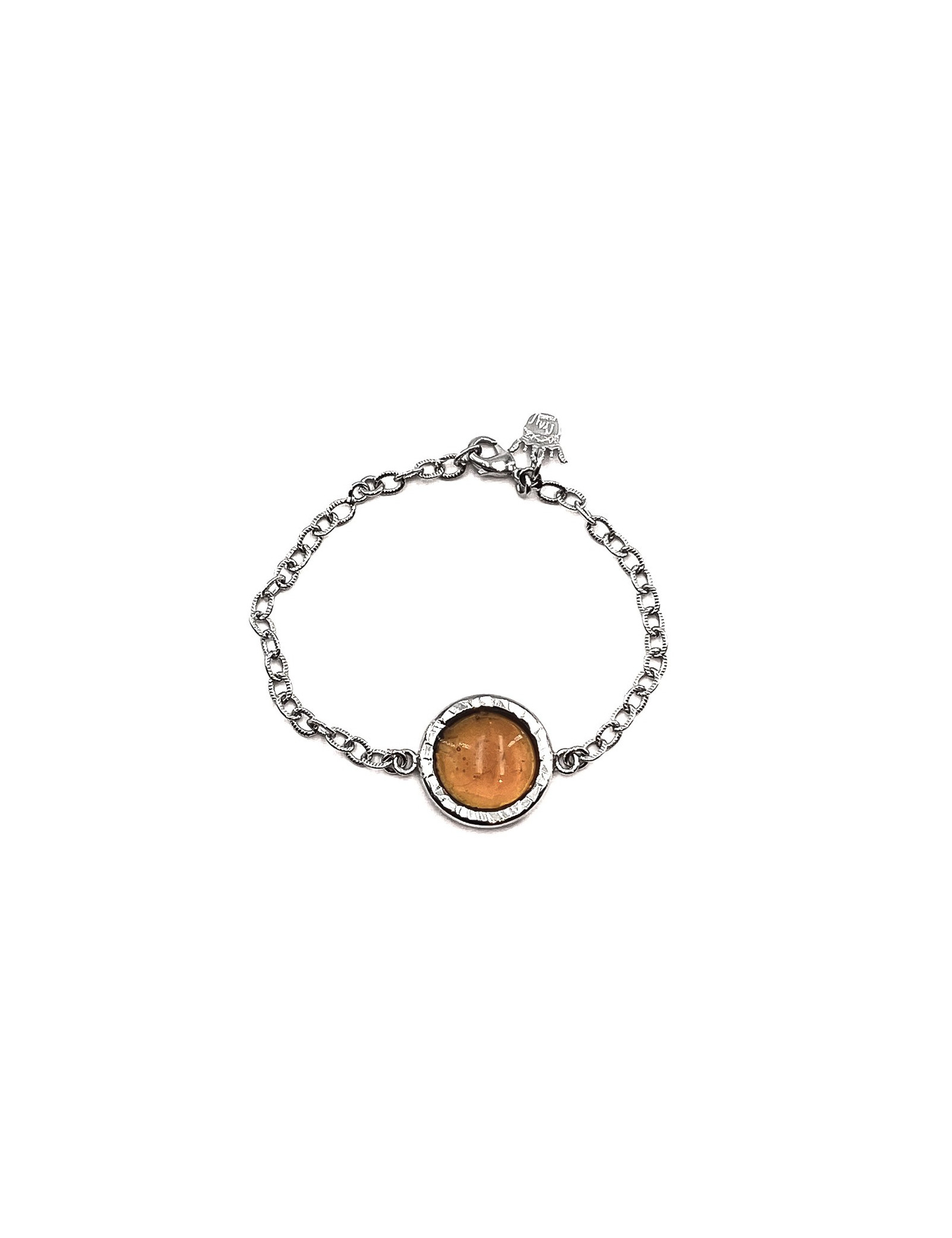 Last items in stock BRACELETS MARGUERITE DE VALOIS large molten glass cabochons bracelet MARGUERITE DE VALOIS 14877 300.00 € MARGUERITE DE VALOIS large molten glass cabochons bracelet Made in FranceCondition: very goodMaterials: molten glass, metalColors: white, amber, honey, grey, red, transparent, goldHardware: gold plated metalMeasurements: total length (adjustable): 20cm, width: 1.8cm + pendantsDetails: Entirely handcrafted in France by jewelers who have worked in the past... Add to cart