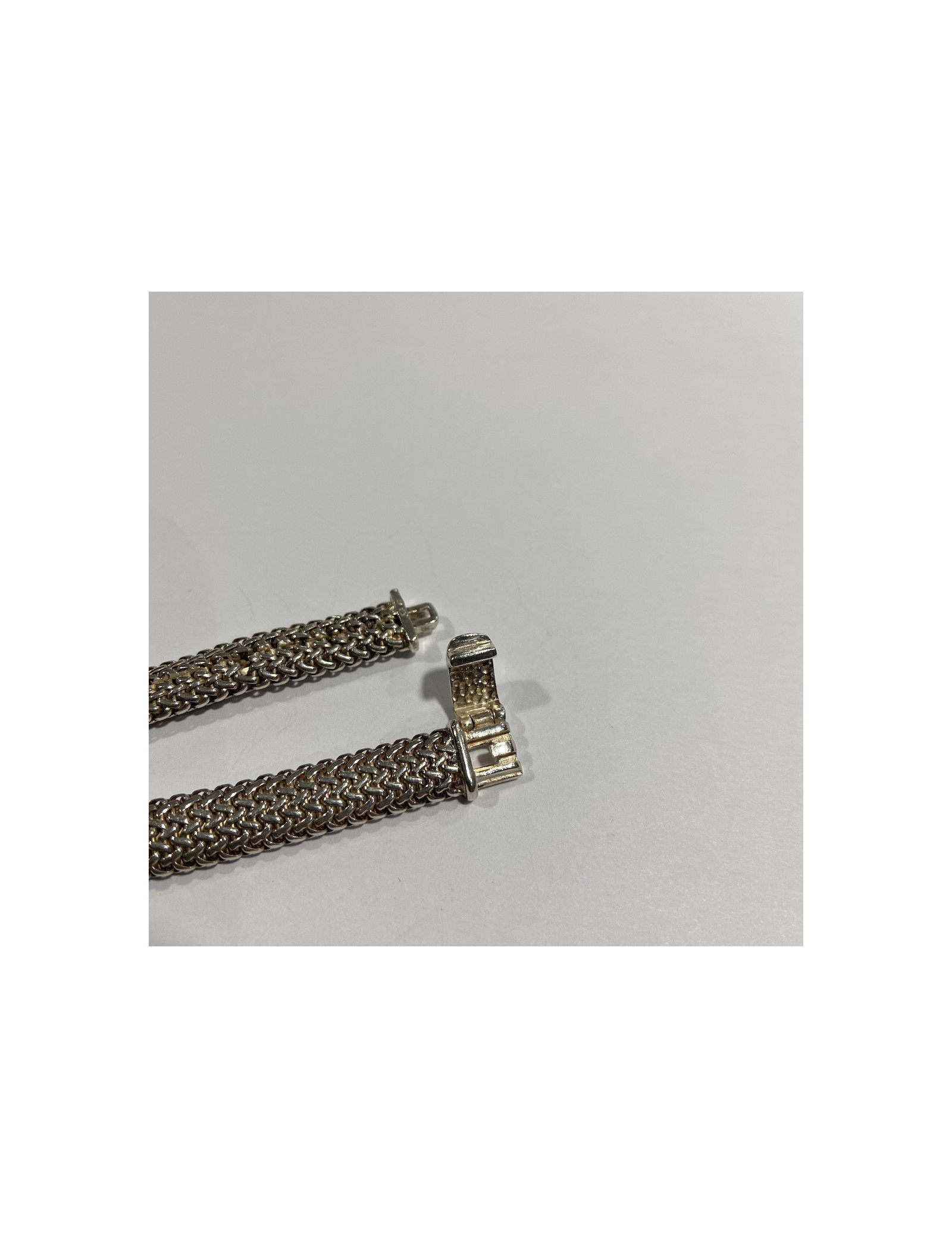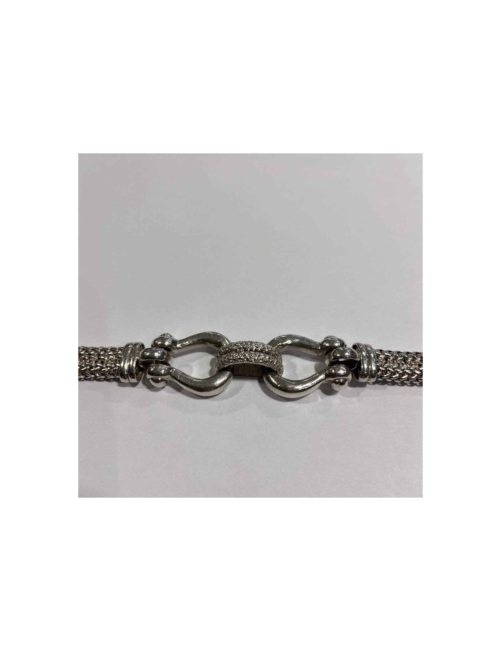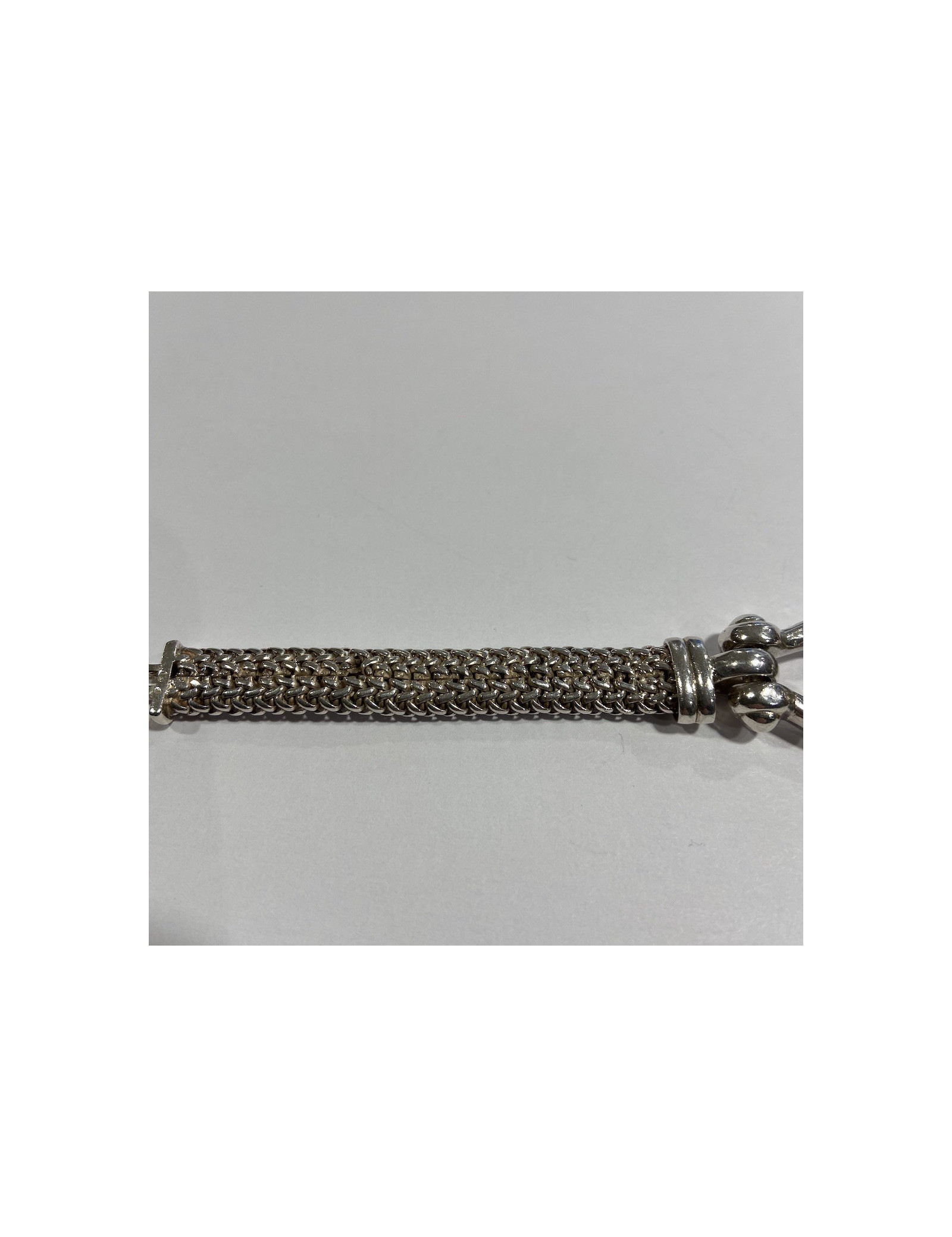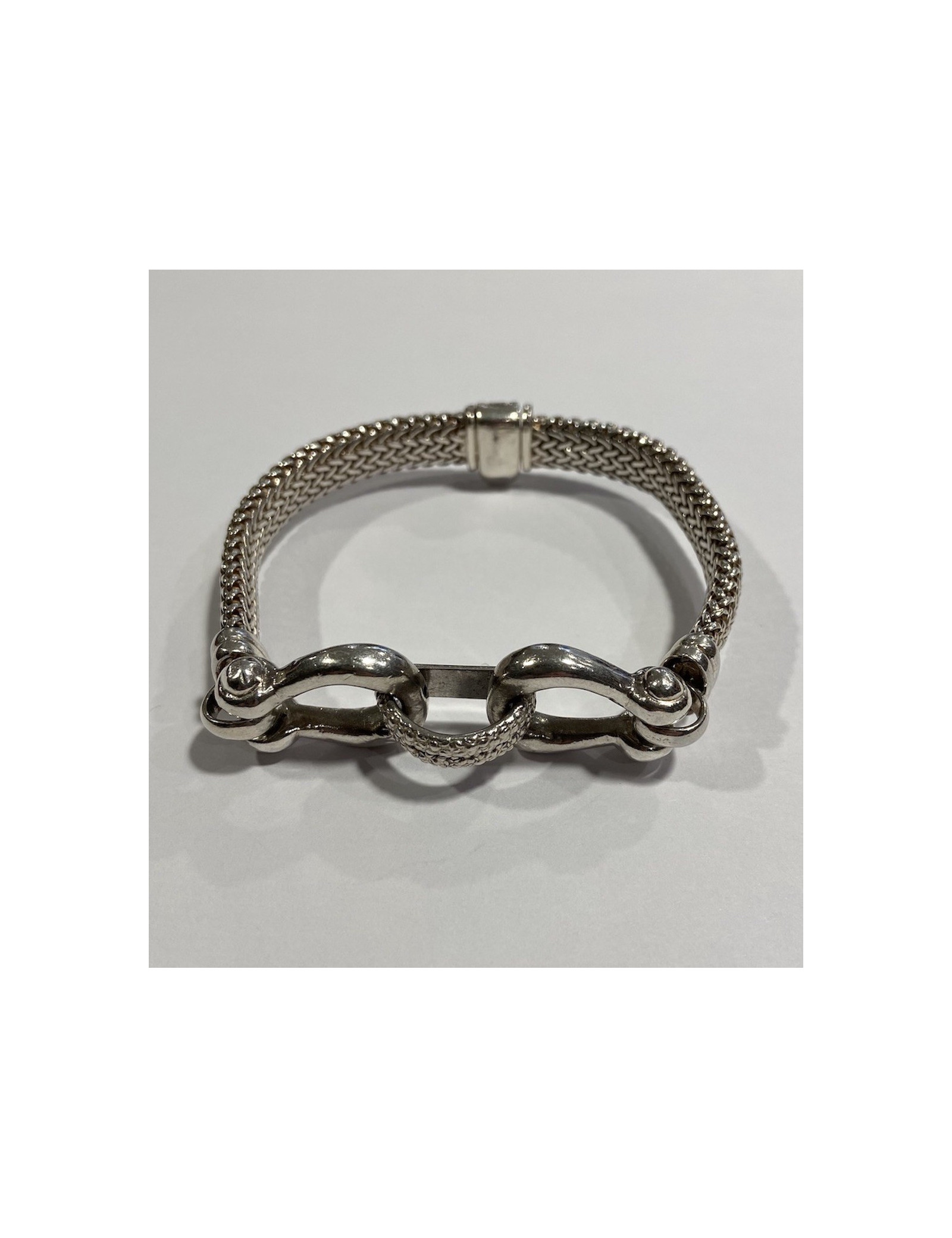 Last items in stock BRACELETS HERMÈS Game Long Anchor silver bracelet HERMES 36508 2,100.00 € HERMÈS Game Long Anchor silver bracelet Condition: very goodMade in FranceMaterial : sterling silver 925/1000Color : silverMeasurements : wrist circumference 15 cm, width: 0.3 cm, diameter: 4 cmStamp : yesHardware : sterling silver (micro-scratches)Weight: 25 gramsDetails : Hermès Paris” signature inside. Bracelet in silver with large links. Advantage... Add to cart