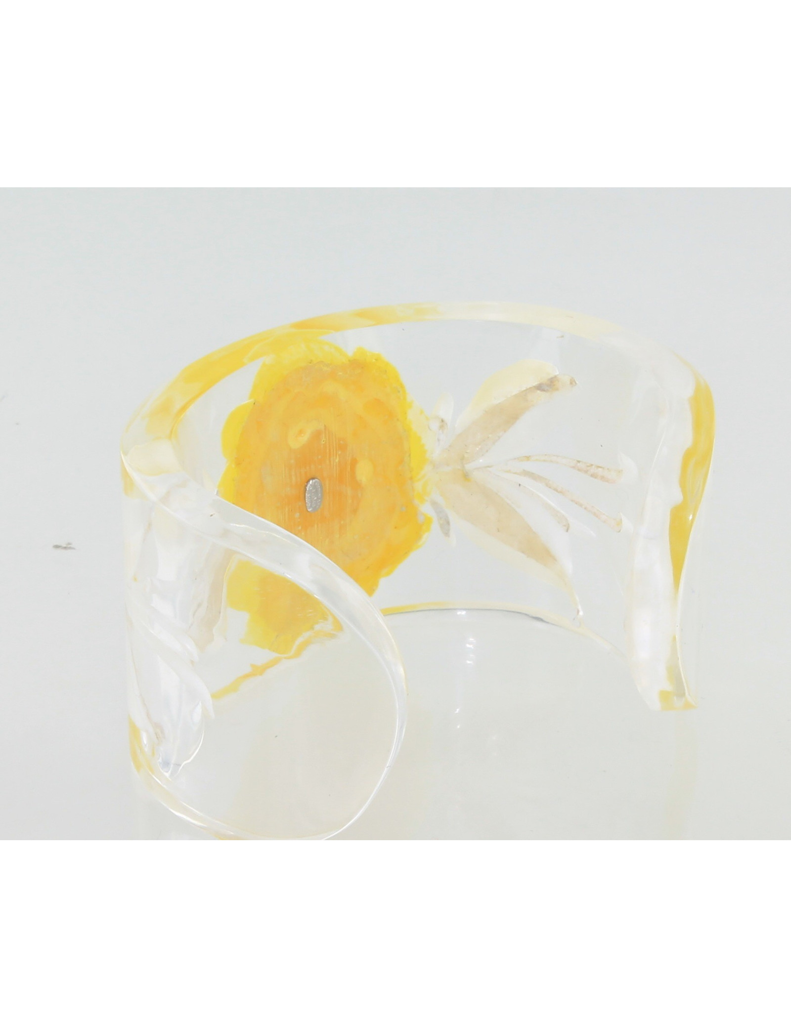Last items in stock BRACELETS MARGUERITE DE VALOIS molten glass bracelet MARGUERITE DE VALOIS 26686 276.00 € MARGUERITE DE VALOIS yellow molten glass bracelet Condition: never wornMaterials: metal, molten glassColors: gold, yellow, beige Measurements: 22 cm (wrist circumference) adjustableMade in France Advantage Valois Vintage Paris: comes in its MARGUERITE DE VALOIS box. Add to cart