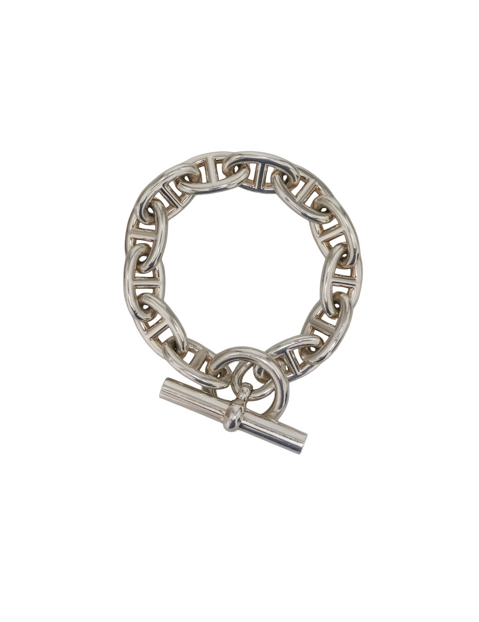 Last items in stock BRACELETS HERMES Eclipse sterling silver 925/1000 bracelet HERMES 35097 1,900.00 € HERMES Eclipse sterling silver 925/1000 bracelet Condition : very goodMade in France Collection : EclipseMaterial: sterling silver 925/1000Color: silverSize : S/MMeasurements: height 4 cm, maximum wrist circumference 17 cmHardware : silver (micro-scratches)Stamp : yesDetails : silver flat band bracelet with “H” and two perforated anchor chain links Add to cart