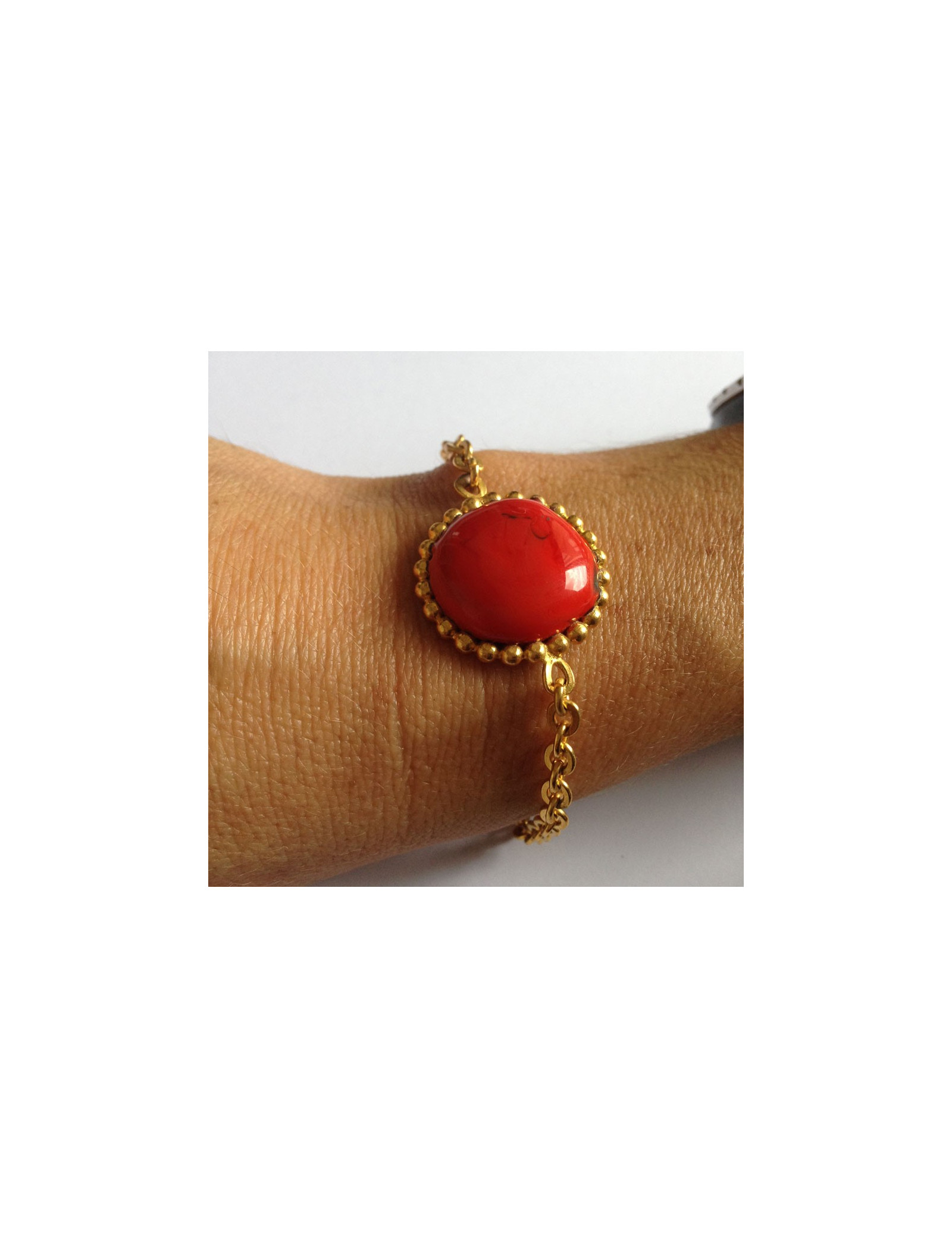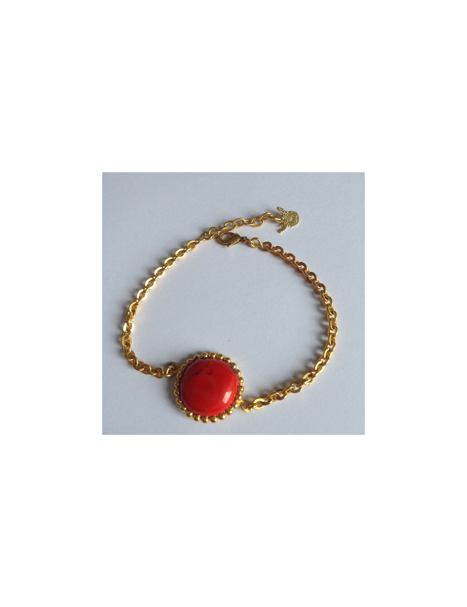 Opaque Marguerite de Valois red round cabochon bracelet and gold fine gold metal.
