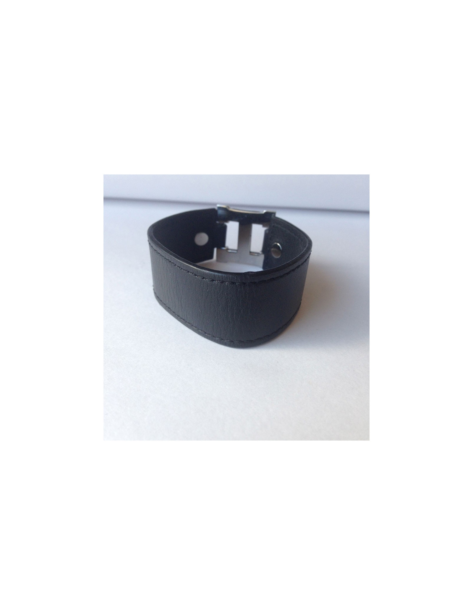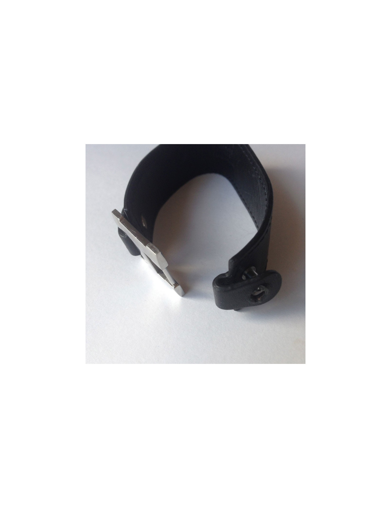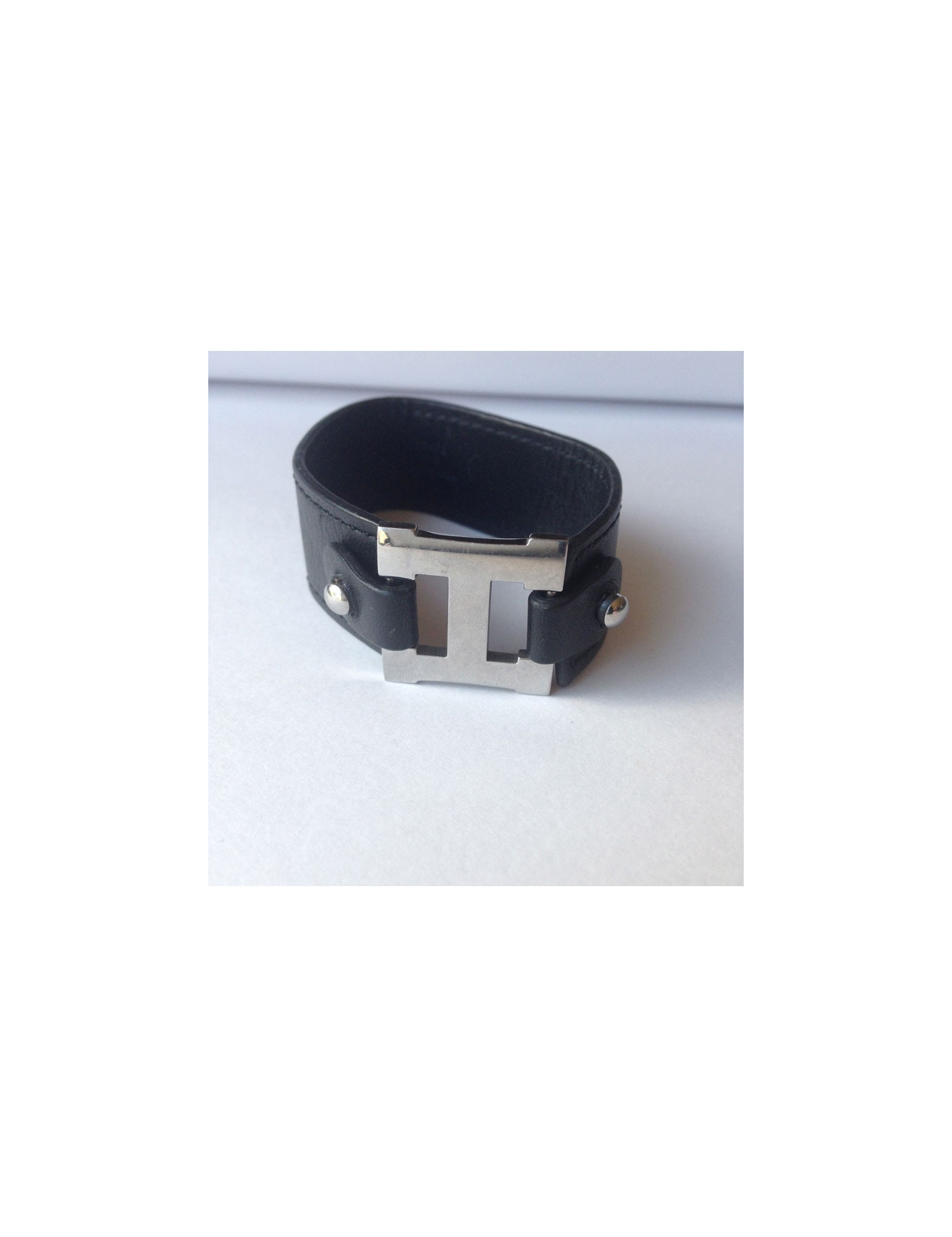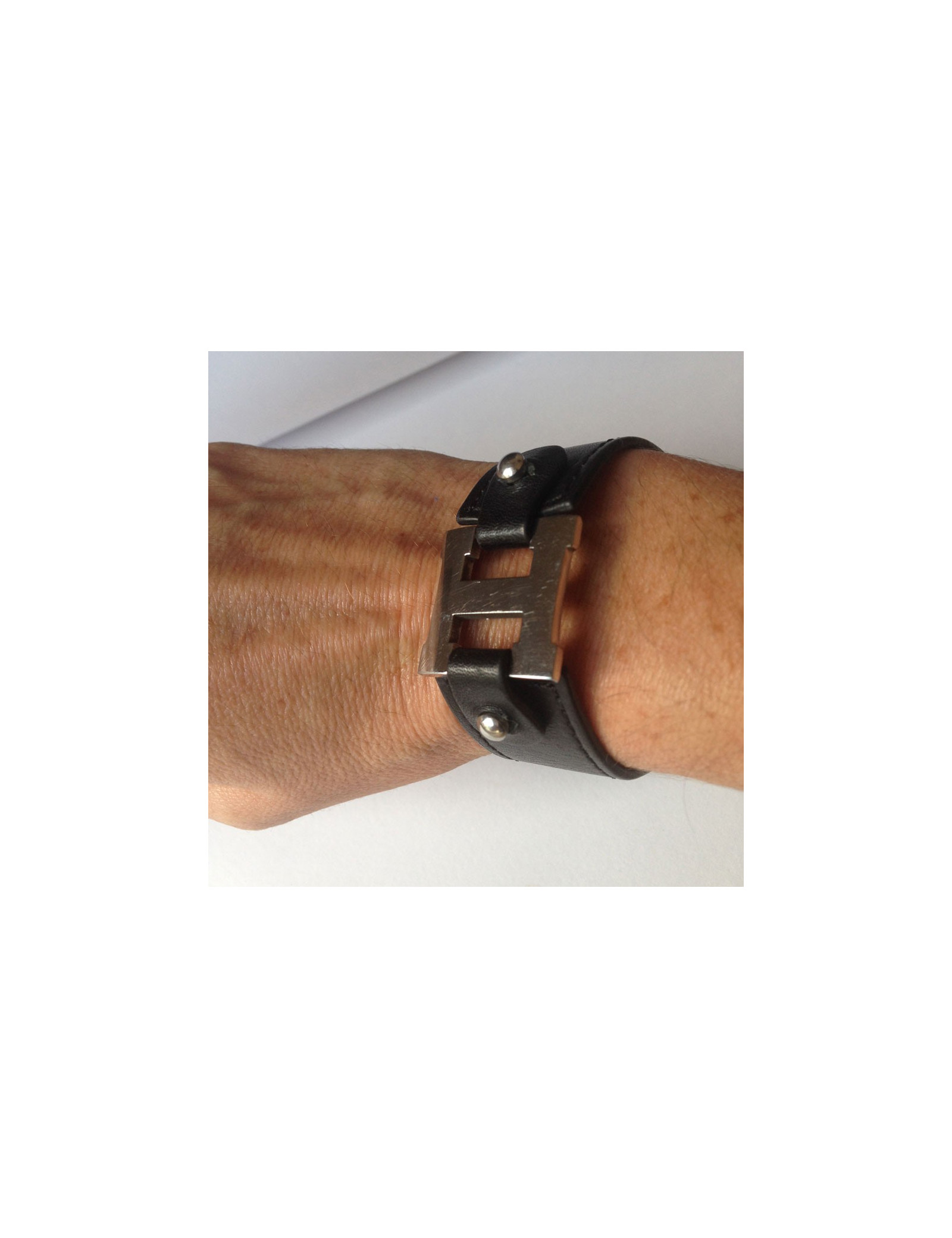 HERMES black leather and "H" Palladium bracelet