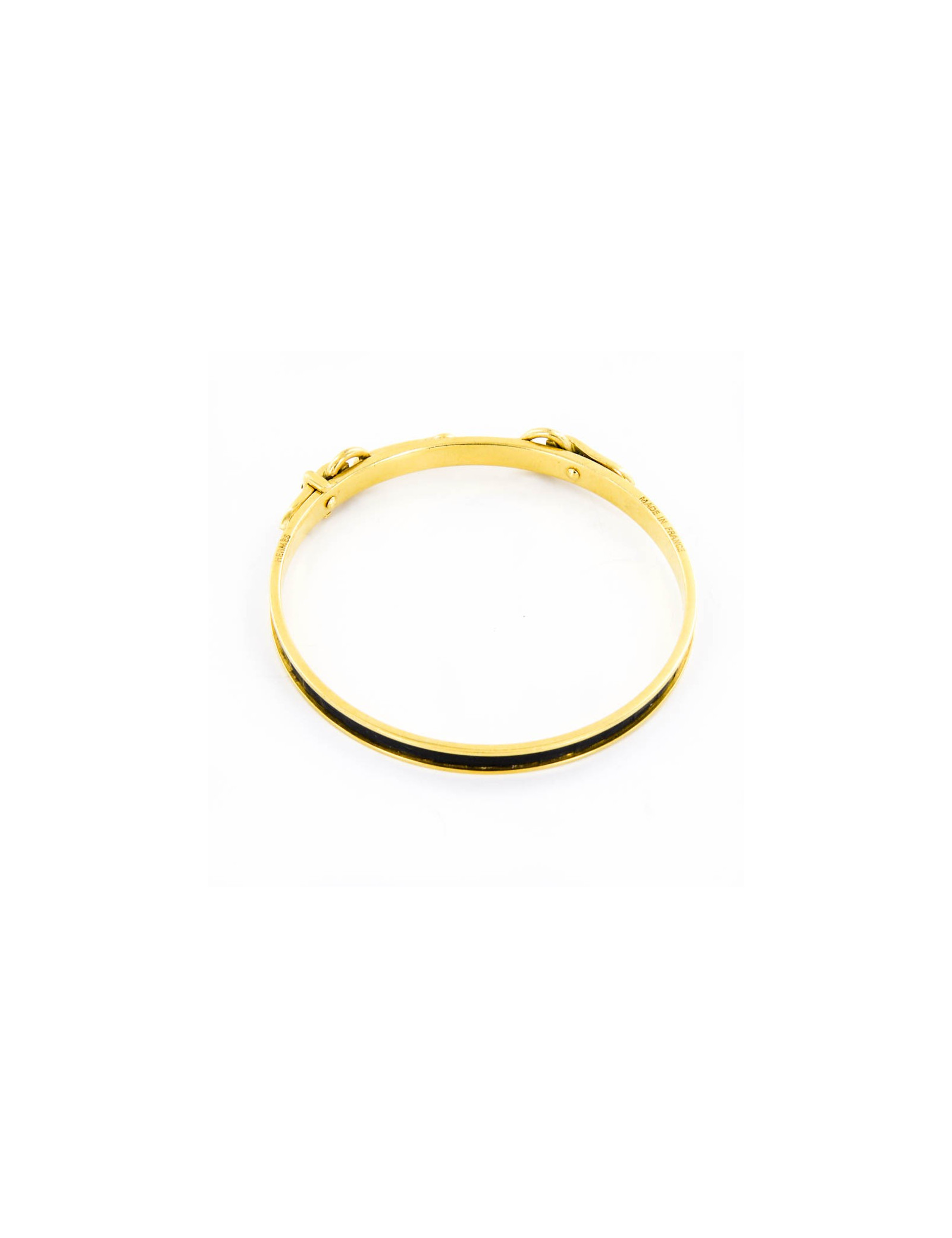 Charming Hermes bracelet, representing 'Jaws' metal gilded end and black lizard.
