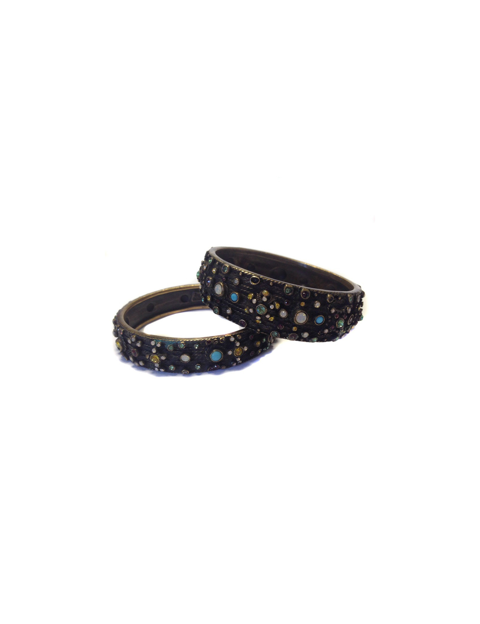Two lovely bracelets Jean Paul Gaultier, color metal copper, set with Rhinestones and pearls of colors. In very good condition.