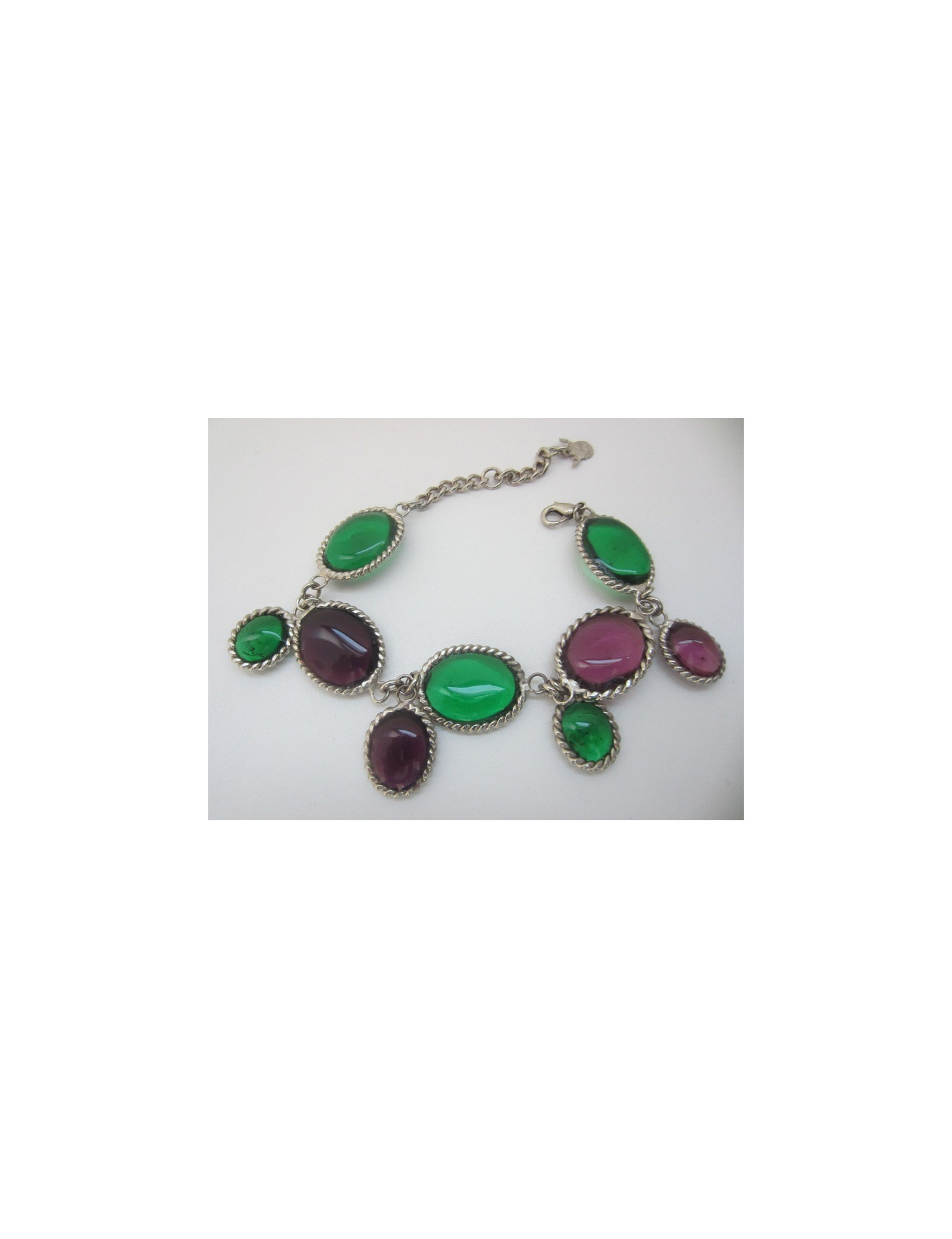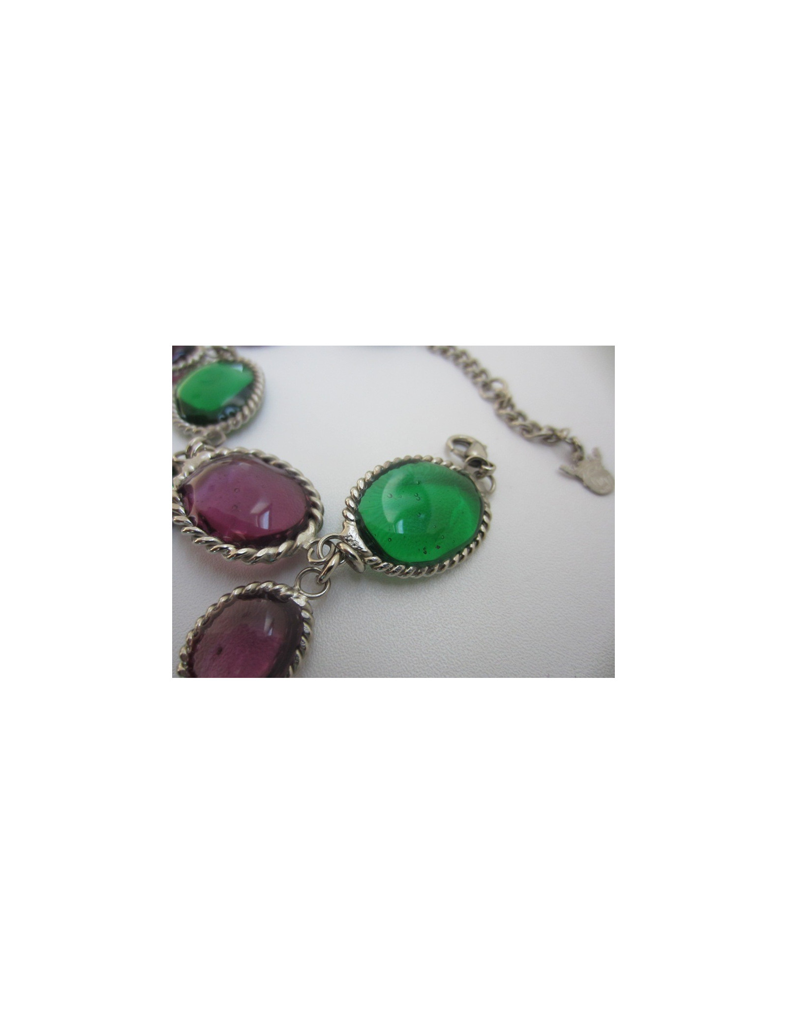 Beautiful bracelet "Drops of water" of the House Marguerite of Valois in silver metal and glass Amethyst & bottle green.