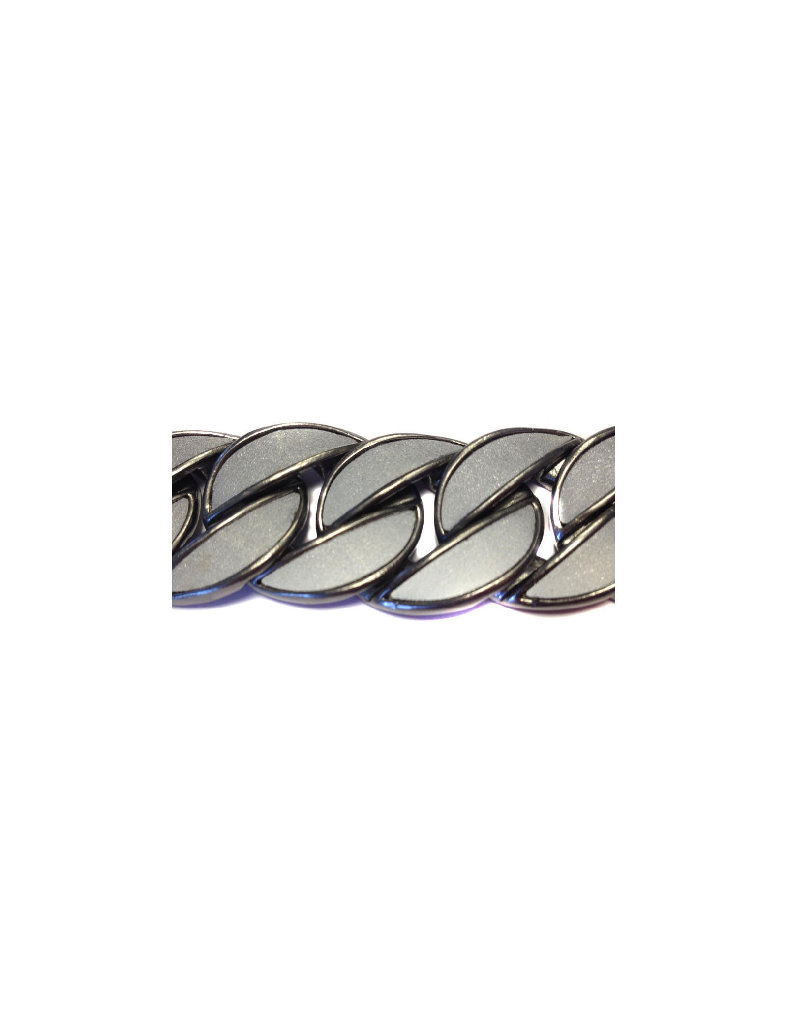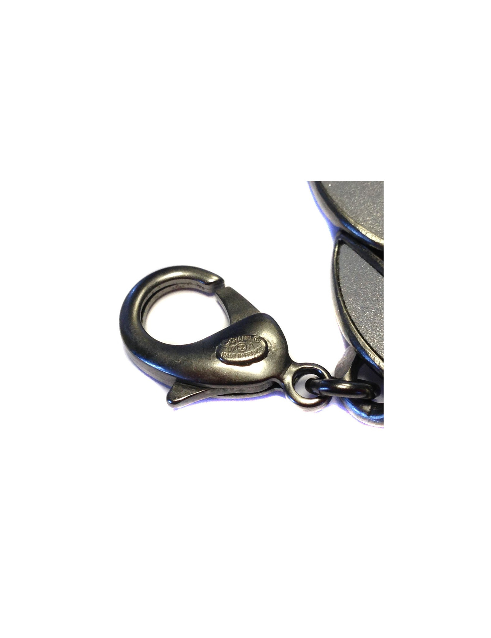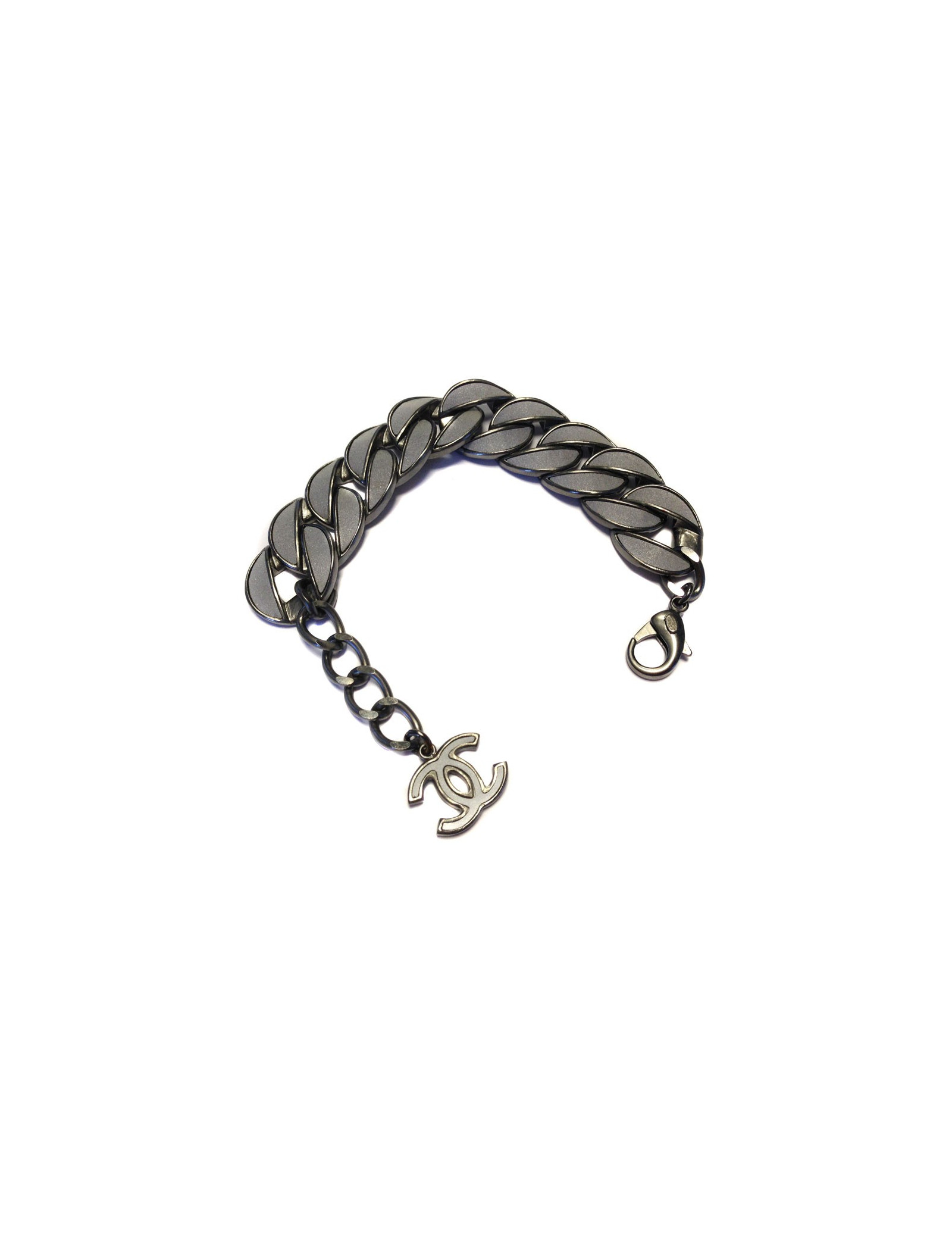 Very beautiful CHANEL bracelet, string to big silver mesh (curb). The mesh is colored in gray Pearl on top. CC at the end of the clasp. In very good condition.