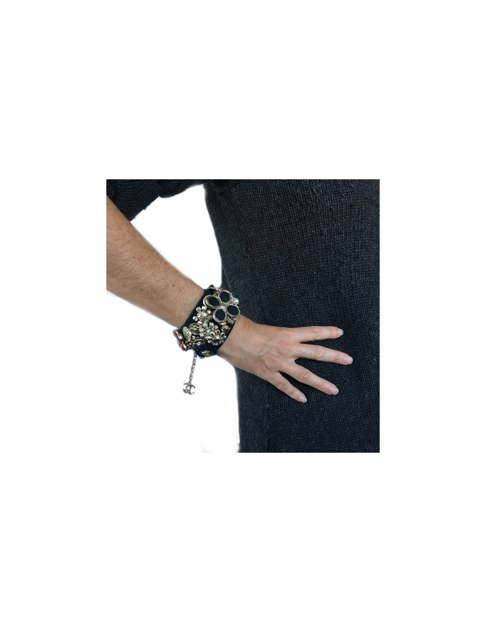 CHANEL cuff "Paris-Edinburgh" in leather and failure of blue velvet Navy