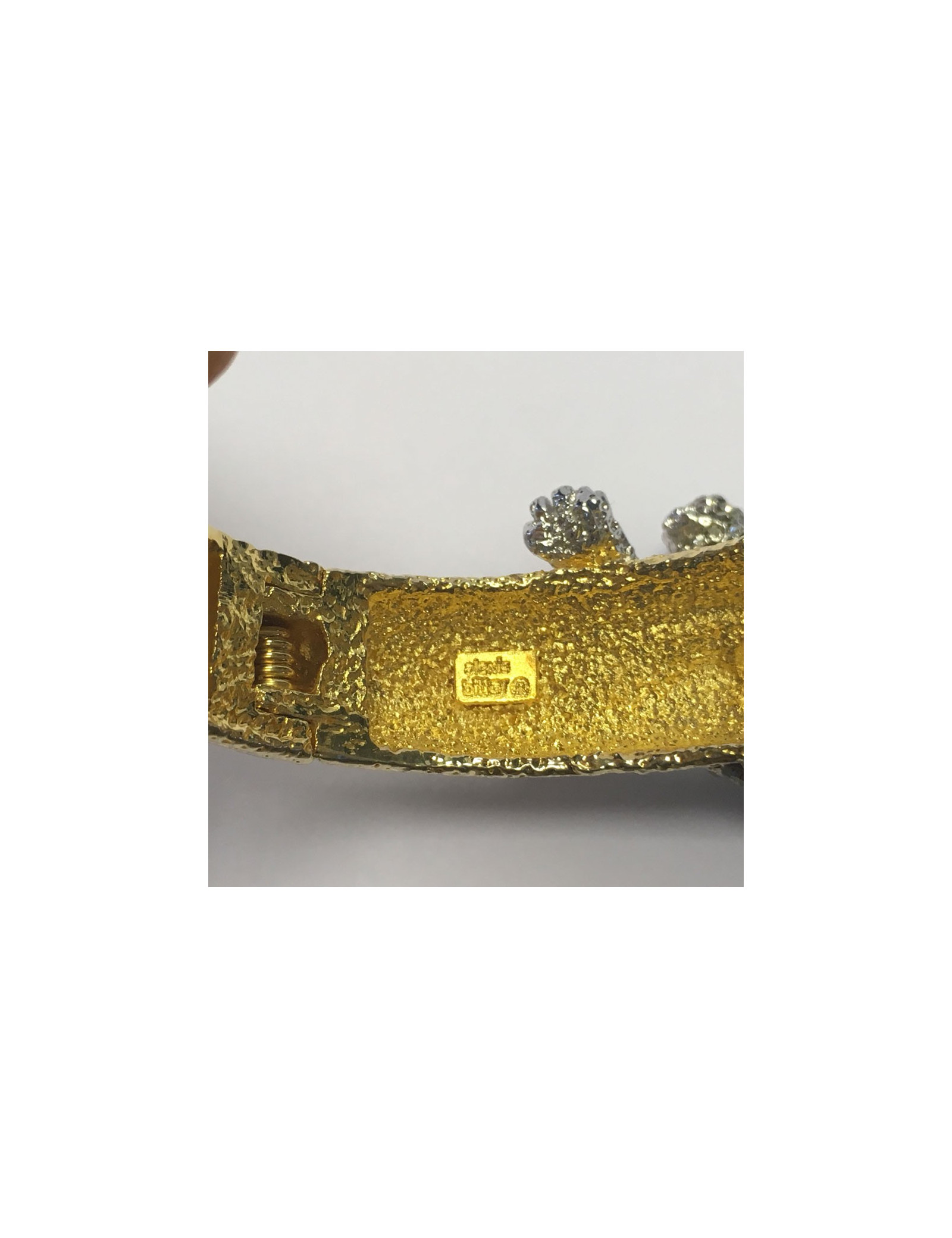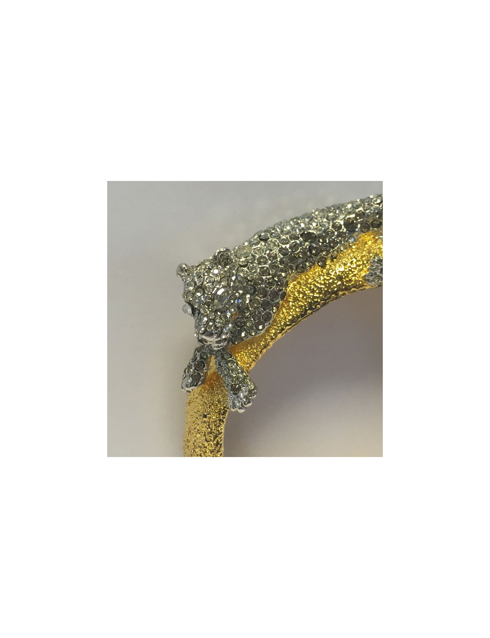 Star bracelet! This famous American designer Alexis Bittar bracelet is a jewel inspired by fine jewelry. It is worn on many celebrities. Gold metal topped of a Panther entirely set with Rhinestones. Loving clasp. The mark inside lozenge.
