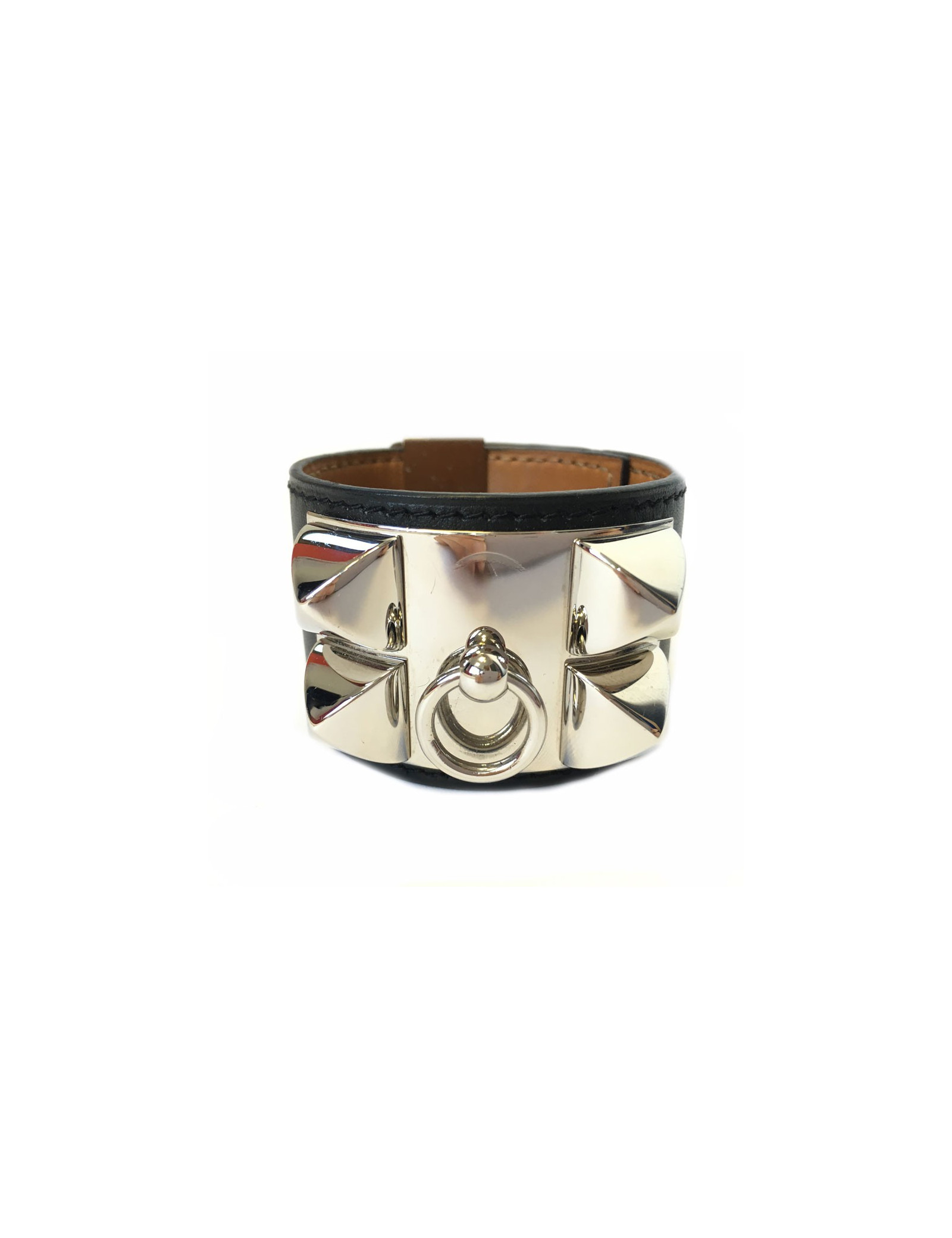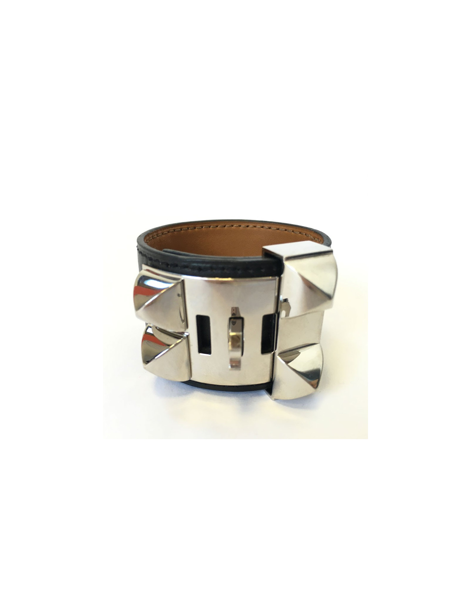 HERMES "Fido" cuff size S black box leather