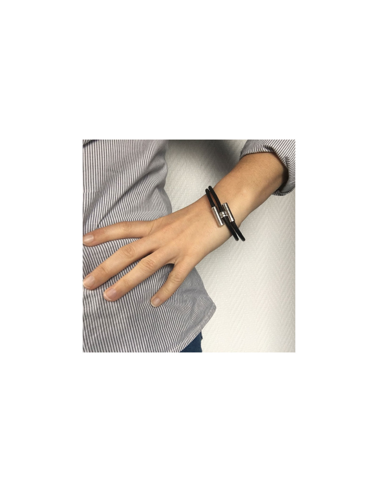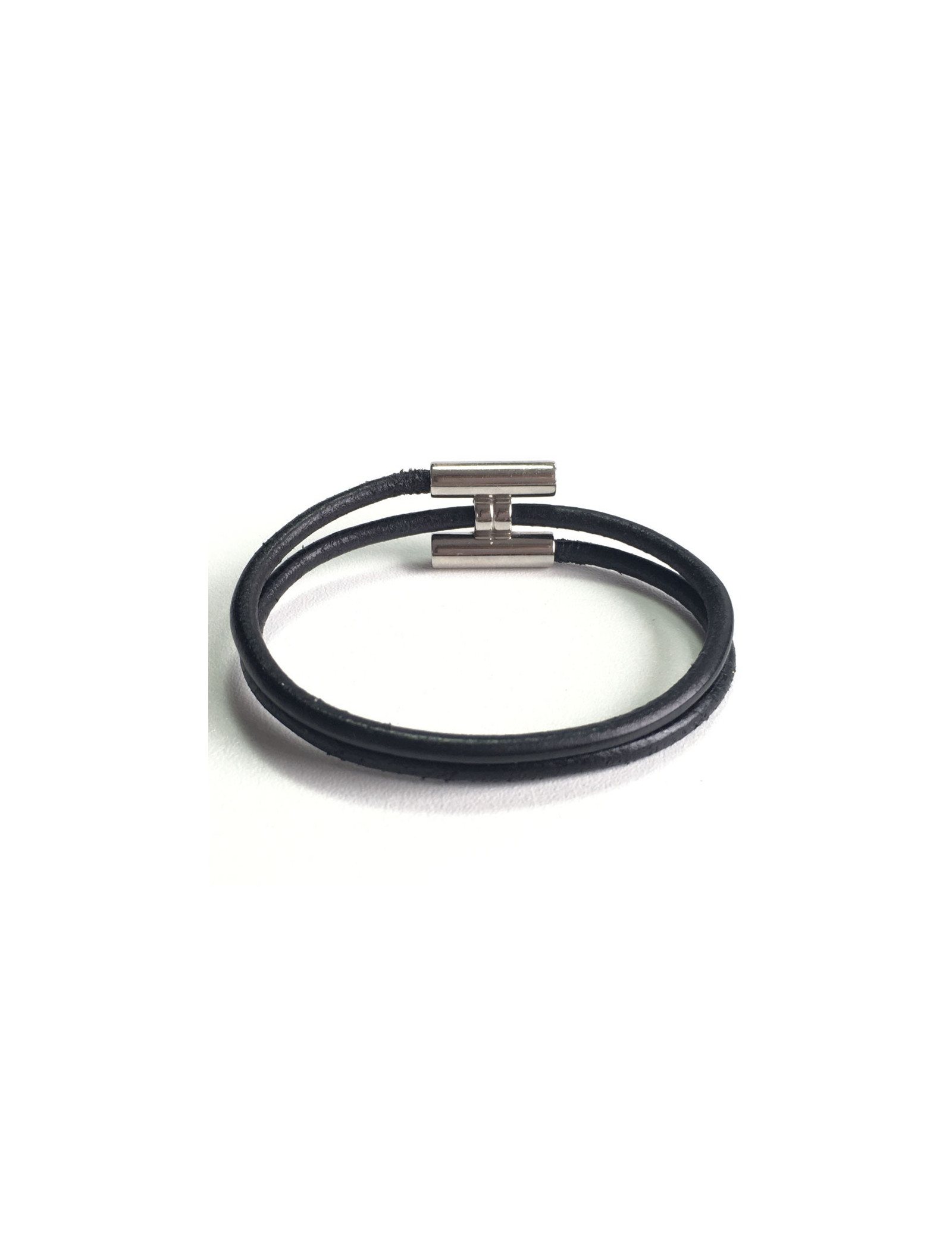 Dizzy HERMES leather black and silver ring link bracelet