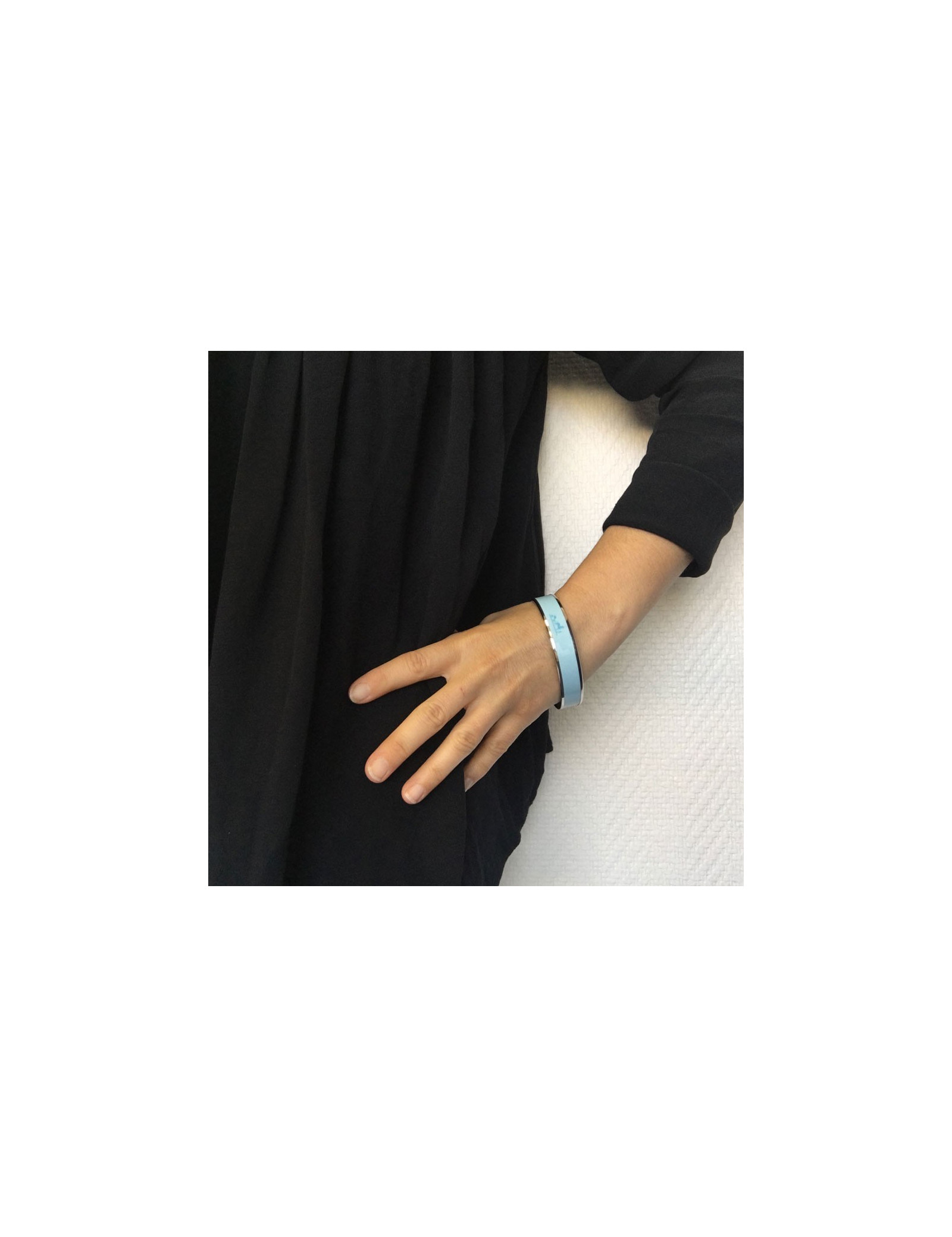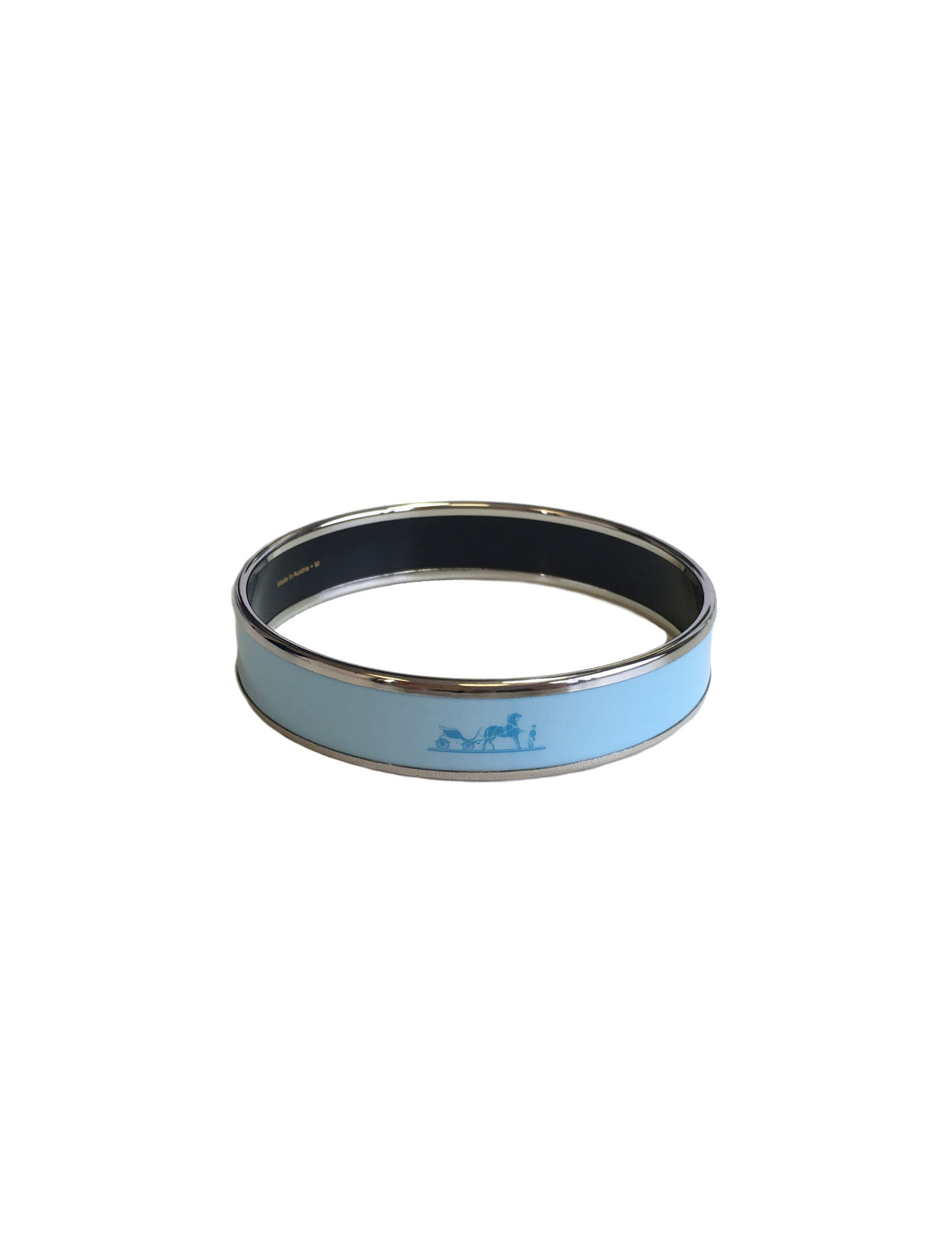 HERMES enamel aquamarine and metal ring medium bracelet. Reason: horse-drawn carriages.