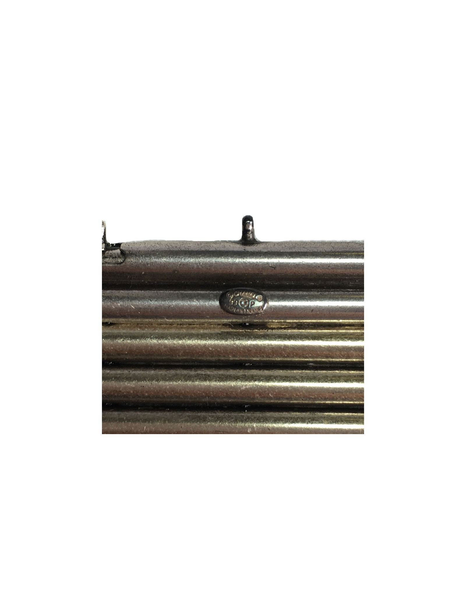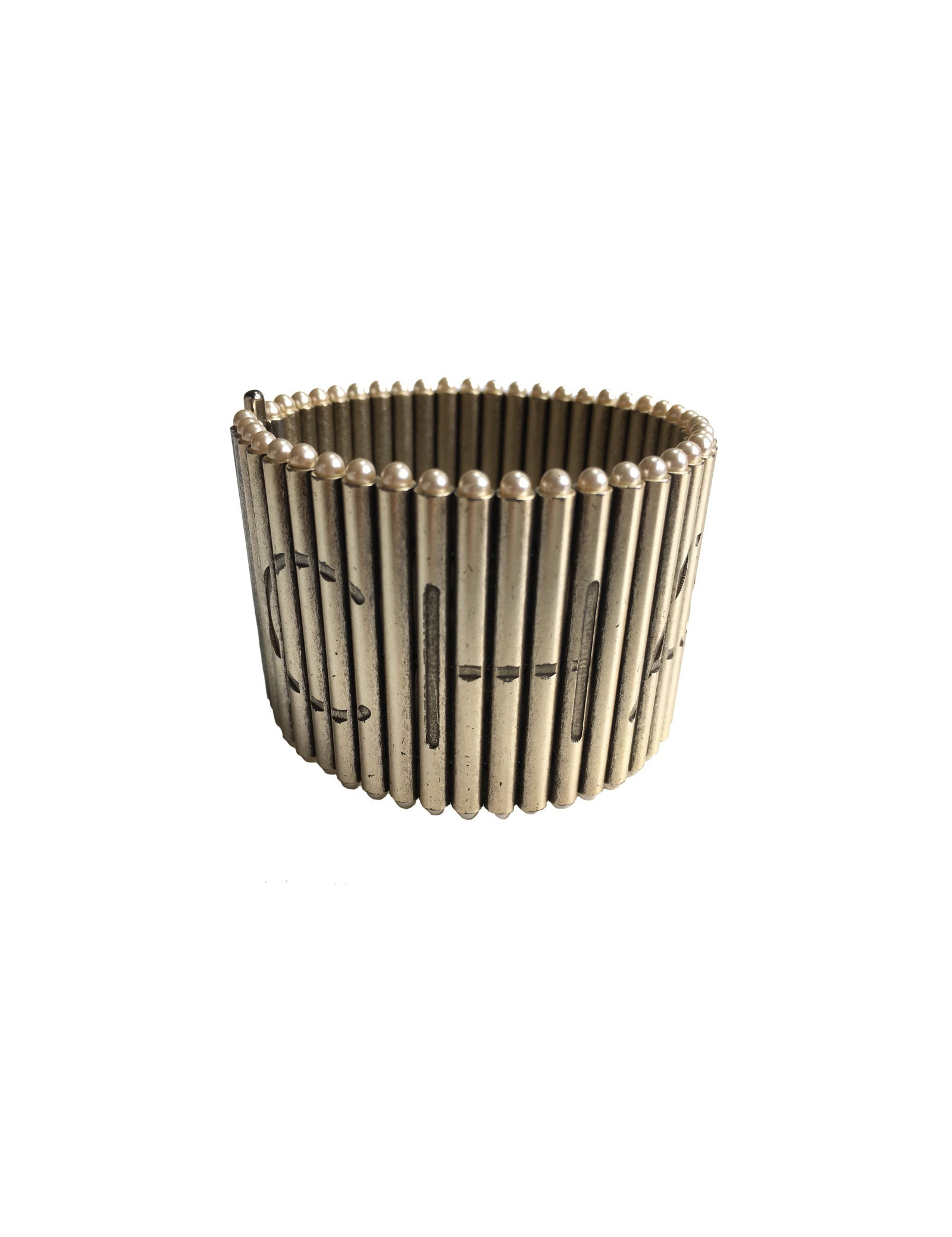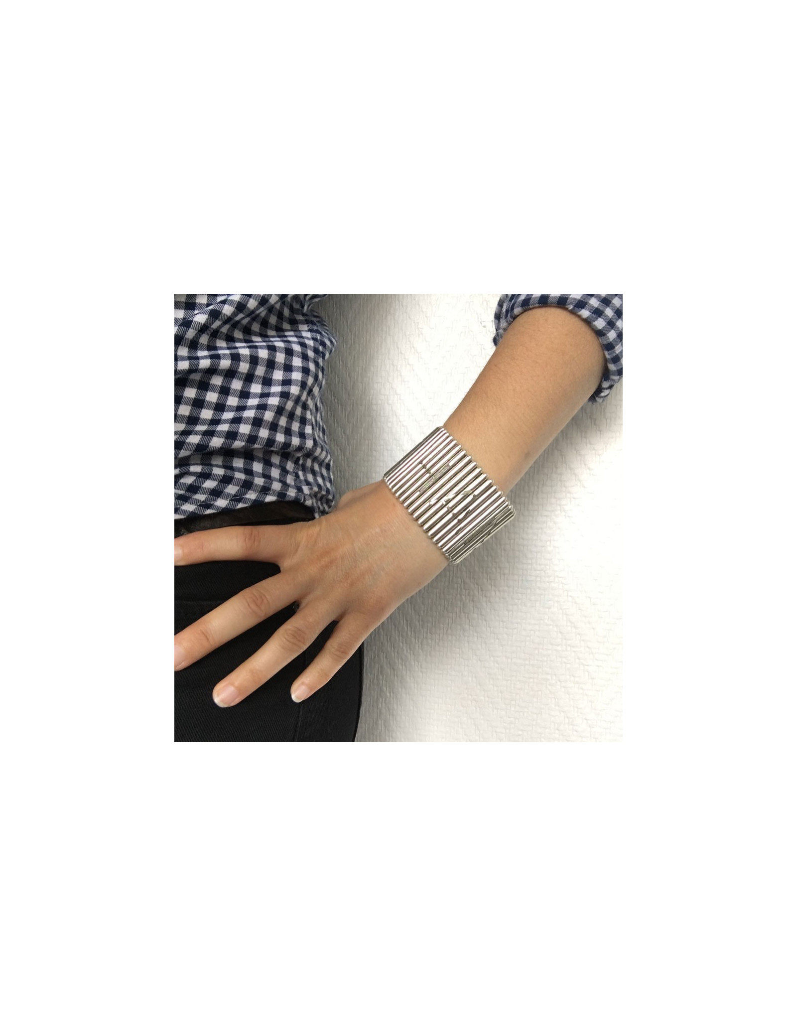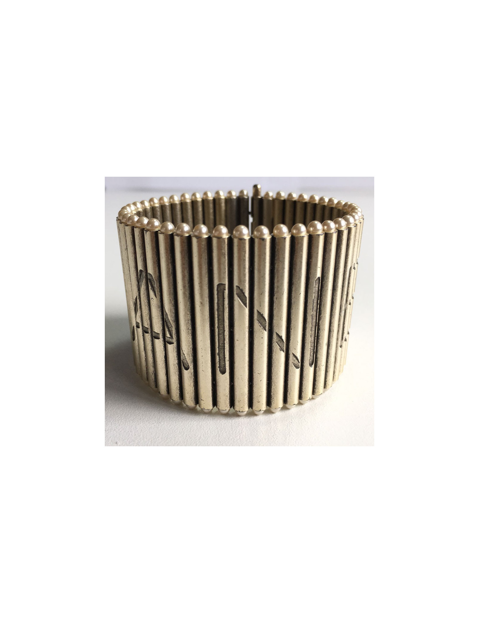 Beautiful CHANEL cuff articulated silver metal and Pearly beads. Serious CHANEL on the bracelet. By hook clasp. Lozenge of the brand presents.