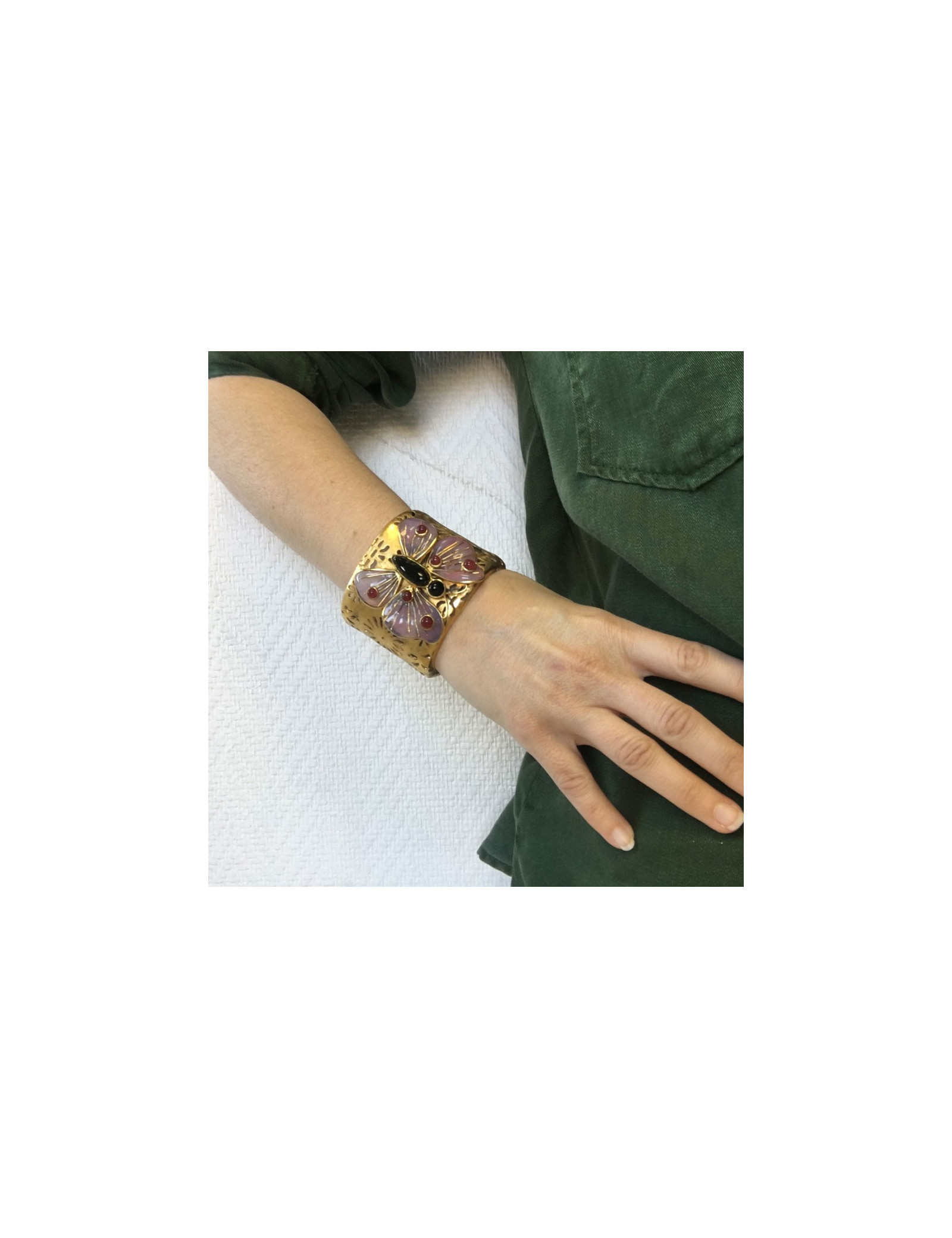 BRACELETS GOOSSENS amethyst rock crystal bracelet GOOSSENS 31027 550.00 € GOOSSENS tinted rock crystal bracelet Condition : very goodMade in FranceMaterials : Metal, rock crystalColor : amethystHardware : gold finish metalBrand : Goossens ParisMeasurements: Wrist circumference 18 cm x 3 cm Advantage Valois Vintage Paris : comes in its GOOSSENS dustbag Add to cart