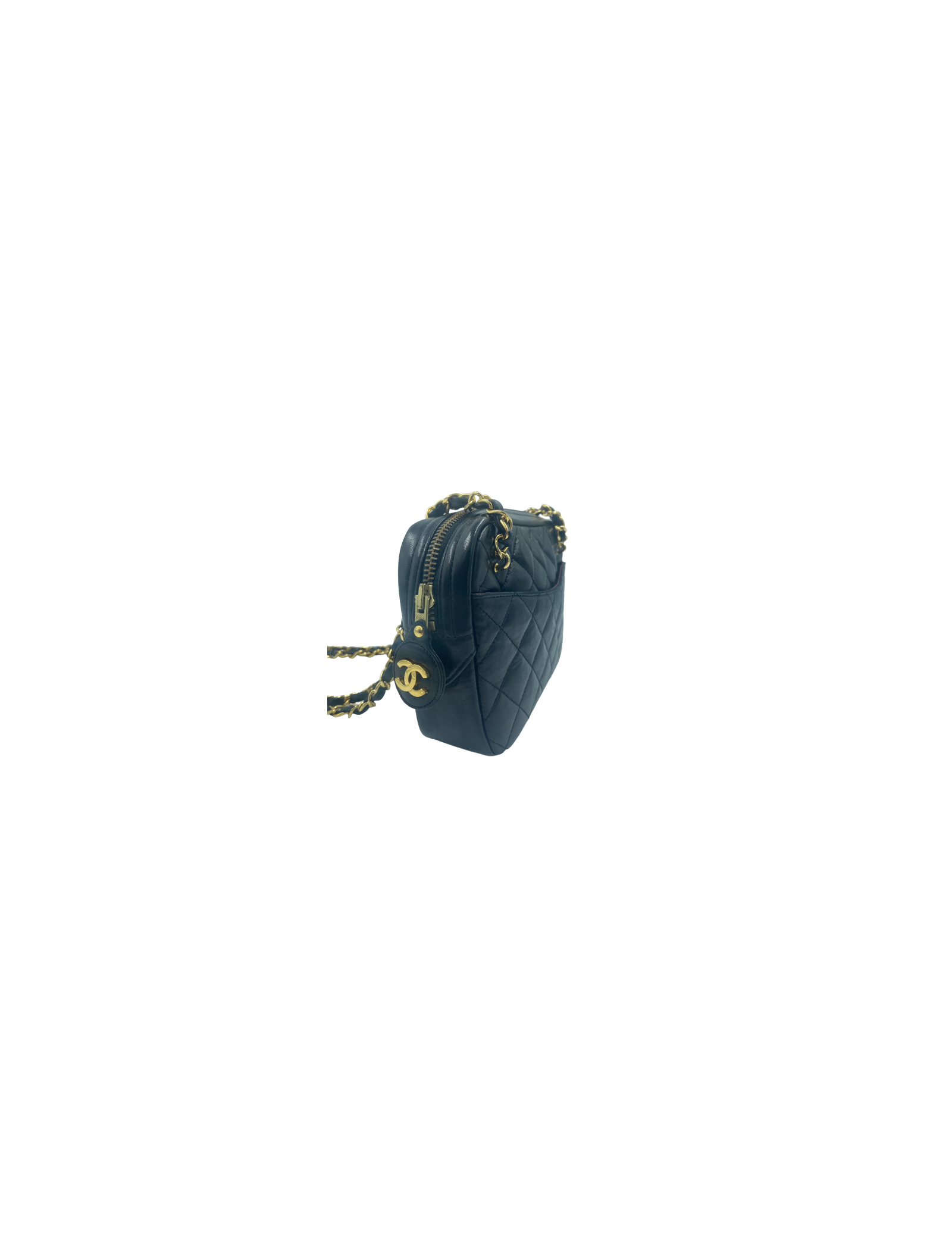 Last items in stock CAMERA CHANEL CHANEL vintage black camera bag CHANEL 34544 4,700.00 € CHANEL vintage black Camera bag ('90s) Condition : very goodMade in FranceGender : womanCollection : CameraMaterial : lambskin leatherLining : leatherColor : blackMeasurements:Bag: 21 x 13.5 x 6.5 cmShoulder strap : 60 cmHologram : yesAuthenticity card : noYear: 1994-1996Hardware : 24K gold plated metalDetails : Vintage, it is worn on the shoulder. Zipper... Add to cart