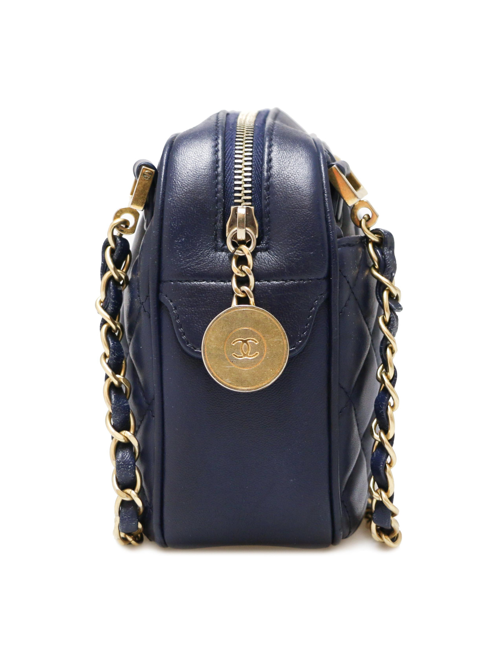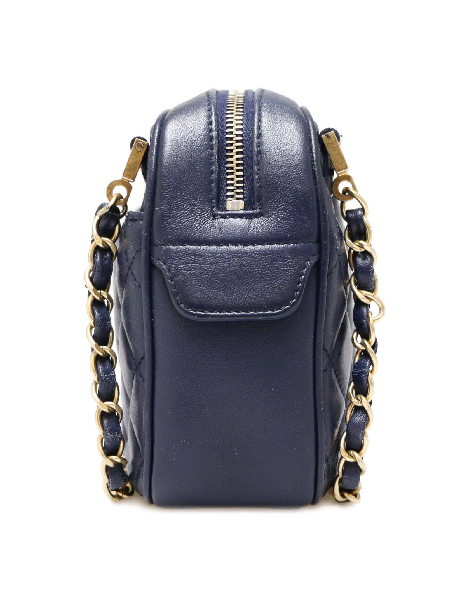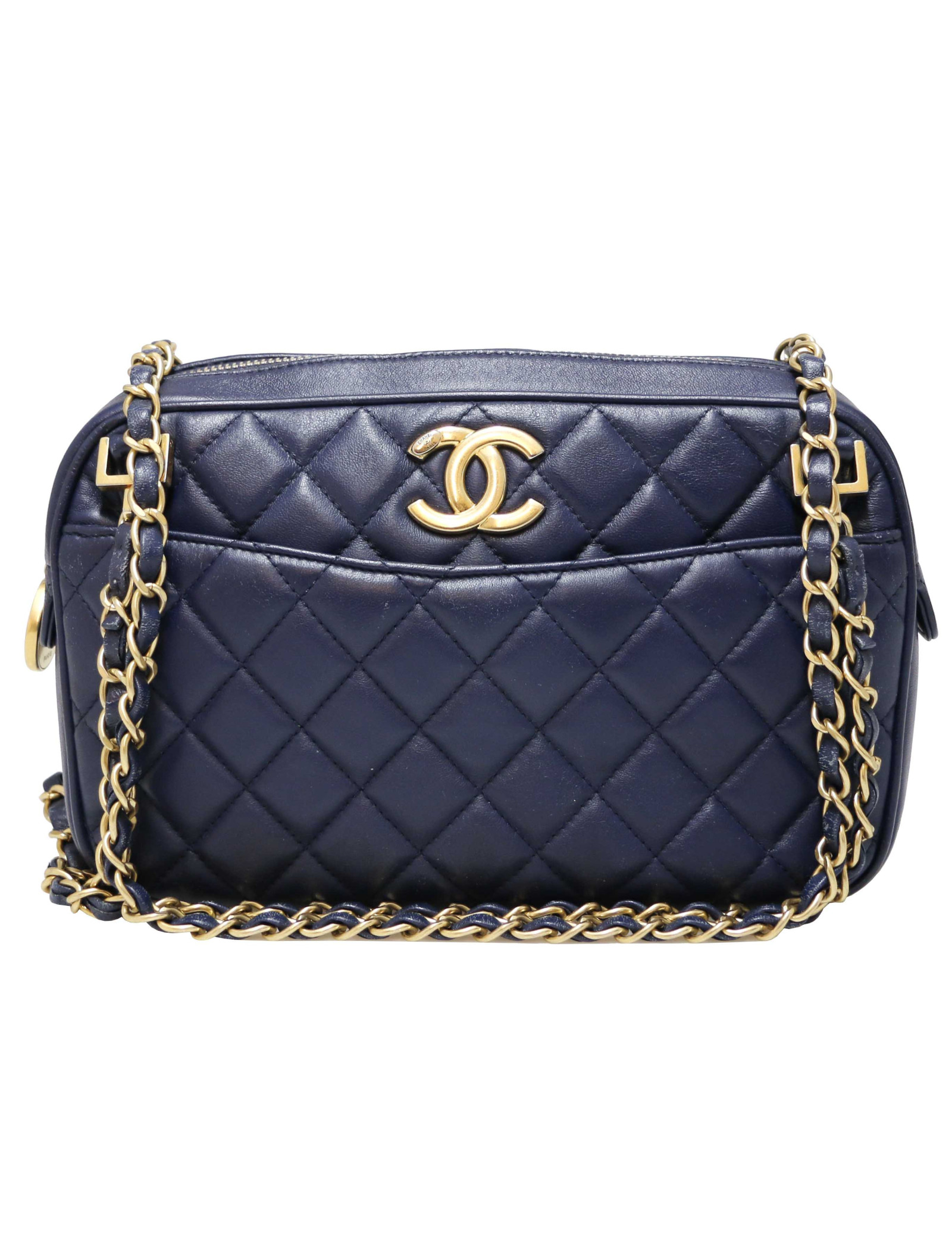 CAMERA CHANEL CHANEL camera bag in mat light gold quilted crimpled leather CHANEL 30596 2,200.00 € CHANEL camera bag in mat light gold quilted crimpled leather Condition : very goodMade in FranceModel : Caméra Material : quilted crimpled leatherColor: mat light goldHardware : aged silver finish metalMeasurements : 30 x 24 9 cmHologram : yesAuthenticity card : noYear : 2011Chain handle length : 61 cm on each side Advantage Valois Vintage Paris : comes... Add to cart