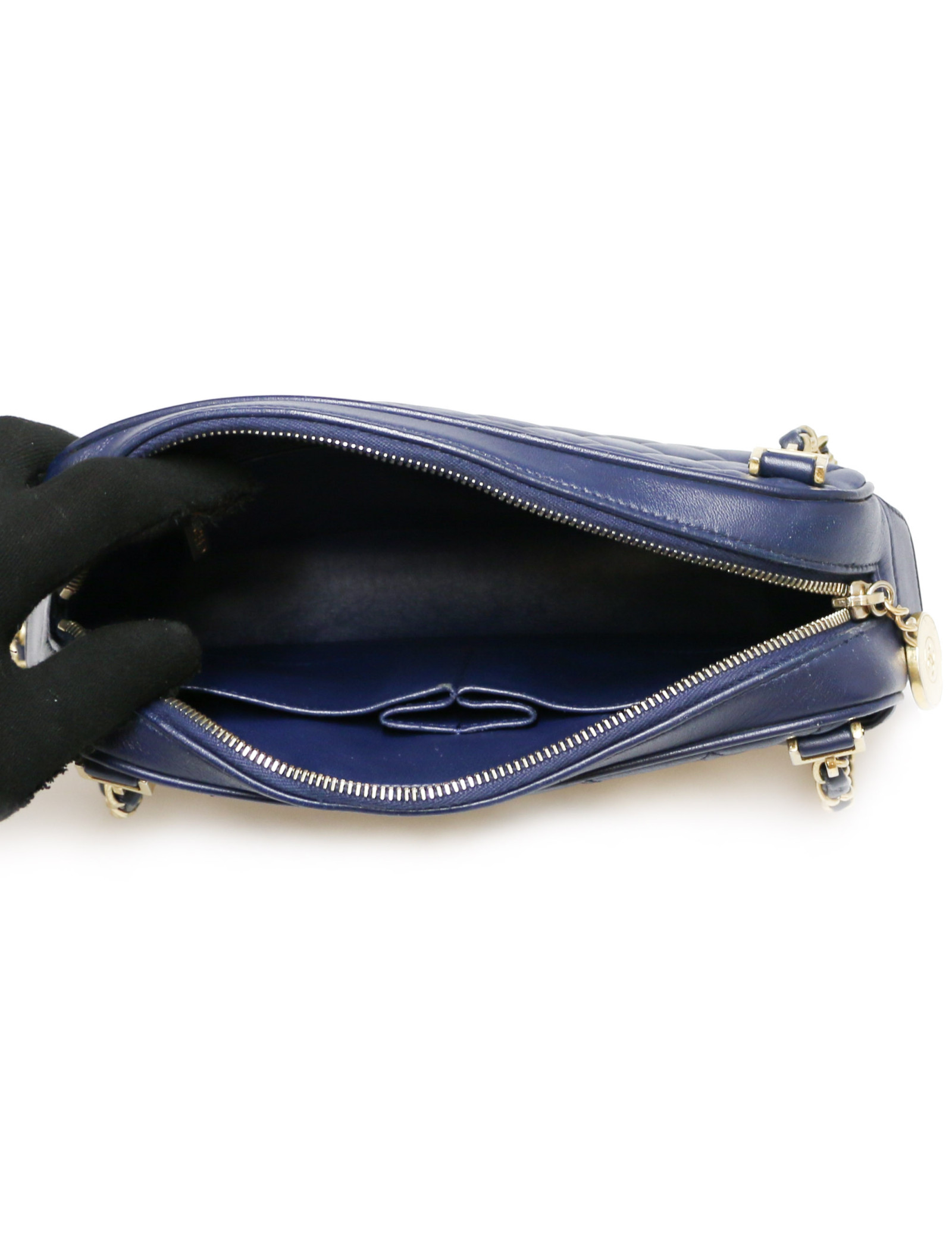 -900.00 € CAMERA CHANEL CHANEL Vintage blue Mini Camera CHANEL 33383 2,900.00 € 3,800.00 € Vintage Chanel Mini Camera Condition: very goodMade in ItalyMaterial : textile, lambskin leatherColor : blue, red, purpleDimensions : 15 x 11 x 7 cmShoulder strap : 109 cmHologram : yesAuthenticity card : yesYear : 1986-1989Hardware : 24K gold-plated metalDetails : the textile part is a design of vintage gripoix jewelry, a symbol of Chanel creations in... Add to cart