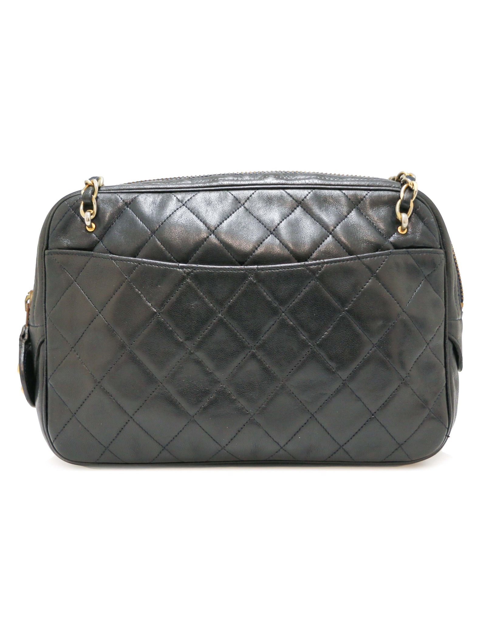 Last items in stock CAMERA CHANEL CHANEL vintage black camera bag CHANEL 34544 4,700.00 € CHANEL vintage black Camera bag ('90s) Condition : very goodMade in FranceGender : womanCollection : CameraMaterial : lambskin leatherLining : leatherColor : blackMeasurements:Bag: 21 x 13.5 x 6.5 cmShoulder strap : 60 cmHologram : yesAuthenticity card : noYear: 1994-1996Hardware : 24K gold plated metalDetails : Vintage, it is worn on the shoulder. Zipper... Add to cart