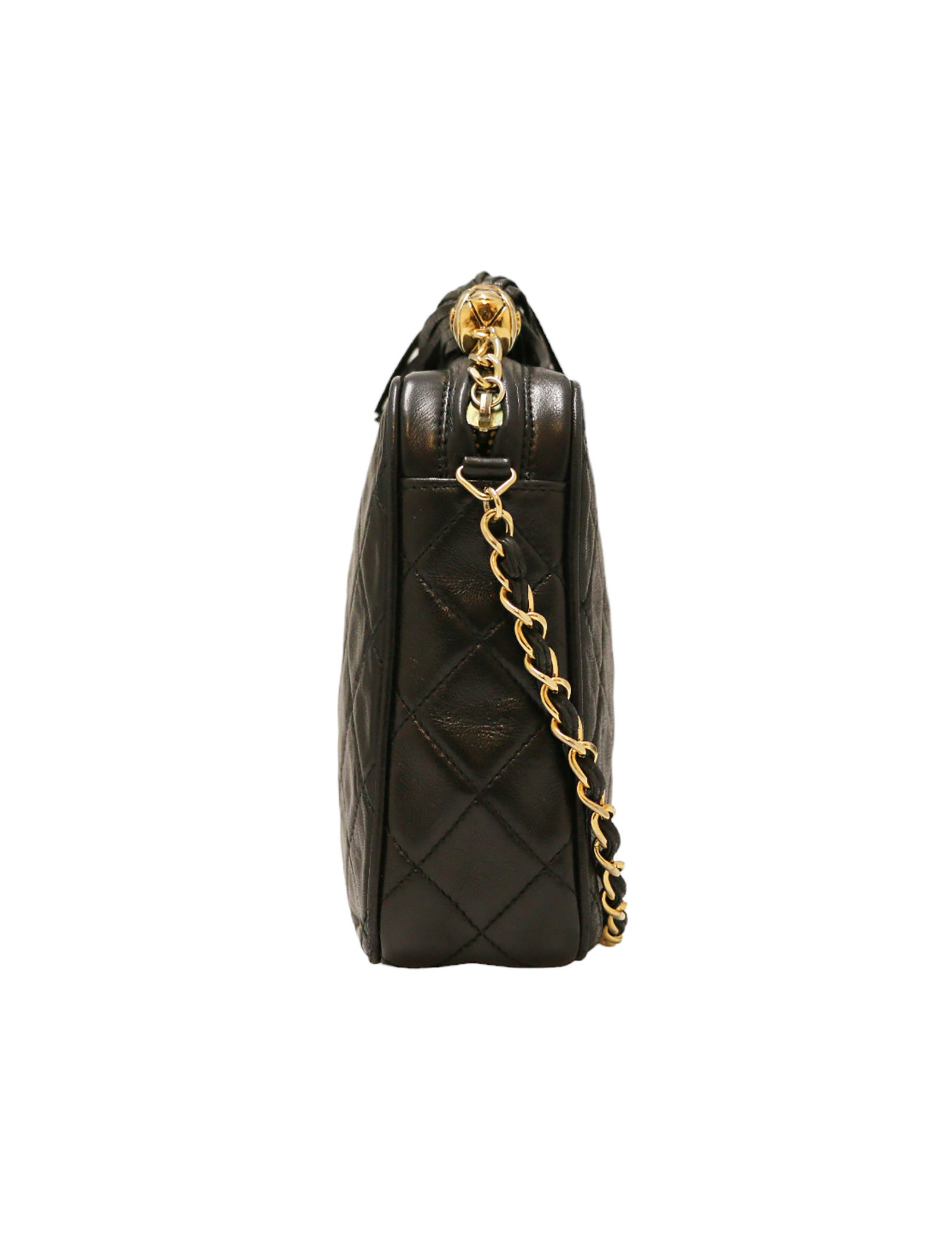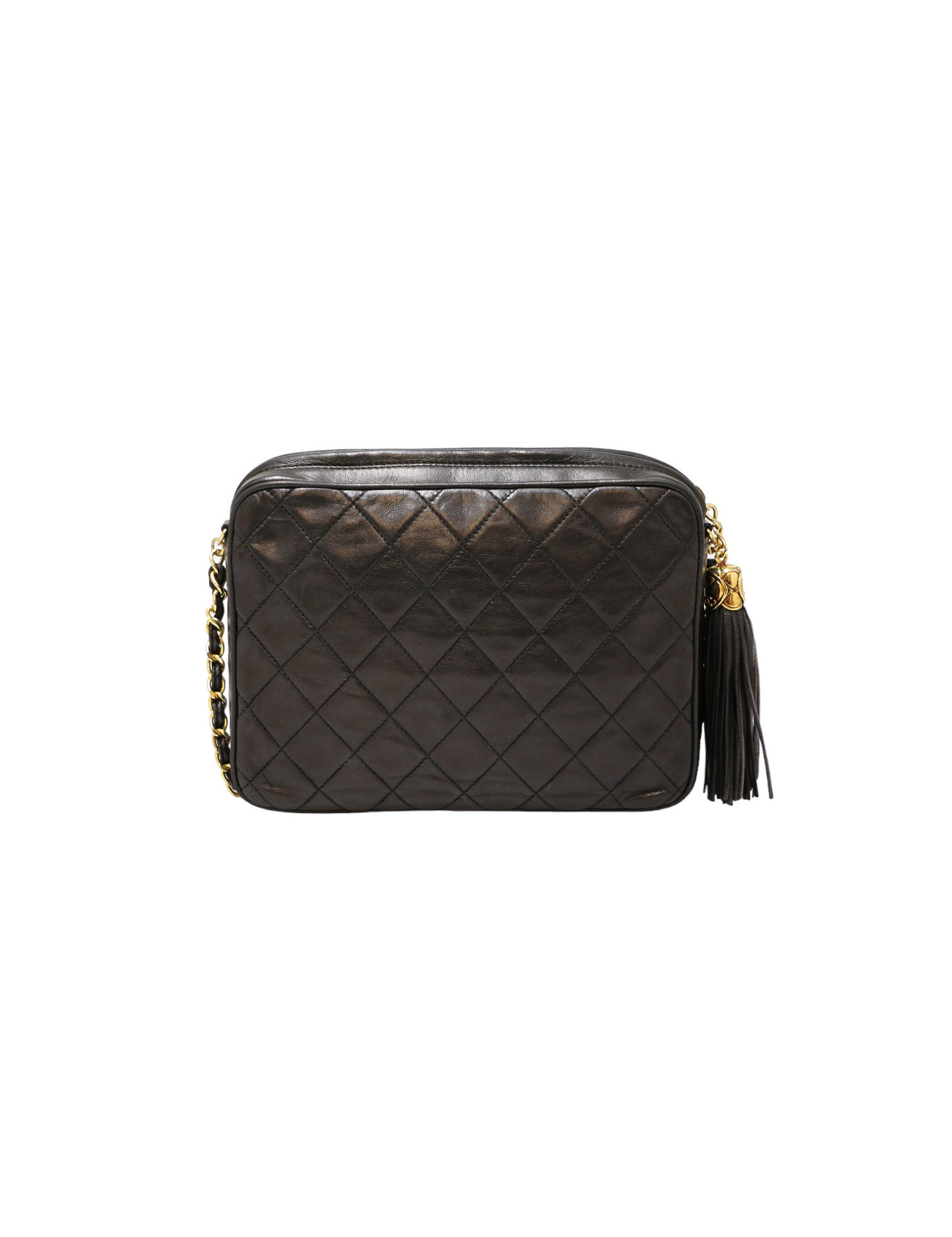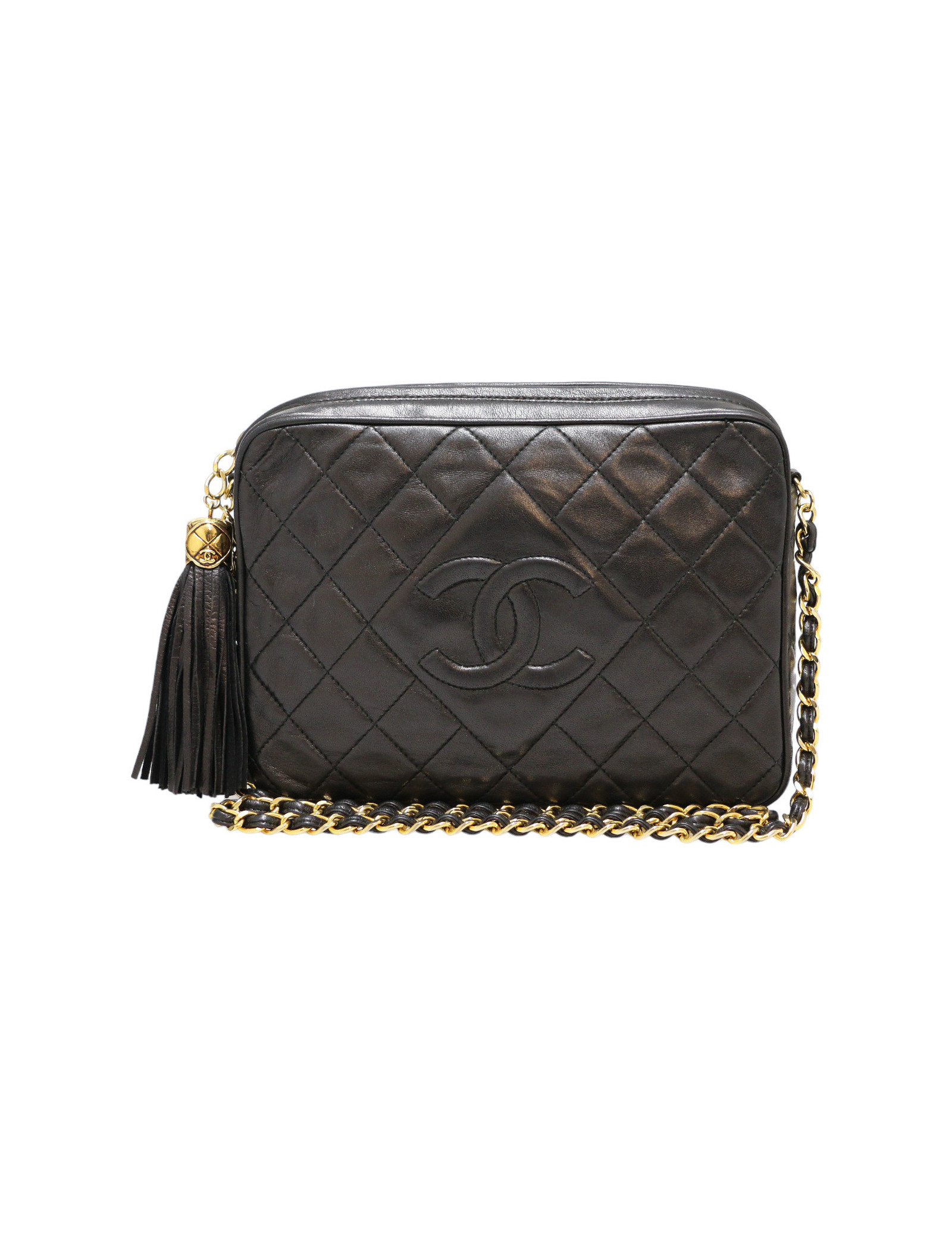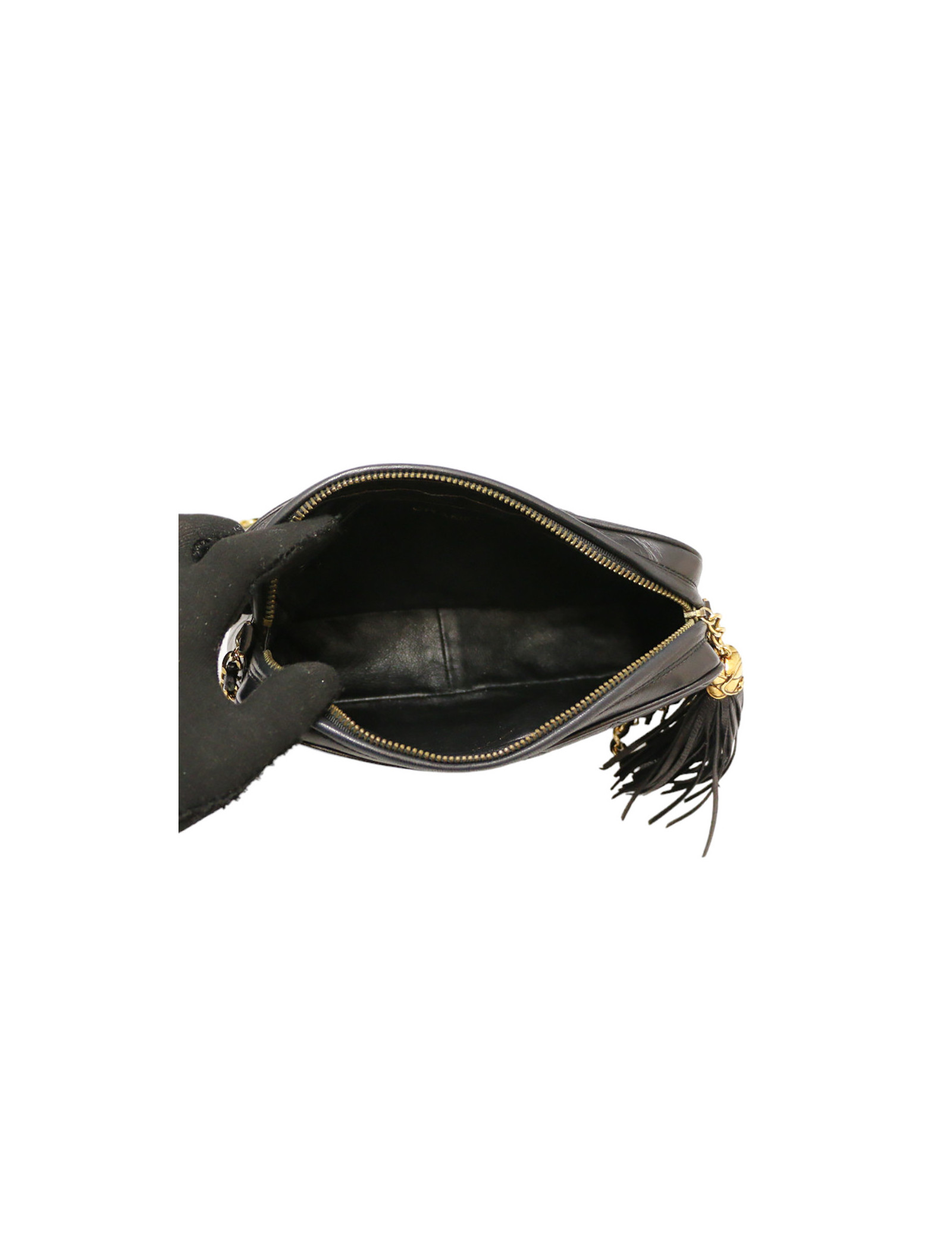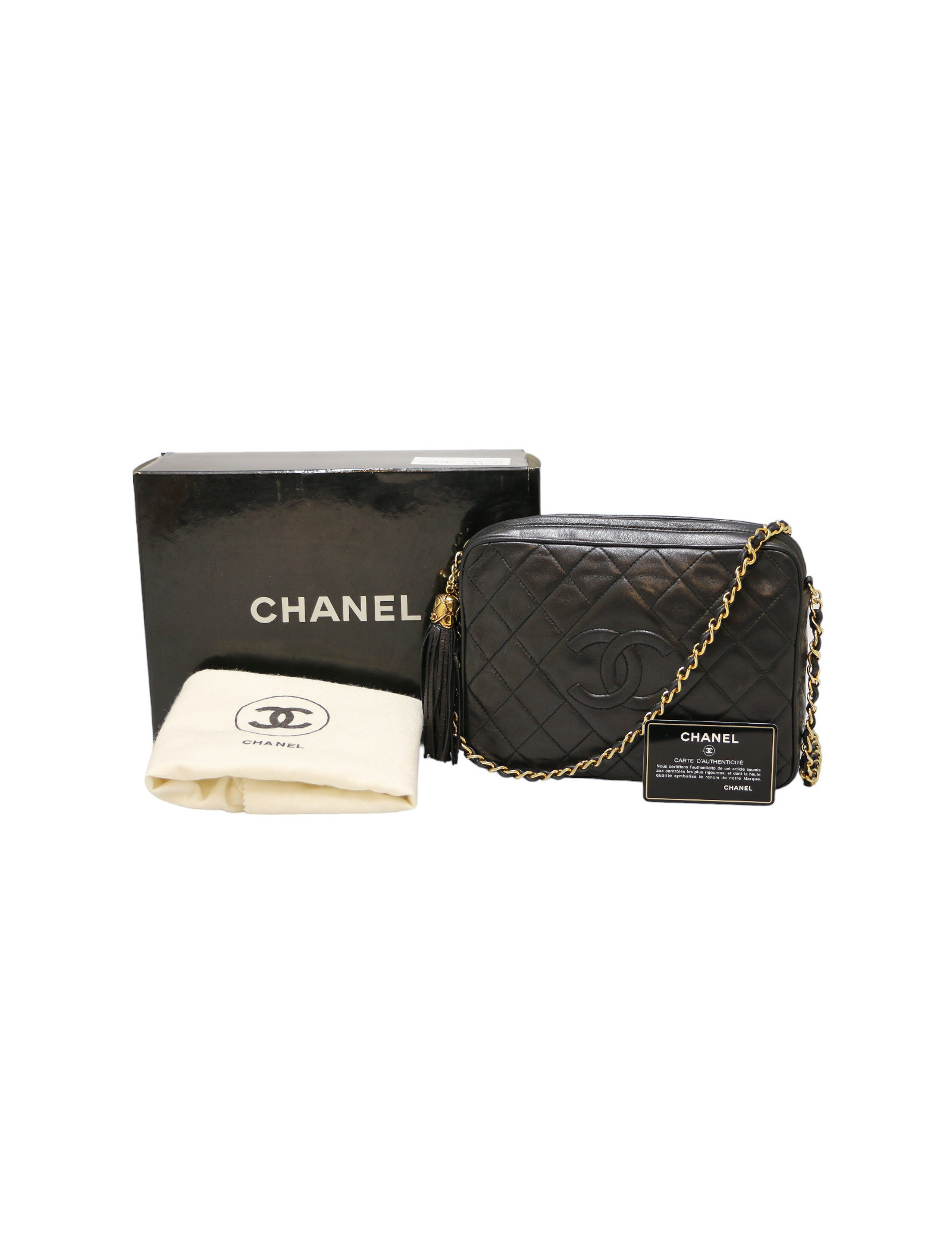 CAMERA CHANEL CHANEL vintage Camera GM bag CHANEL 34571 4,300.00 € Chanel black Caméra GM bag Condition : very goodMade in ItalyCollection : Caméra grand modèleGender : womanMaterial : leatherLining : black leatherColor : blackMeasurements : 27 x 20 x 8 cmShoulder strap : 104 cmHologram: noAuthenticity card : yesYear : 1989-1991Hardware :24K gold plated metalDetails : iconic pompn tassel Add to cart