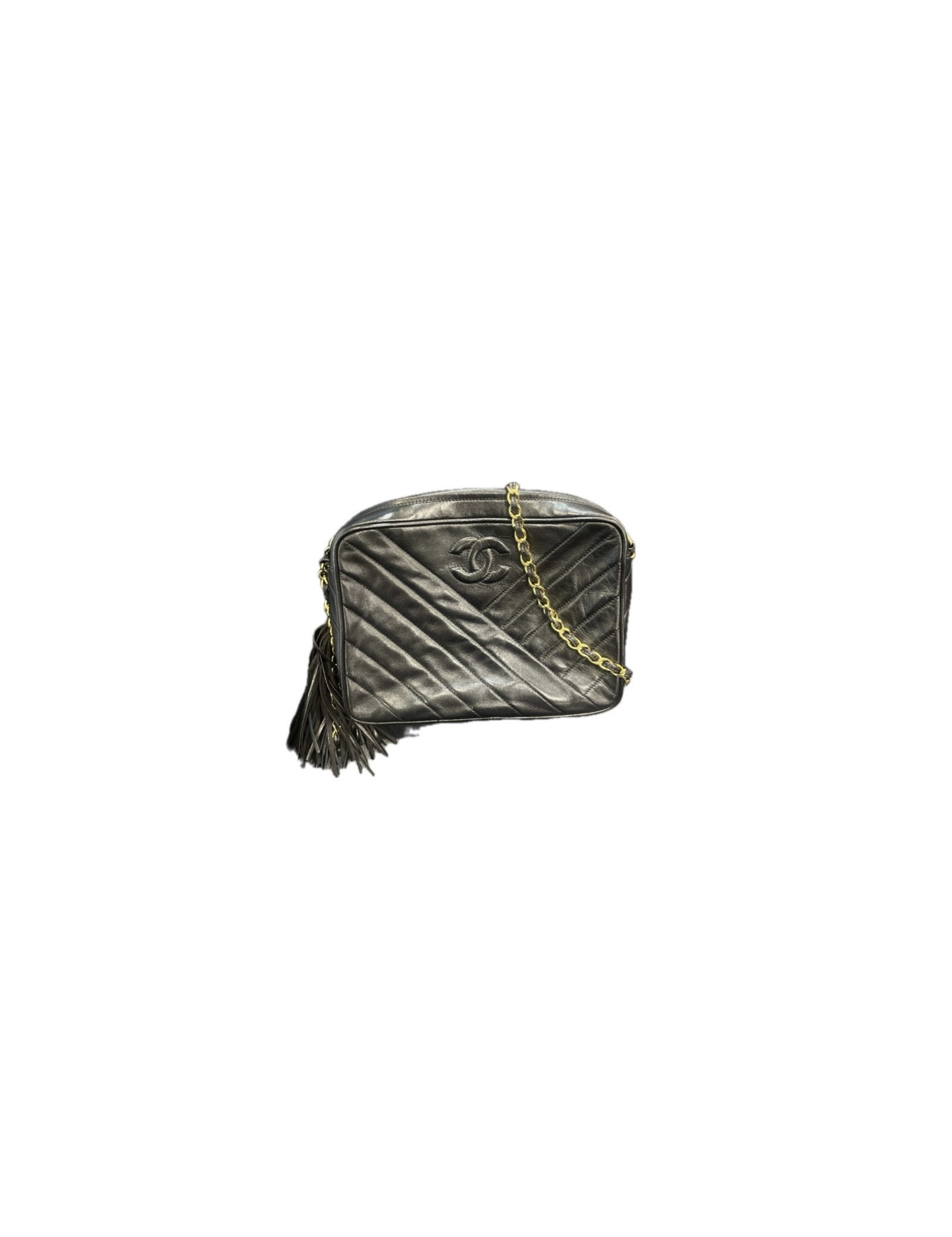 Last items in stock CAMERA CHANEL CHANEL vintage Camera GM bag CHANEL 34571 4,300.00 € Chanel black Caméra GM bag Condition : very goodMade in ItalyCollection : Caméra grand modèleGender : womanMaterial : leatherLining : black leatherColor : blackMeasurements : 27 x 20 x 8 cmShoulder strap : 104 cmHologram: noAuthenticity card : yesYear : 1989-1991Hardware :24K gold plated metalDetails : iconic pompn tassel Add to cart
