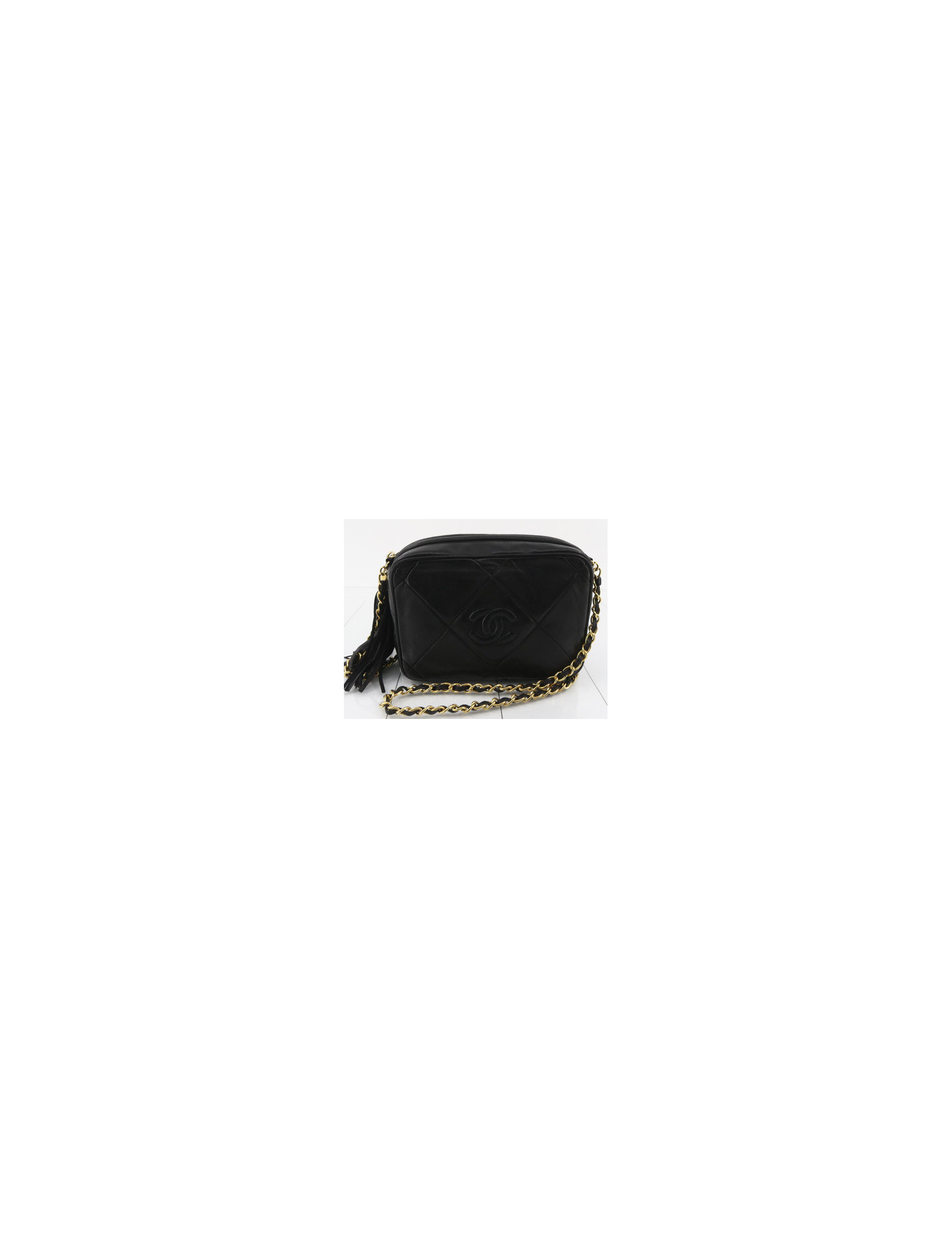 Last items in stock CAMERA CHANEL CHANEL vintage Camera GM bag CHANEL 34571 4,300.00 € Chanel black Caméra GM bag Condition : very goodMade in ItalyCollection : Caméra grand modèleGender : womanMaterial : leatherLining : black leatherColor : blackMeasurements : 27 x 20 x 8 cmShoulder strap : 104 cmHologram: noAuthenticity card : yesYear : 1989-1991Hardware :24K gold plated metalDetails : iconic pompn tassel Add to cart
