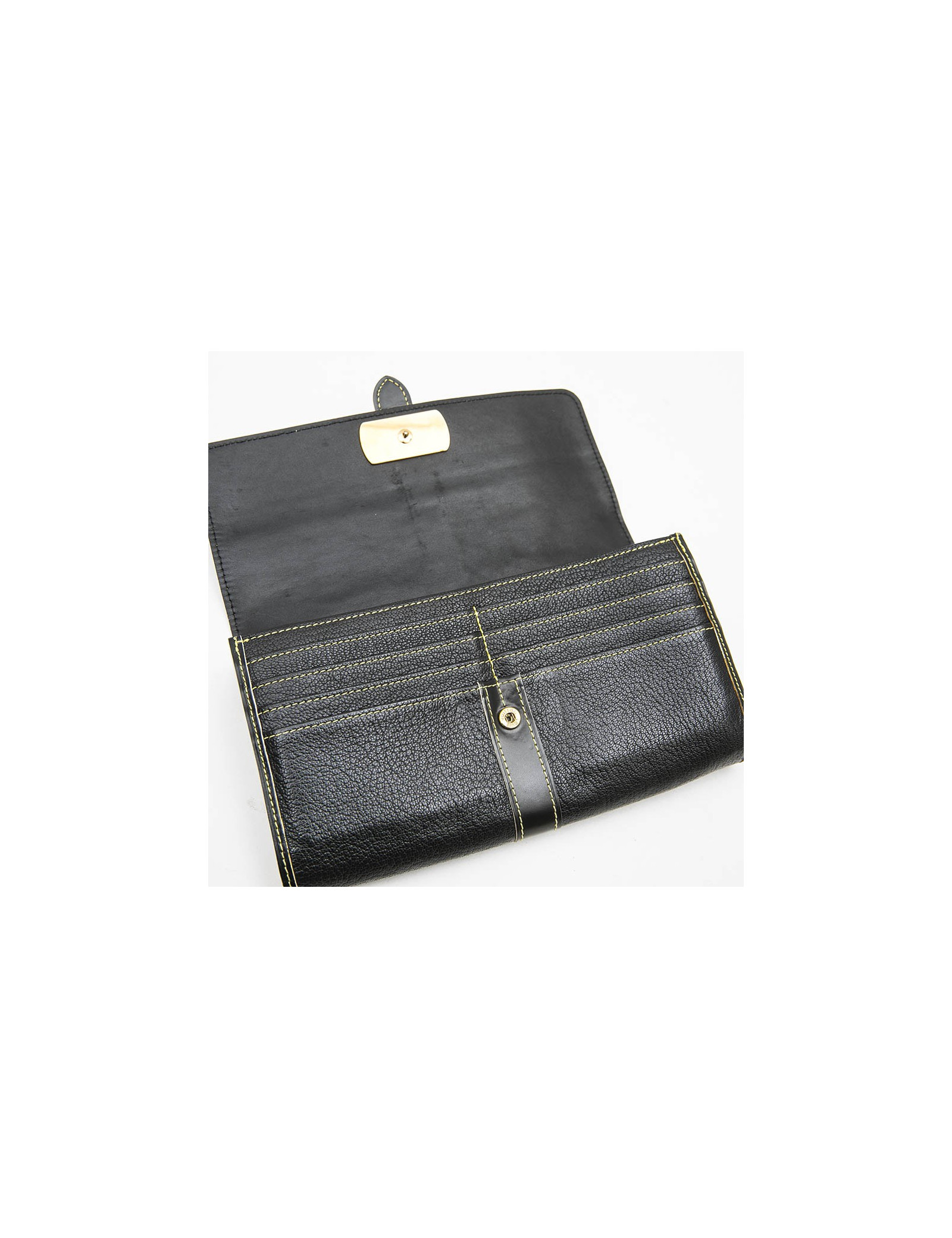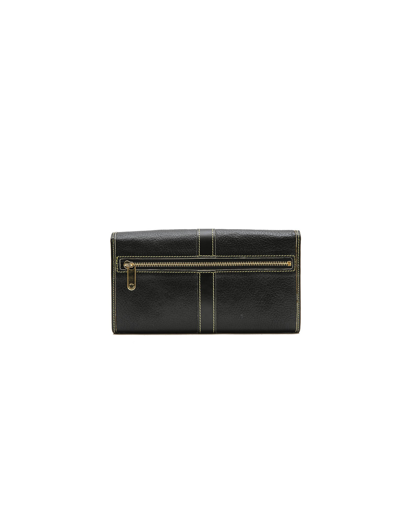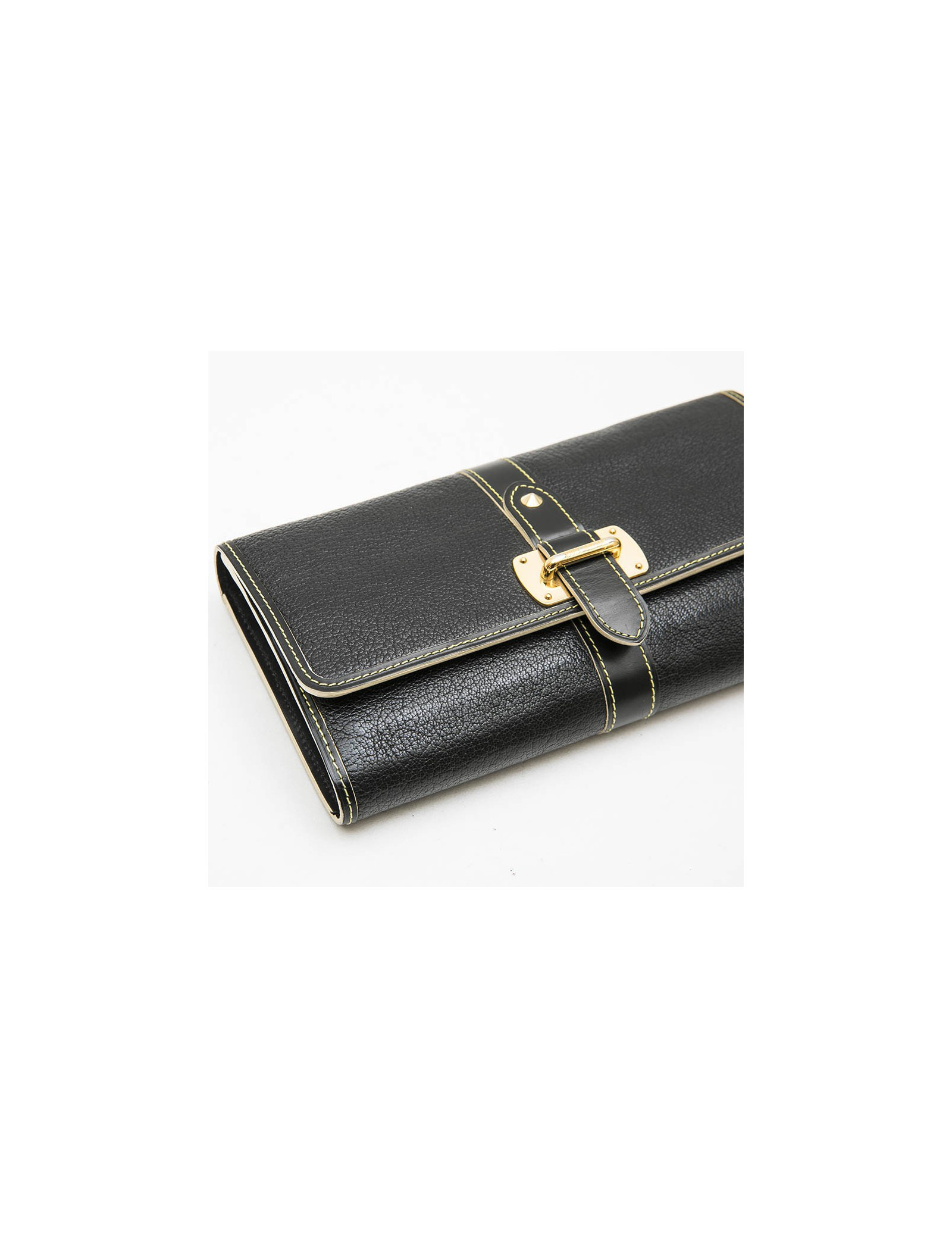 Louis Vuitton clutch in black grained leather with saddle stitching.
