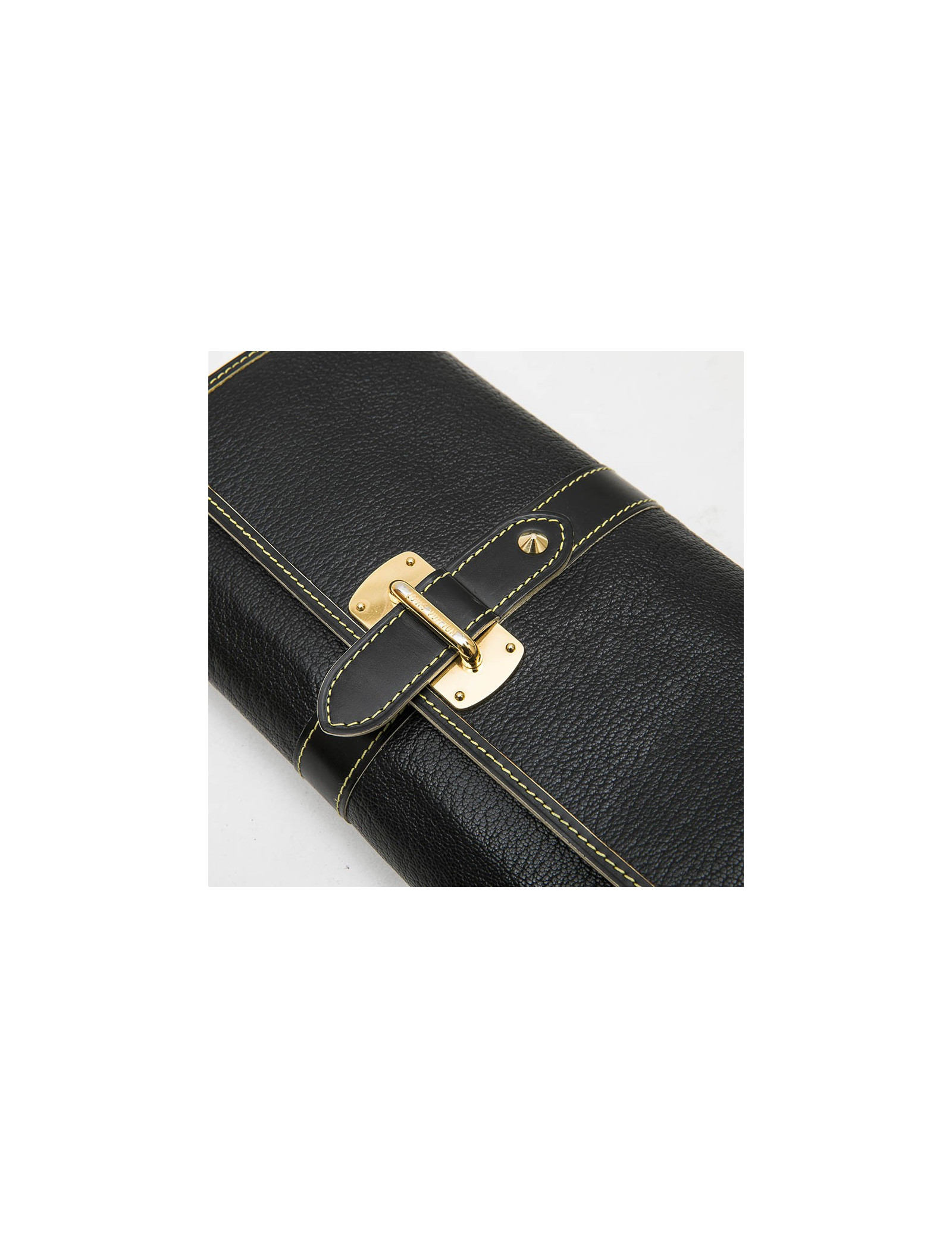 LOUIS VUITTON clutch in black grained leather with saddle stitching
