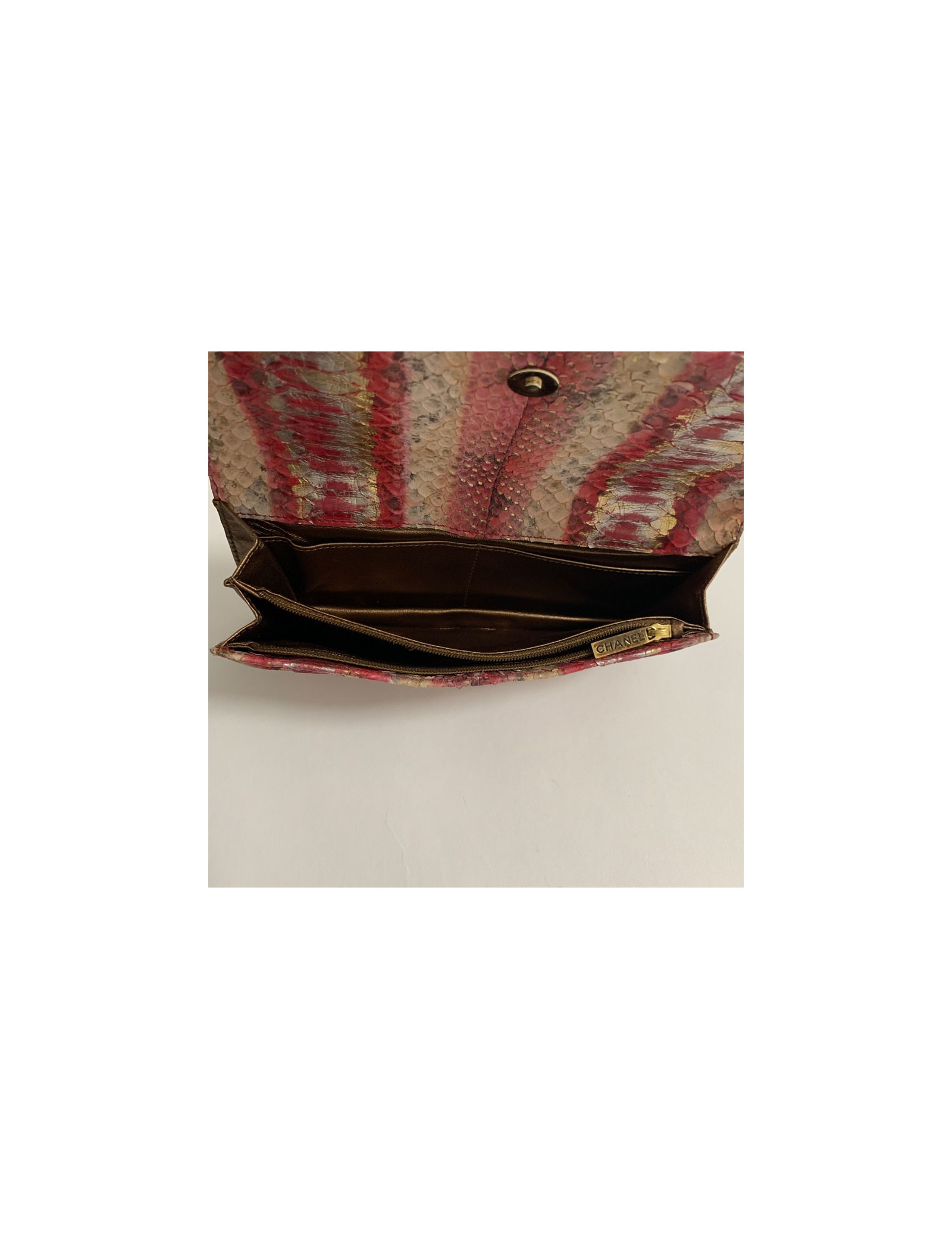 Last items in stock CLUTCH BAGS CHANEL evening clutch in golden brown moire sequins CHANEL 31273 2,100.00 € CHANEL evening clutch in golden brown moire sequins Condition : very goodMade in FranceGender : womanMaterials: leather, sequinsColor : golden brownMeasurements : 19,2 x 12,3 × 3,5 cm Hologram : 1614...Authenticity card : noYear : 1984-1986Vintage Add to cart