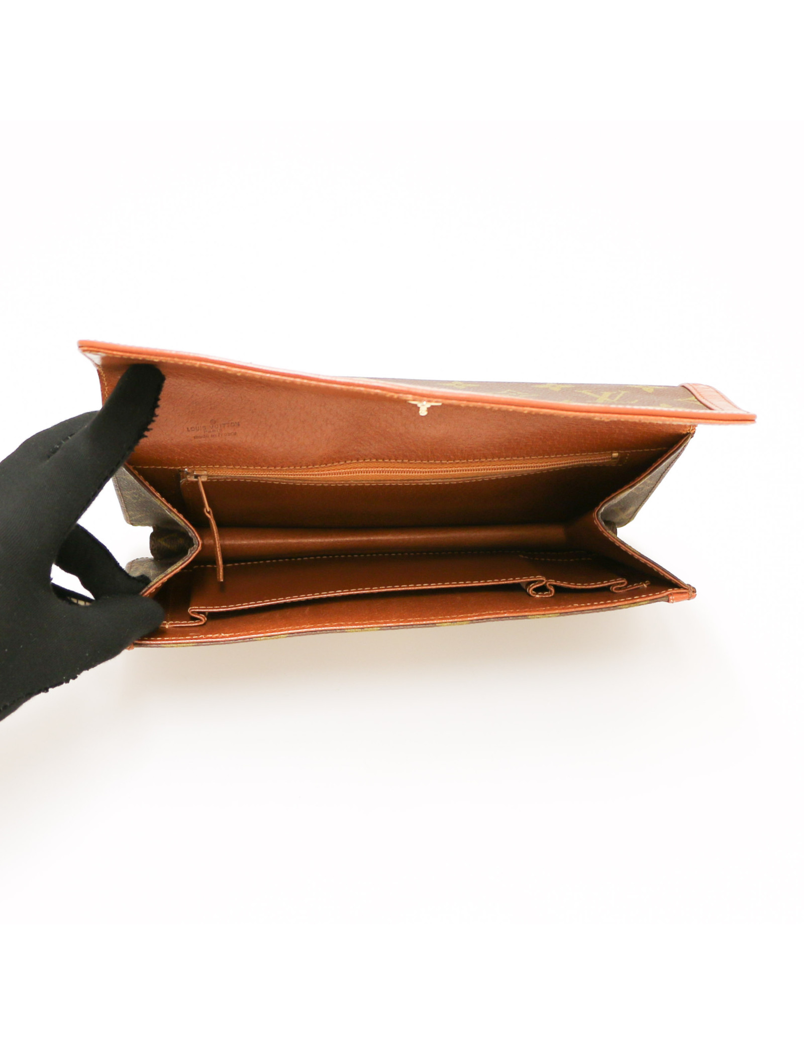 CLUTCH BAGS GUCCI green and bronze python clutch GUCCI 21738 1,000.00 € GUCCI green and bronze python clutch Condition : very goodMade in ItalySerial number: B0180..... (under the brand tag)Measurements: length 30 cm, height 21 cm, depth 3 cm.Details : slight scratches under the flap Advantage VALOIS VINTAGE PARIS :comes in its GUCCI dustbag. Add to cart