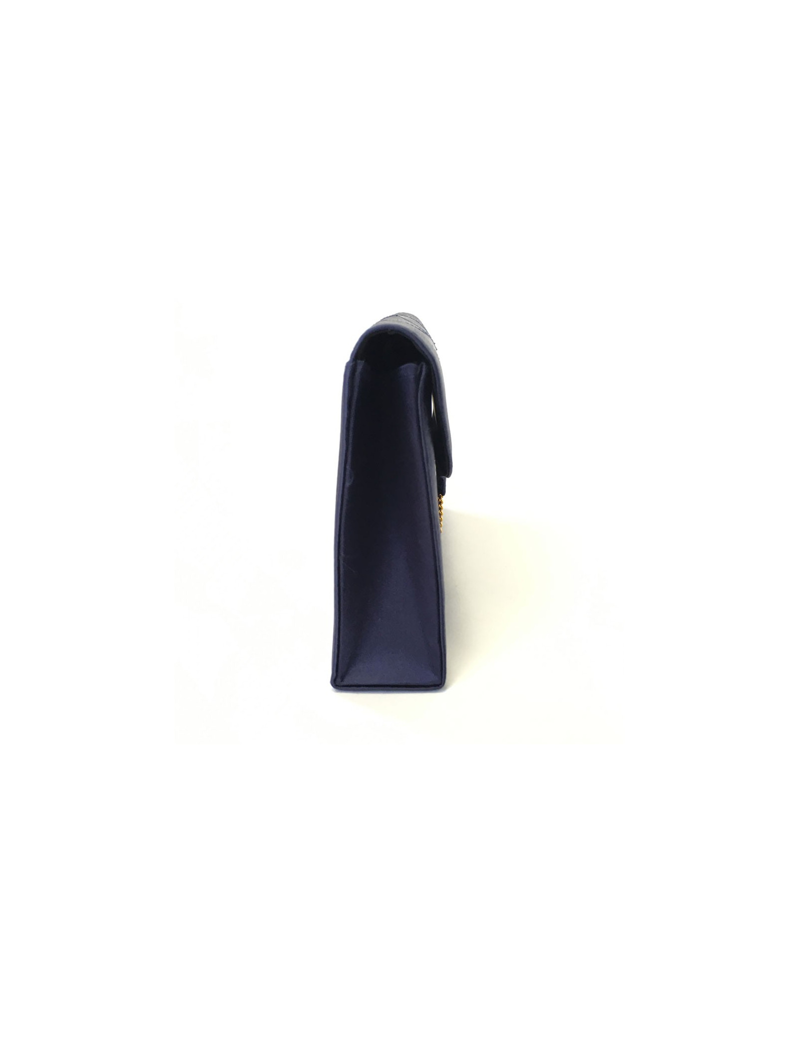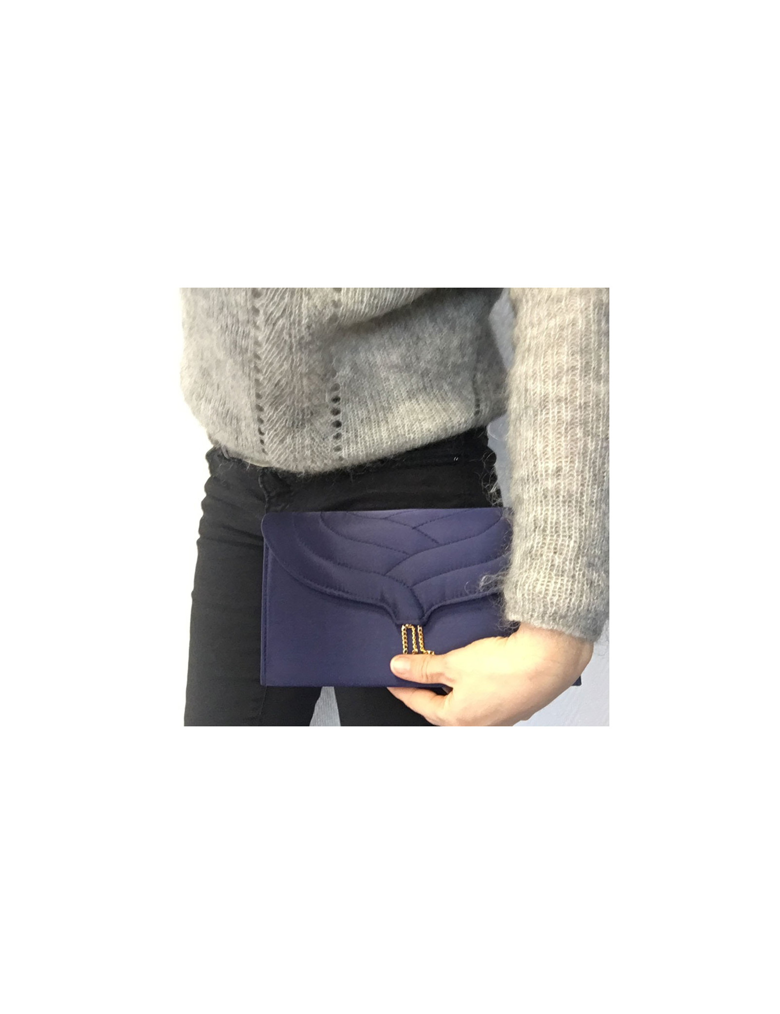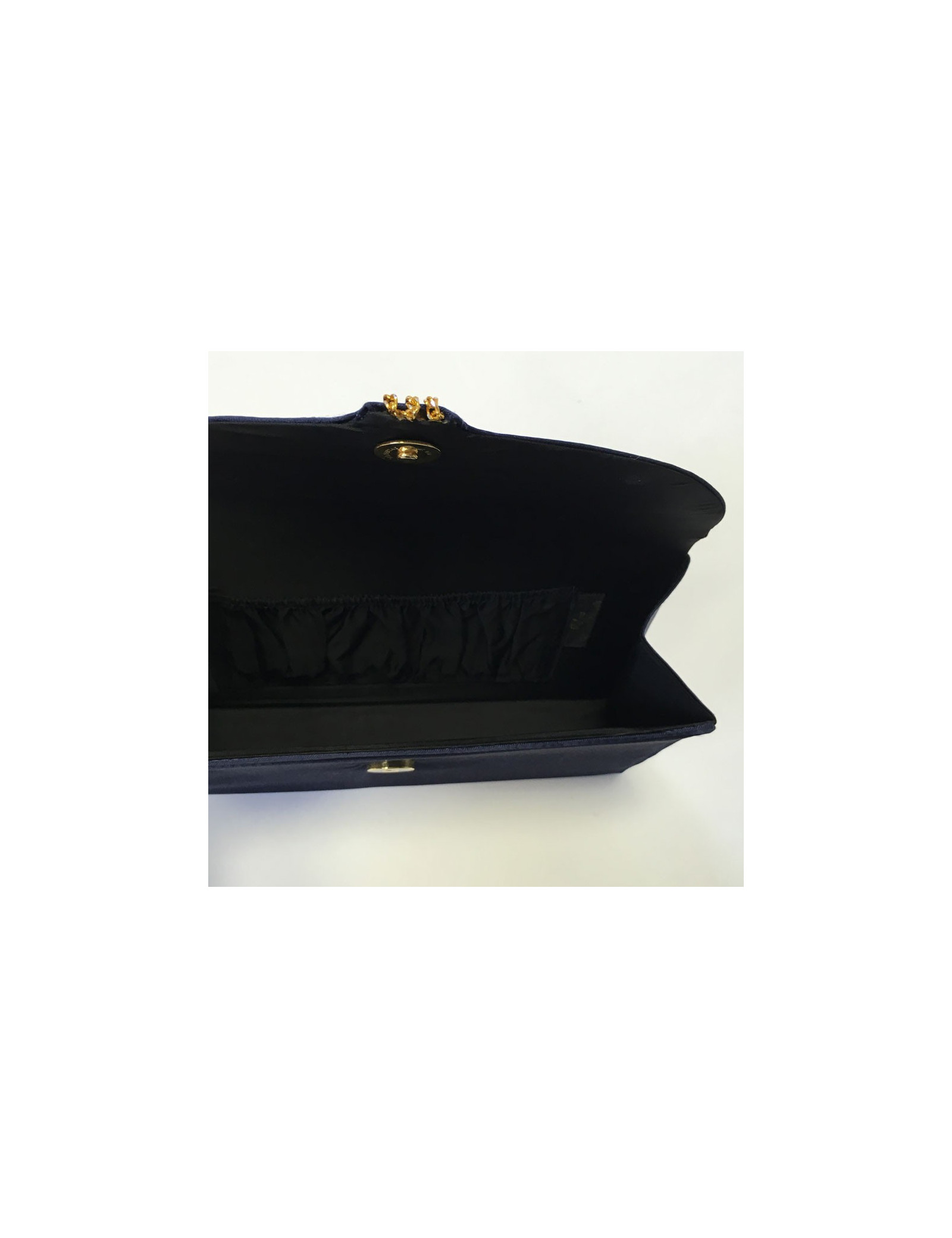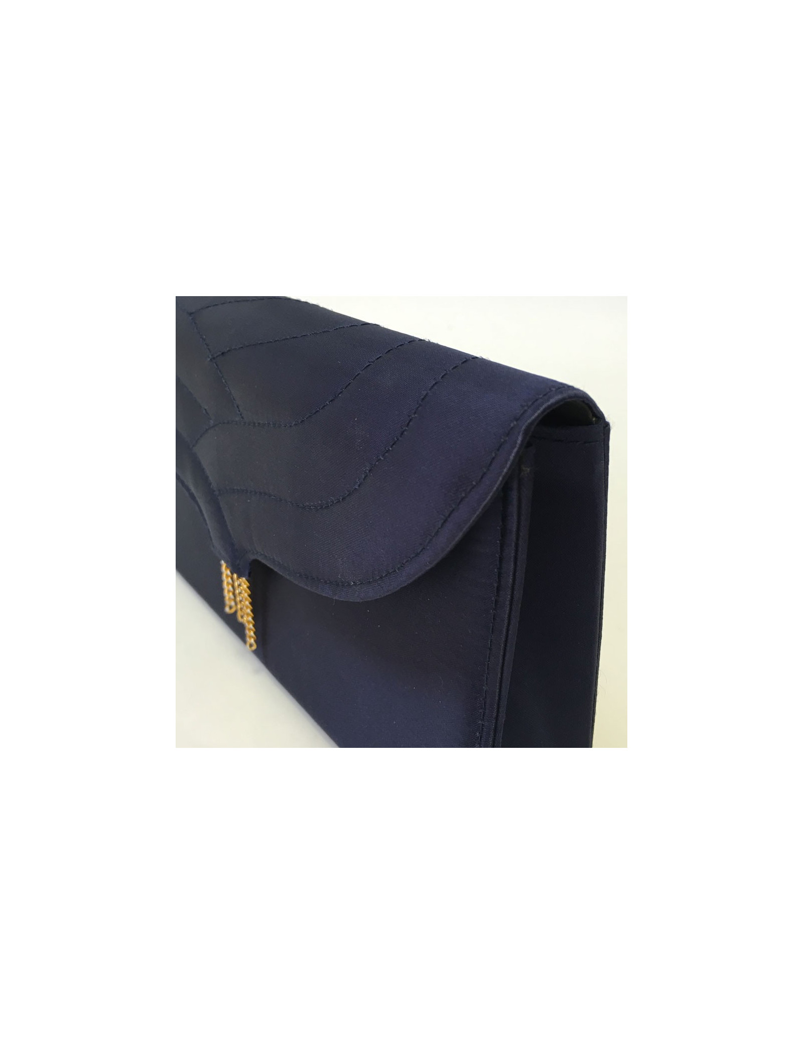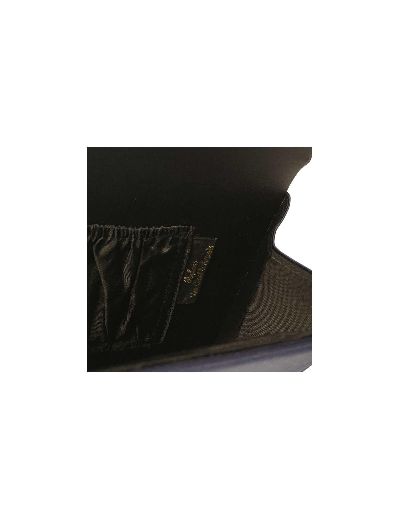 Cover of the evening VAN CLEEF & ARPELS in blue satin. Clasp magnet with 3 small dangling chains. Interior in satin black, small elastic pocket on the side. Rigid sleeve. In perfect condition.