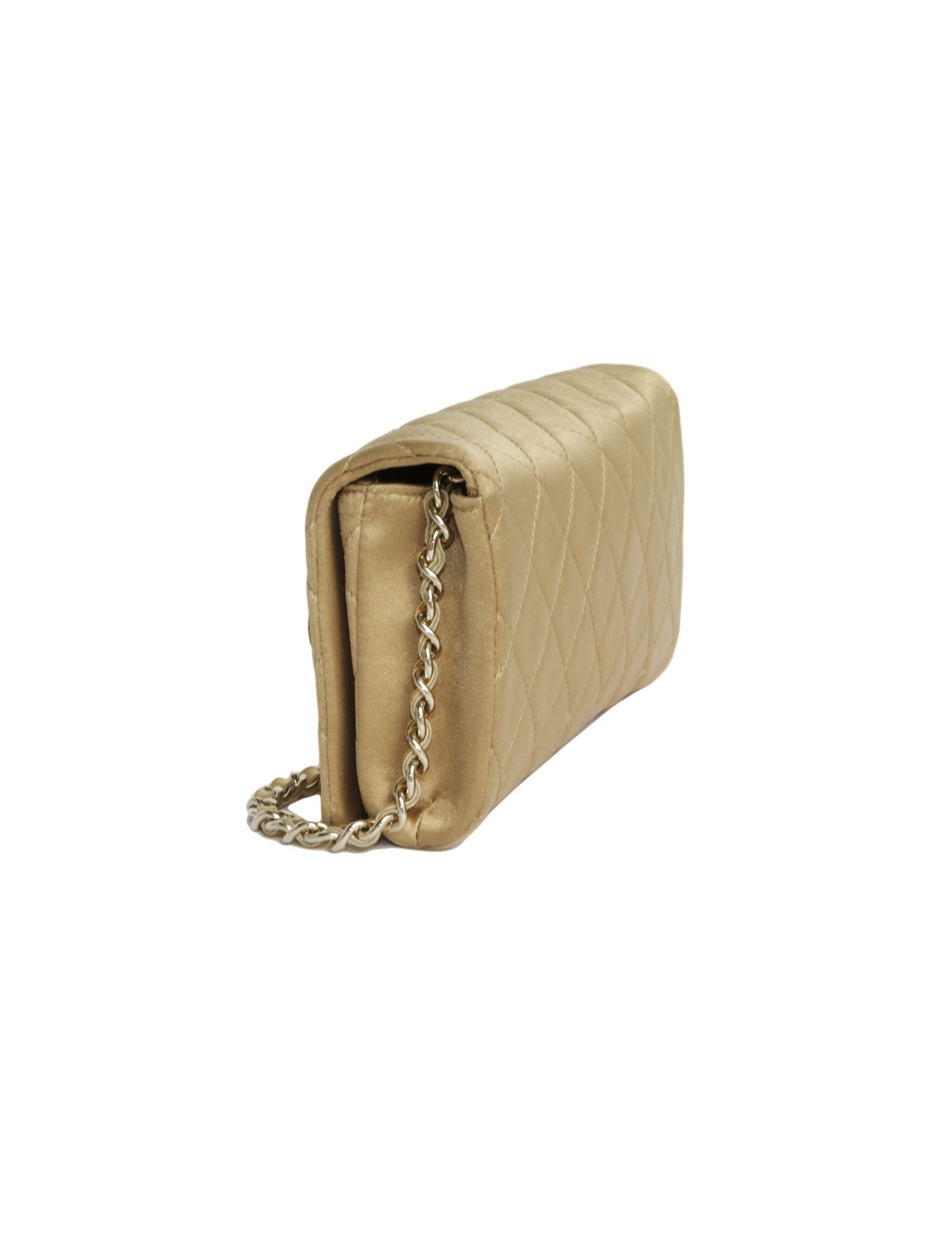 Chanel evening bag in coppered silk satin. Gilded metal hardware.