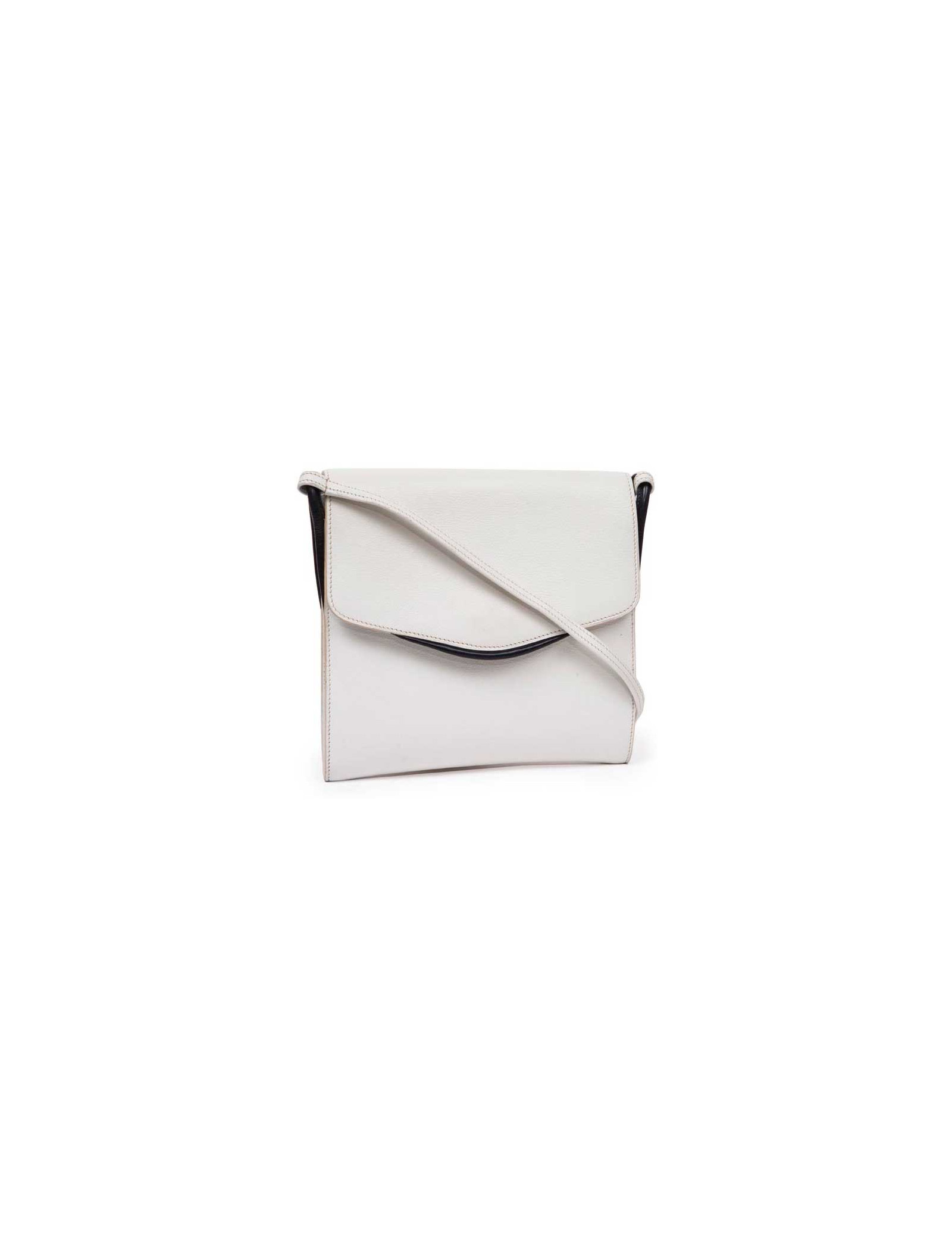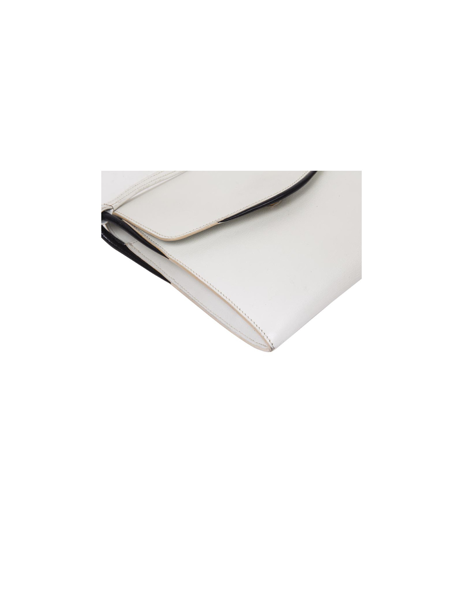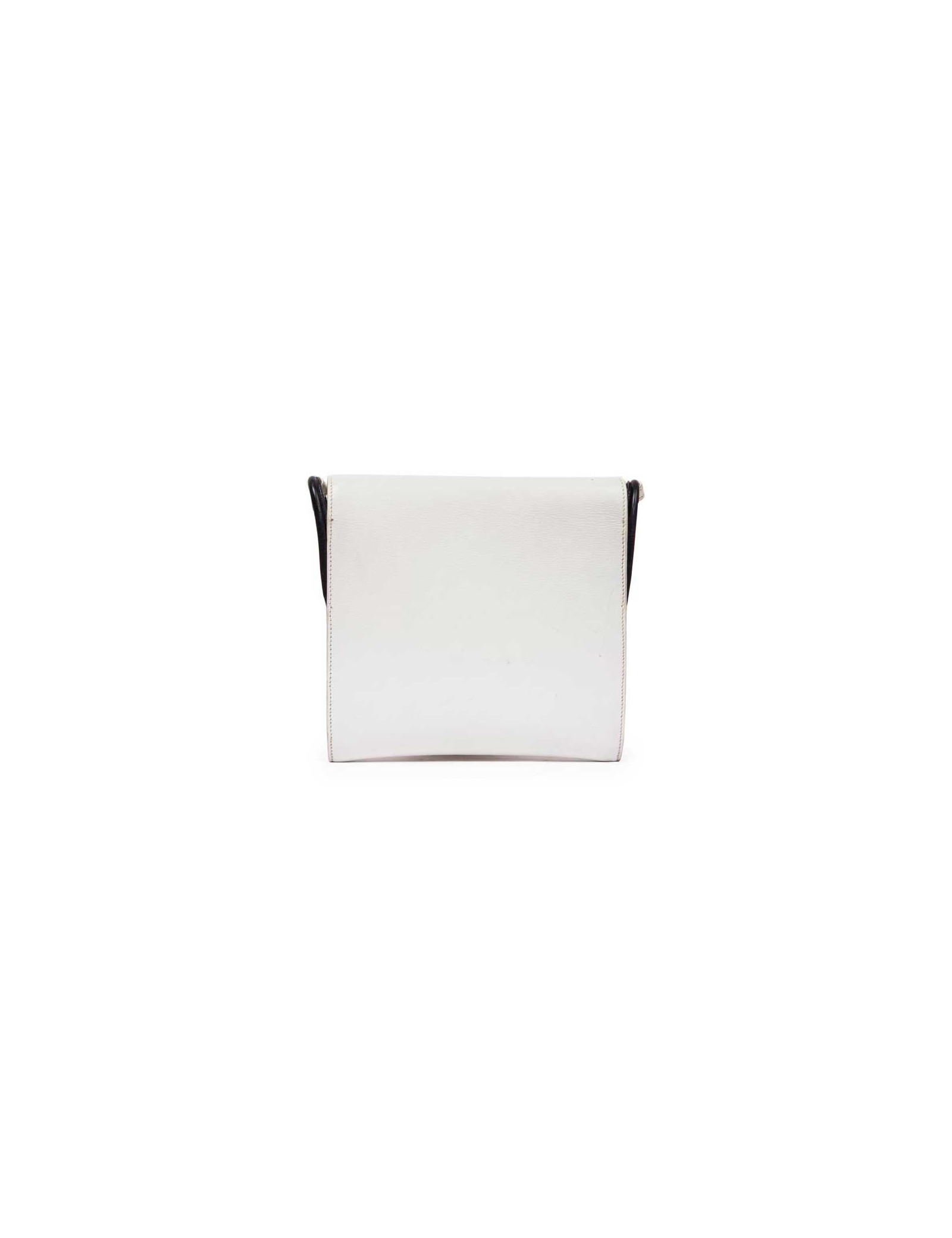 Trendy Hermès vintage bag in white leather and night blue trim.