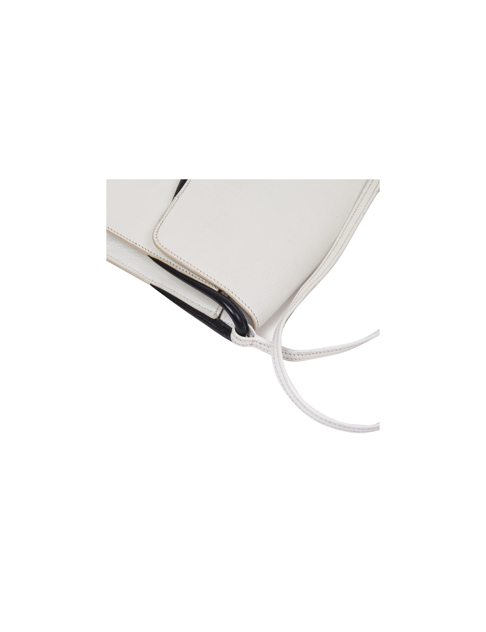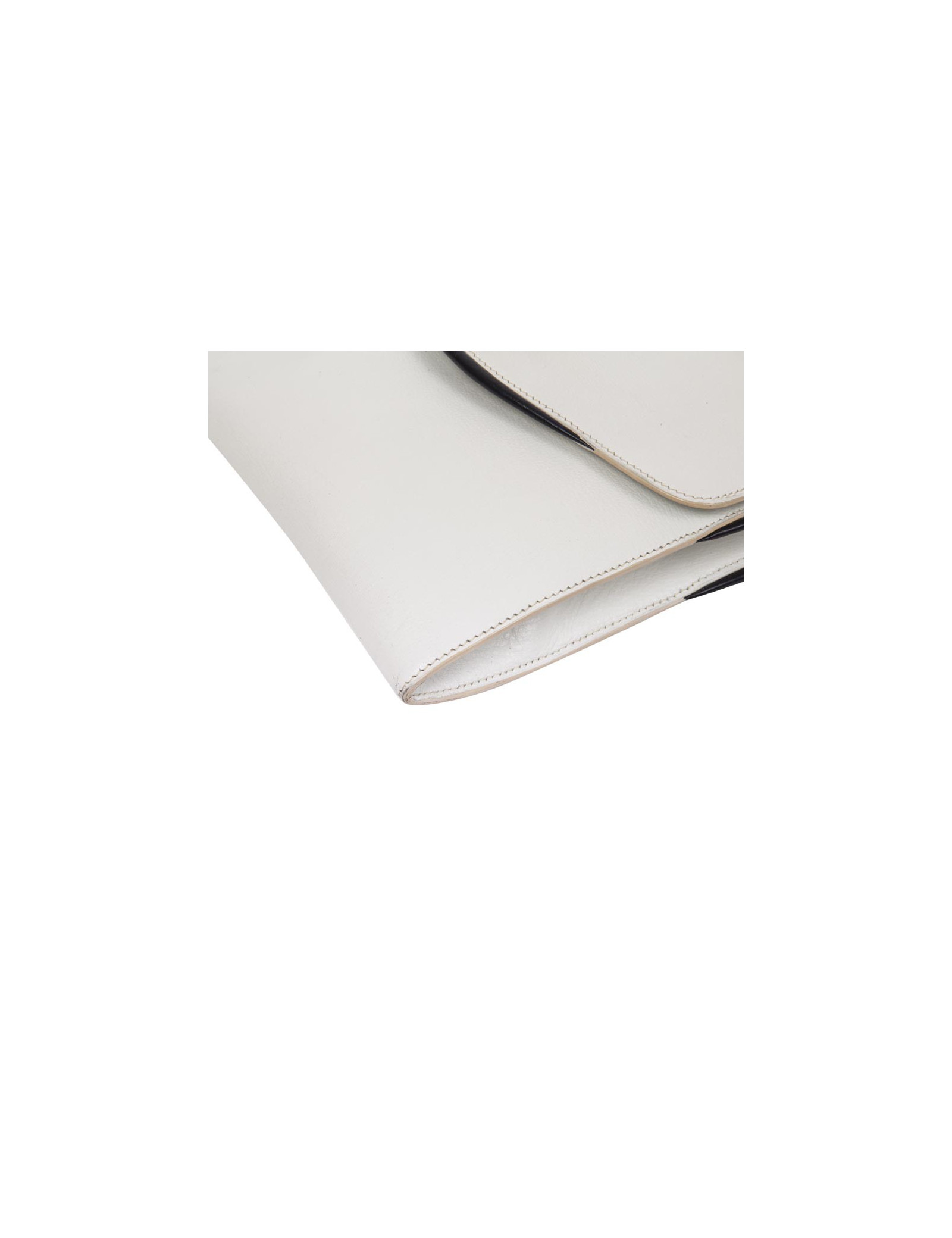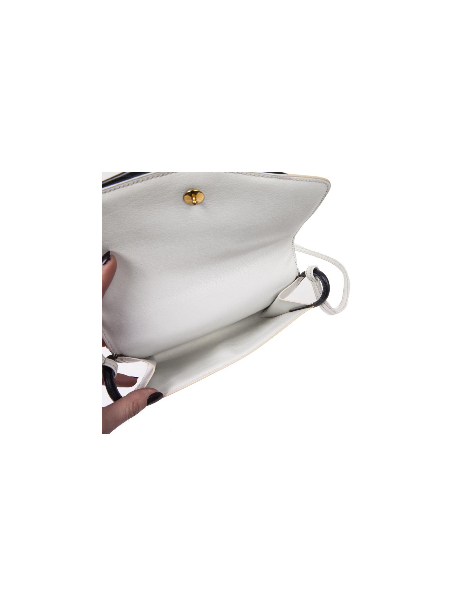 Trendy Hermès vintage bag in white leather and night blue trim.