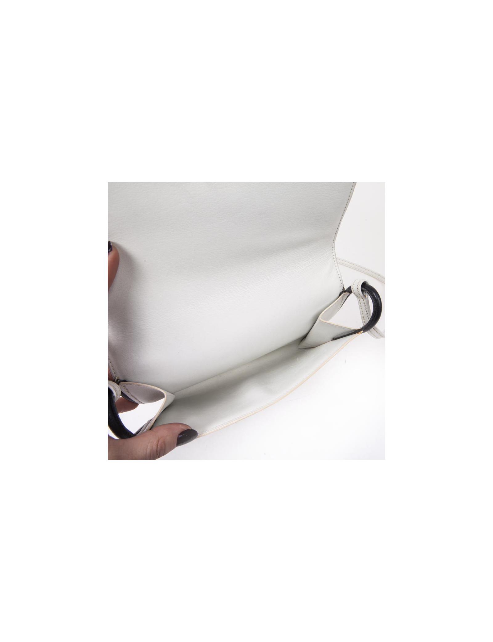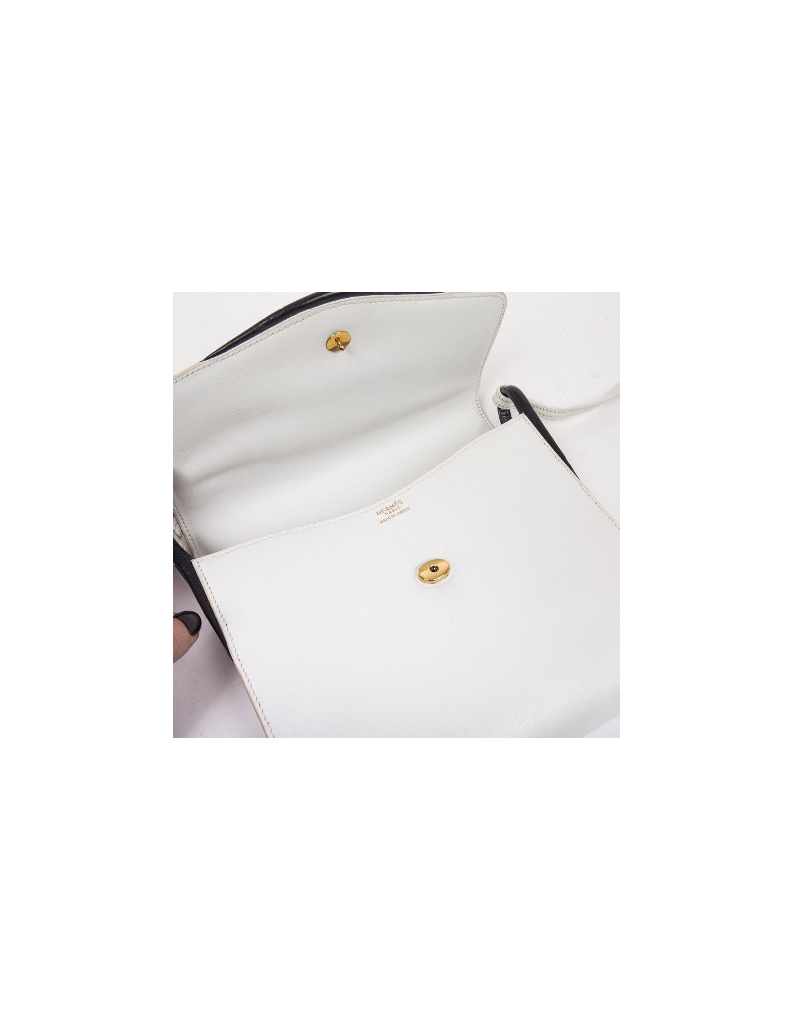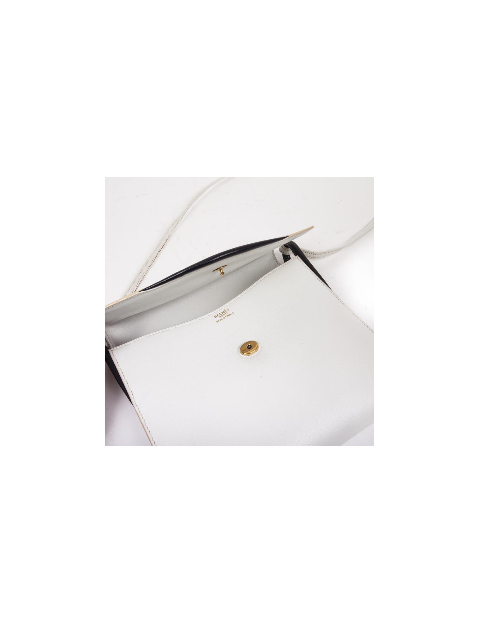 HERMES vintage bag in white leather and night blue trim