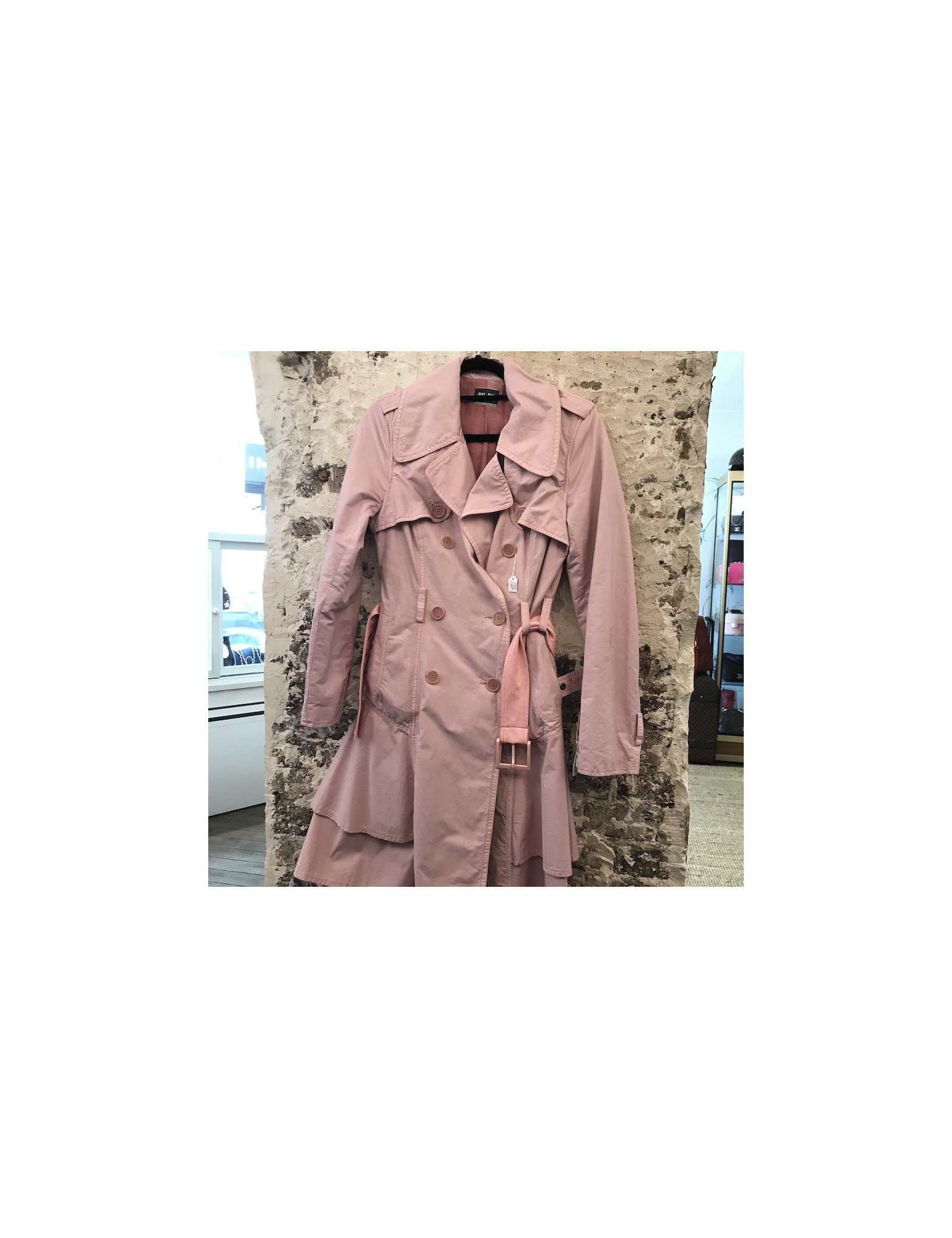 Last items in stock COATS-TRENCHS CHANEL light pink mohair coat size 38FR CHANEL 33972 4,990.00 € CHANEL coat size 38FR Fall 2017 ready to wear collection Condition : very goodMade in FranceSize : 38FRMaterials : mohair, aged silver leatherLining : light pink silk lining Colors : pink, silverHardware : transparent with a half pearly beadMeasurements : shoulders : 40 cm, underbust : 44 cm, height: 77 cm, sleeves length : 64 cm, wrist circumference: 30... Add to cart