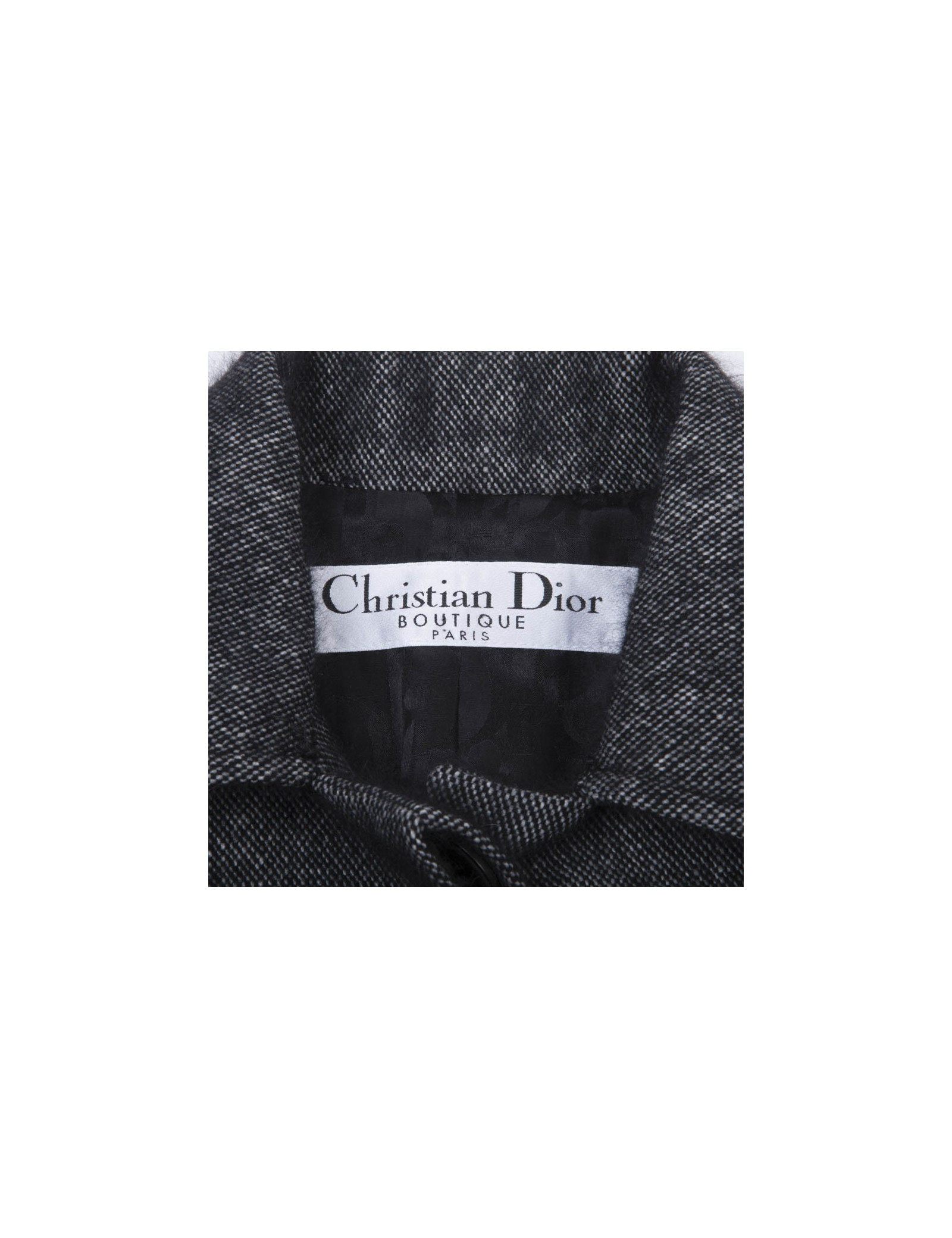 Very sweet coat Christian Dior (by John Galliano) in Angora and gray and black wool. The high waist closes with 6 black engraved "Dior" buttons. Height 38