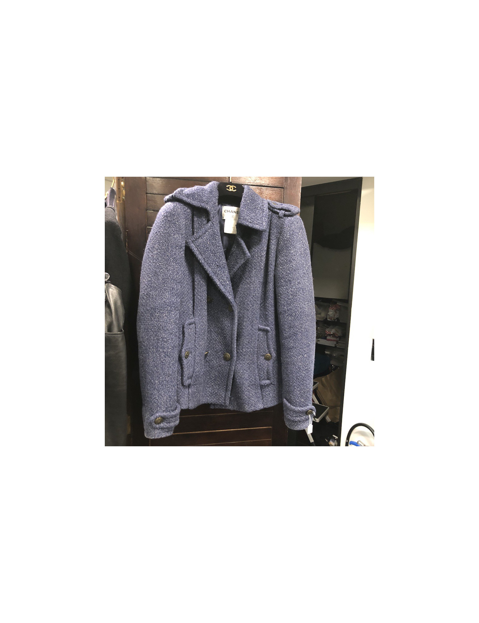 Last items in stock COATS-TRENCHS Dress coat CHANEL blue tweed T38 CHANEL 14150 3,200.00 € Dress-blue tweed coat Navy and white CHANEL, raglan sleeves, closed by a zipper. Spring 2008 collection, size 38. The lining is made of 100% silk Navy Blue monogrammee. marine blue tweed coat dress and white CHANEL size 38. The lining is fully 100% silk, in very good condition You can wear either dress or coat. This is the spring 2008... Add to cart