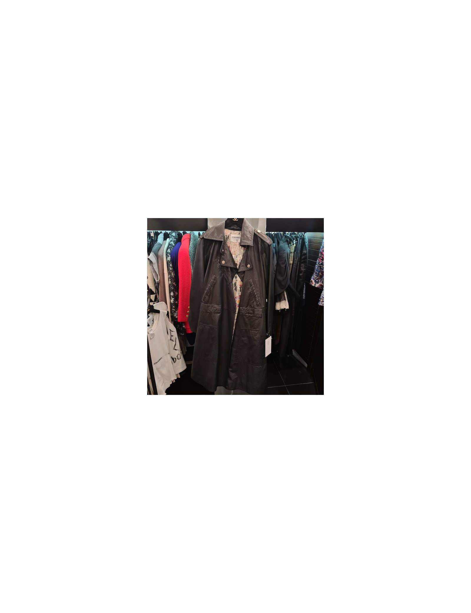 COATS-TRENCHS CHANEL light pink mohair coat size 38FR CHANEL 33972 4,990.00 € CHANEL coat size 38FR Fall 2017 ready to wear collection Condition : very goodMade in FranceSize : 38FRMaterials : mohair, aged silver leatherLining : light pink silk lining Colors : pink, silverHardware : transparent with a half pearly beadMeasurements : shoulders : 40 cm, underbust : 44 cm, height: 77 cm, sleeves length : 64 cm, wrist circumference: 30... Add to cart