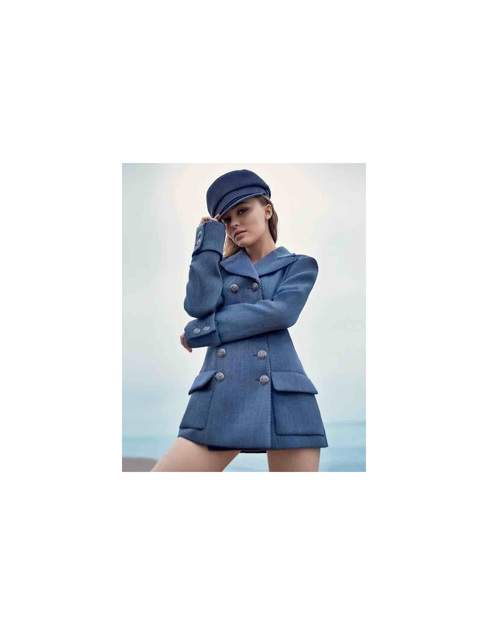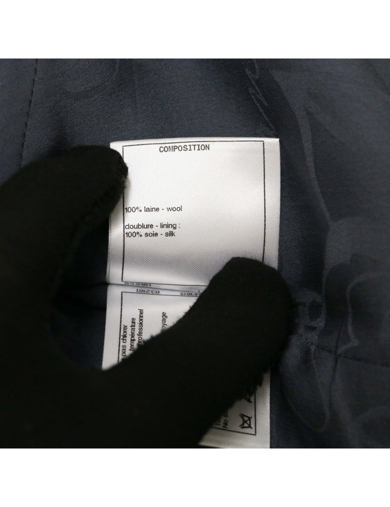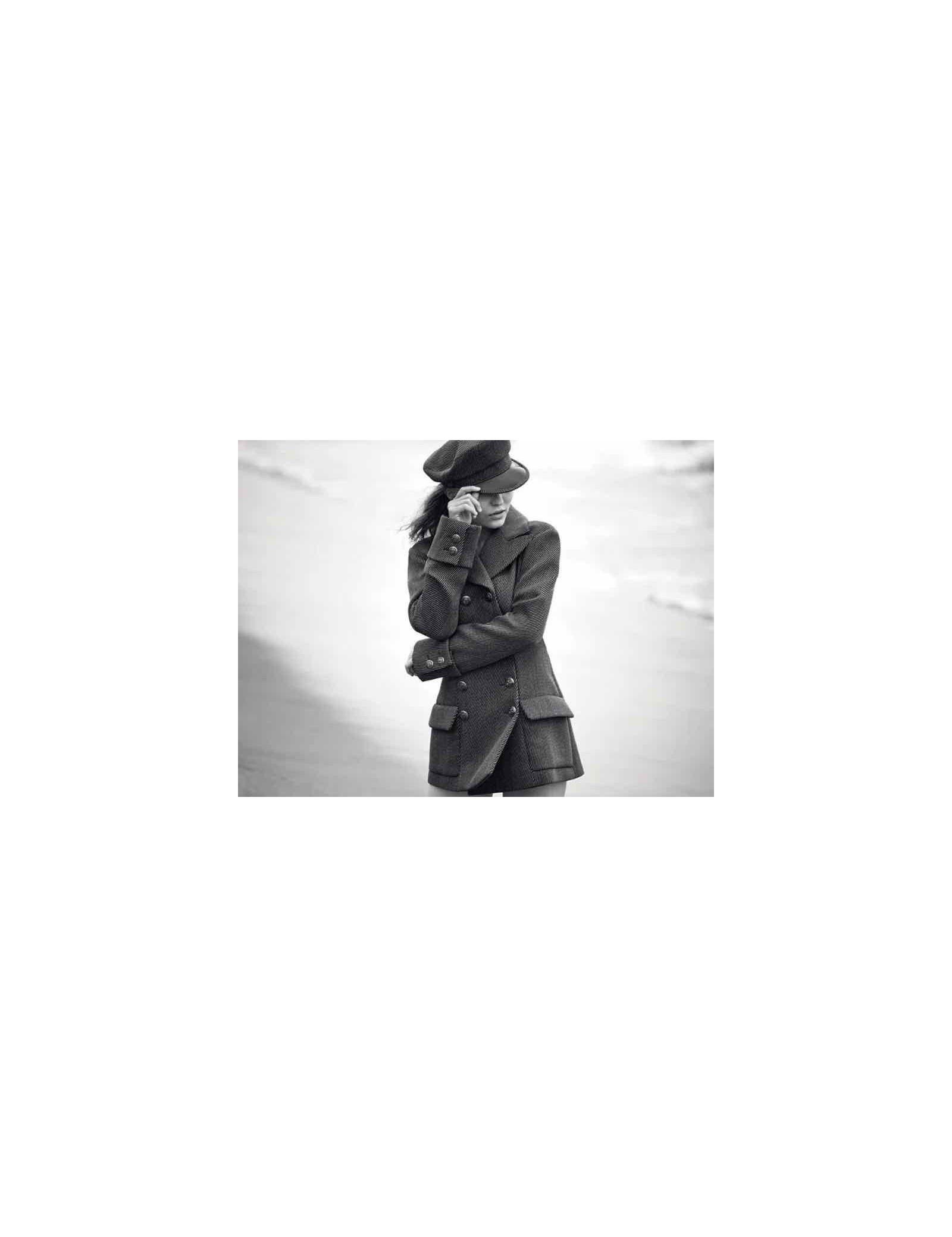 Details : Navy-inspired pea jacket, 16 silver buttons with CC signature and ship anchor, two pockets. Monogrammed silk lining and emblematic metal chain.
