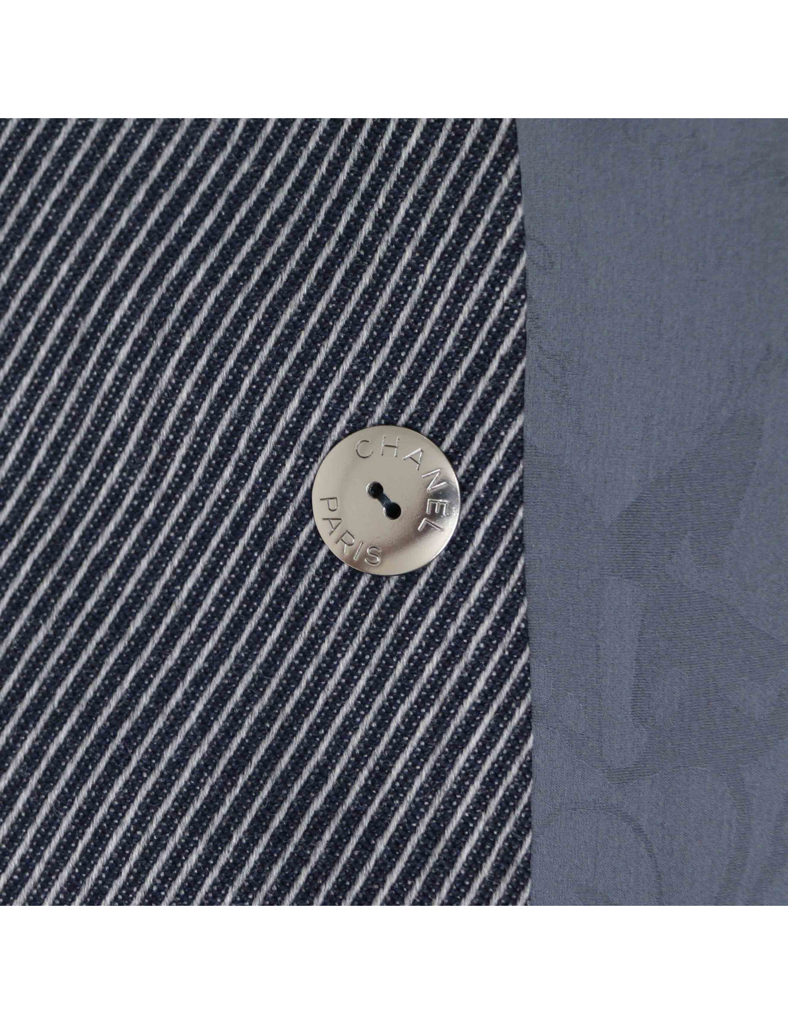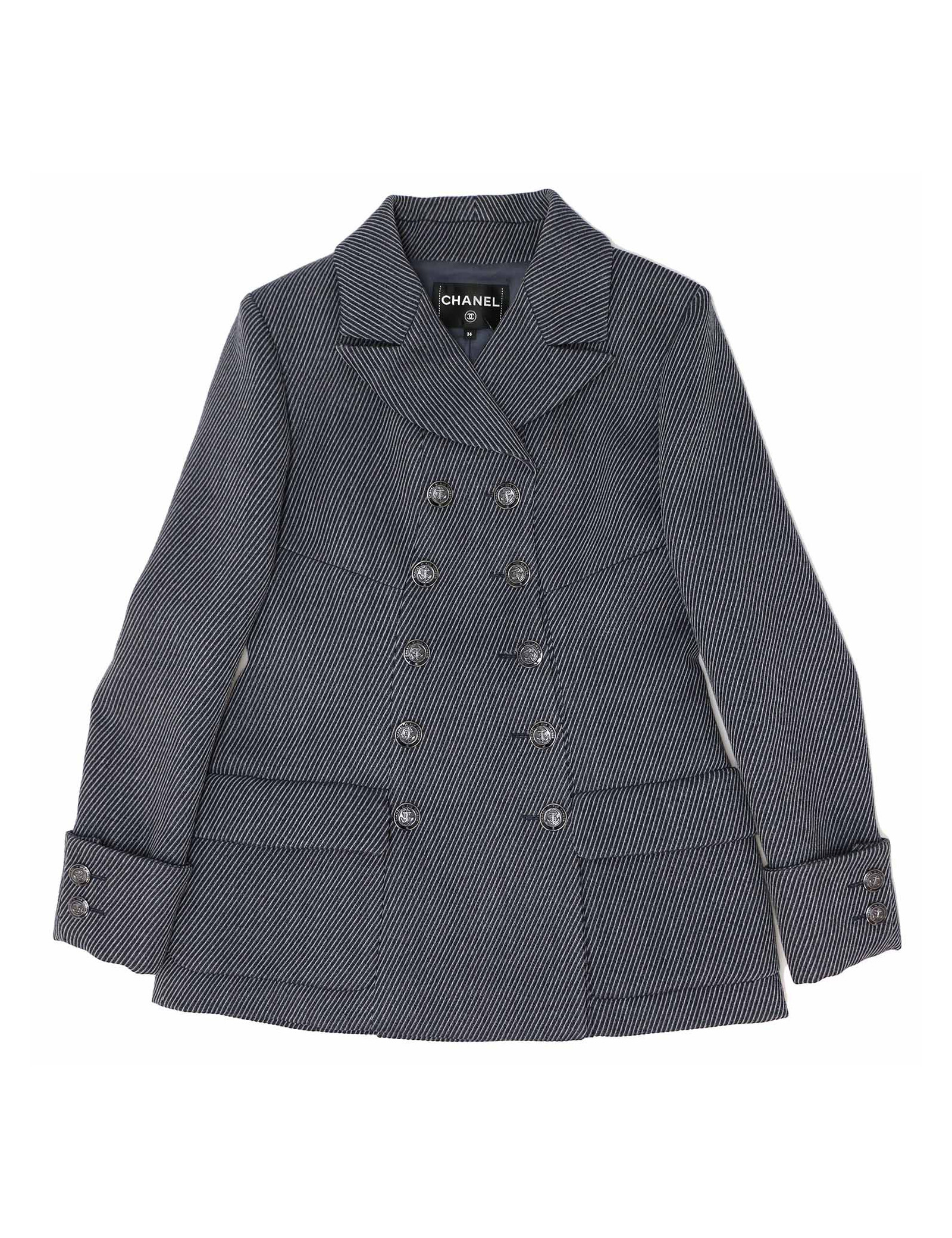 CHANEL blue and grey striped peacoat