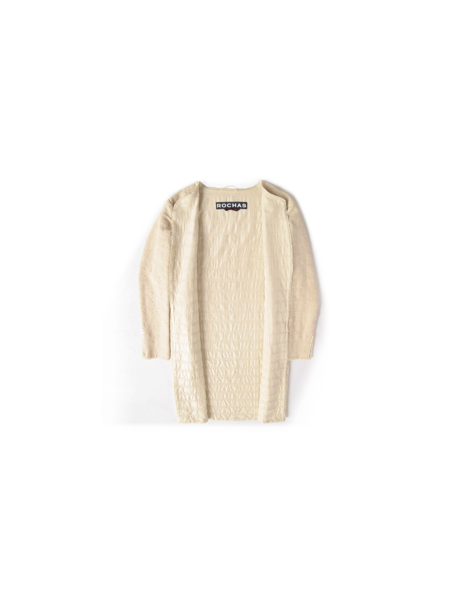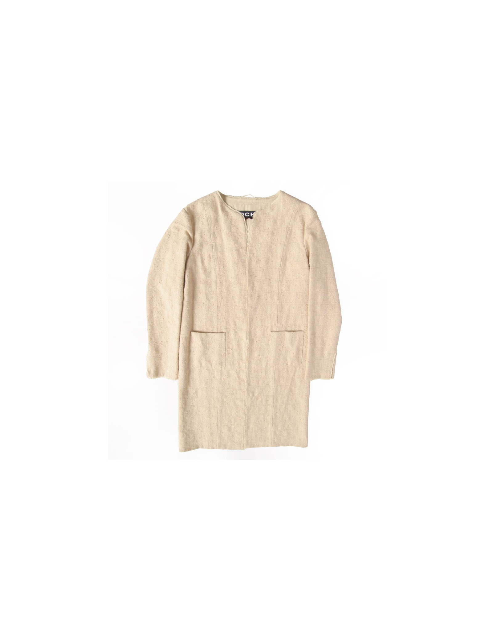 Broken Rochas white cotton coat. Italian T42 is equivalent to a 38 french. Two patch pockets. Slot on the handles decorated with small wheels. in very good condition.