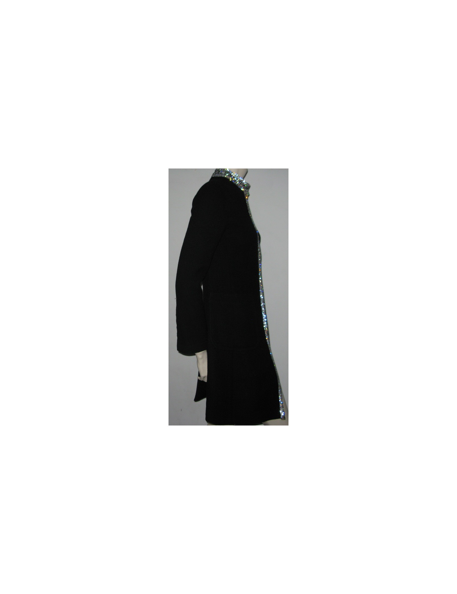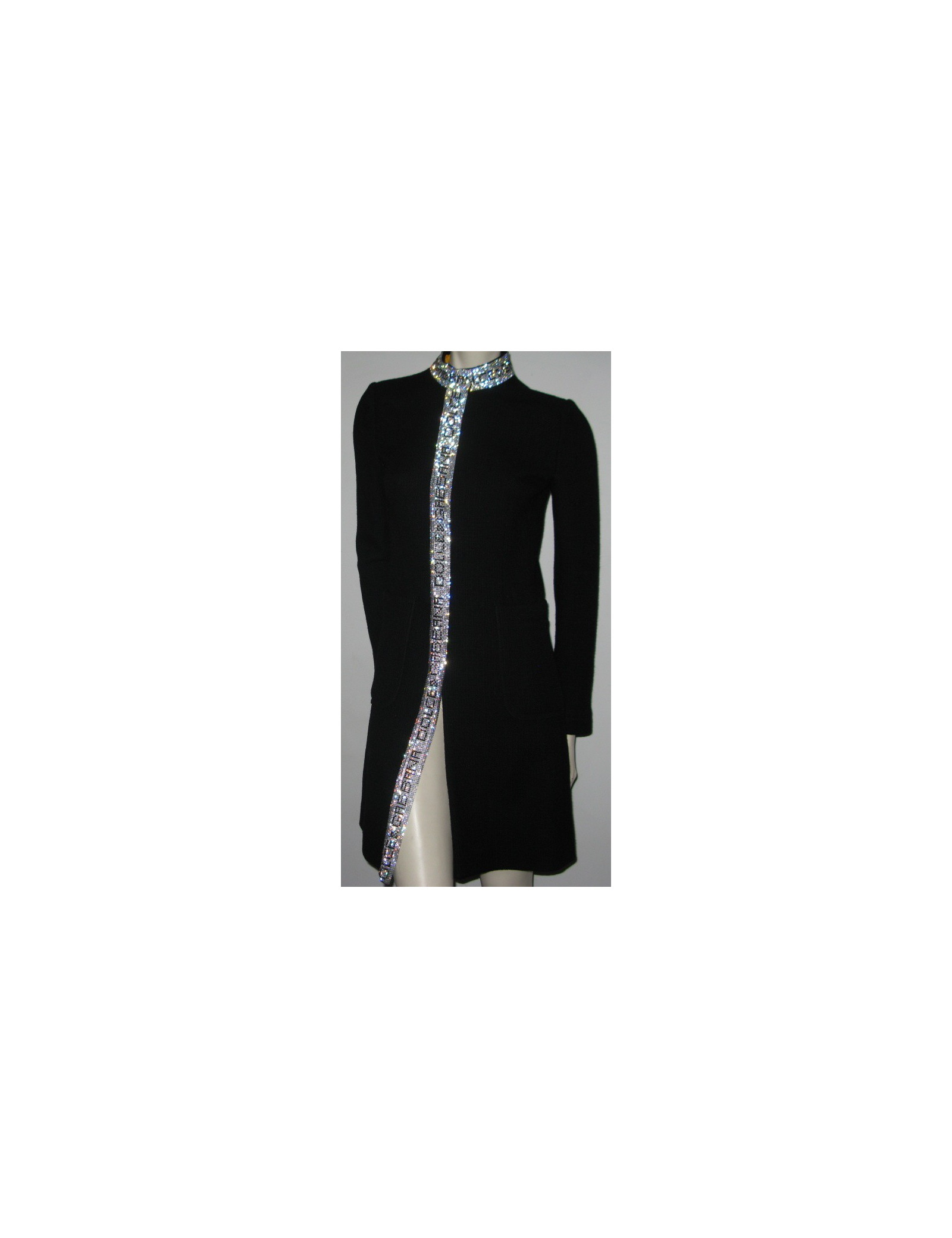 Great coat collar mao, T38 wool black Virgin & rhinestones swarovski black & white DOLCE GABBANA