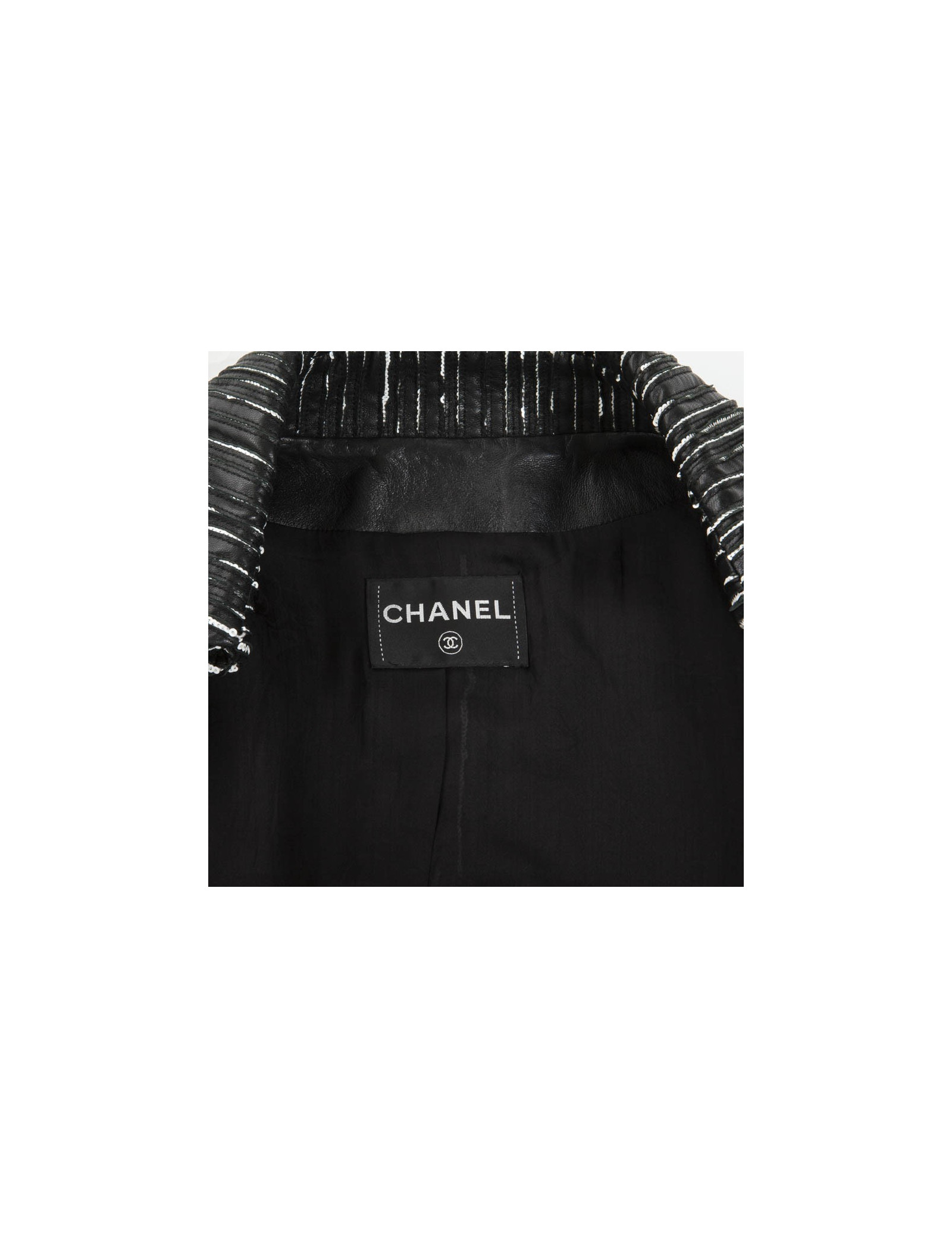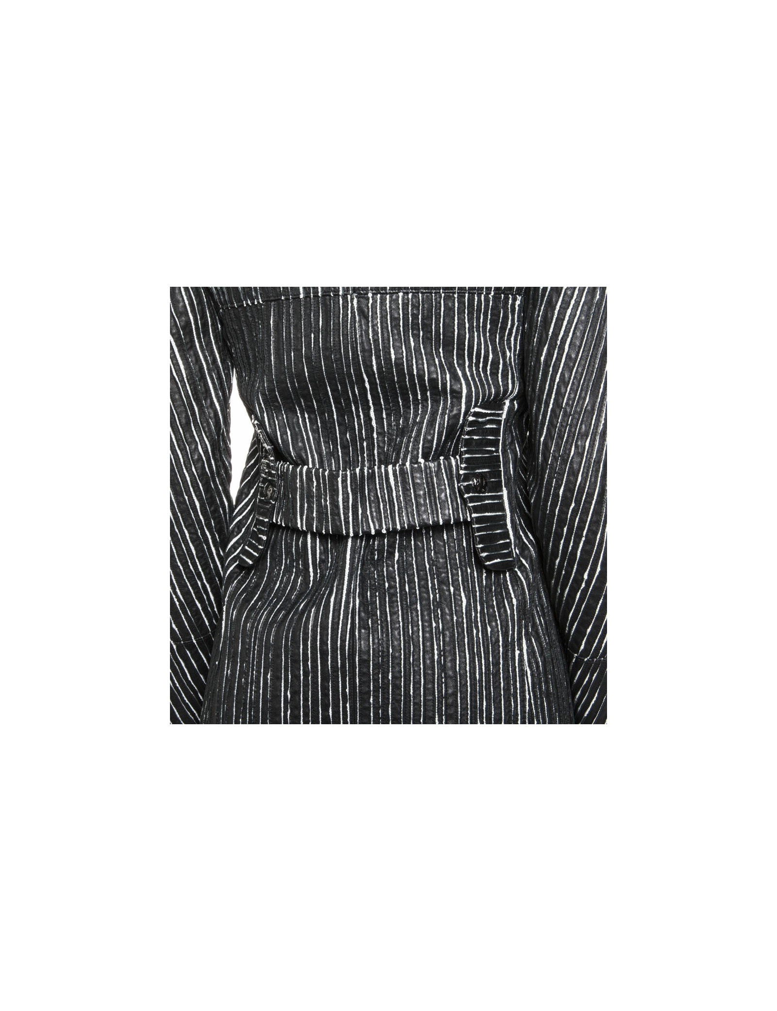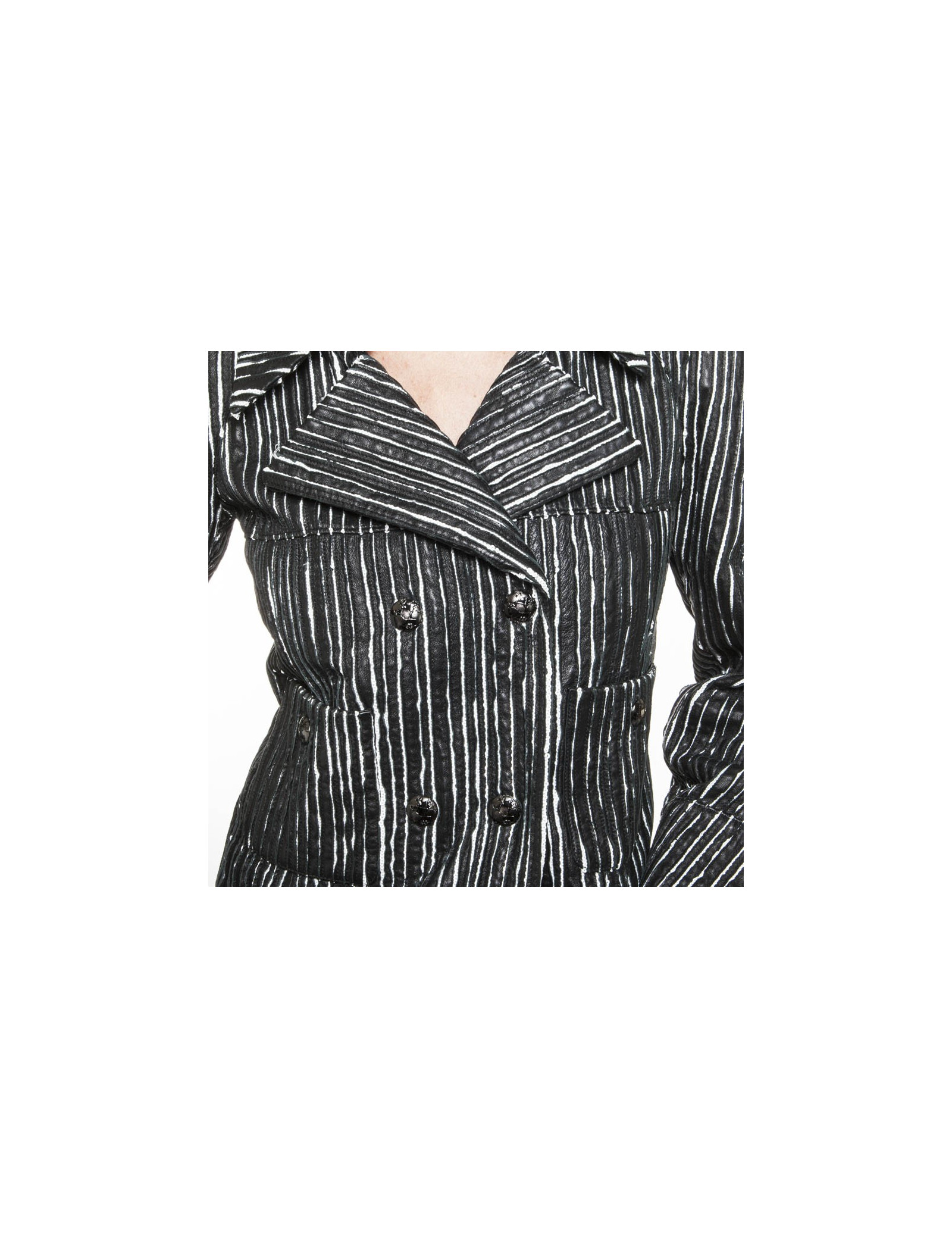 Caban CHANEL cuir rayé noir et blanc