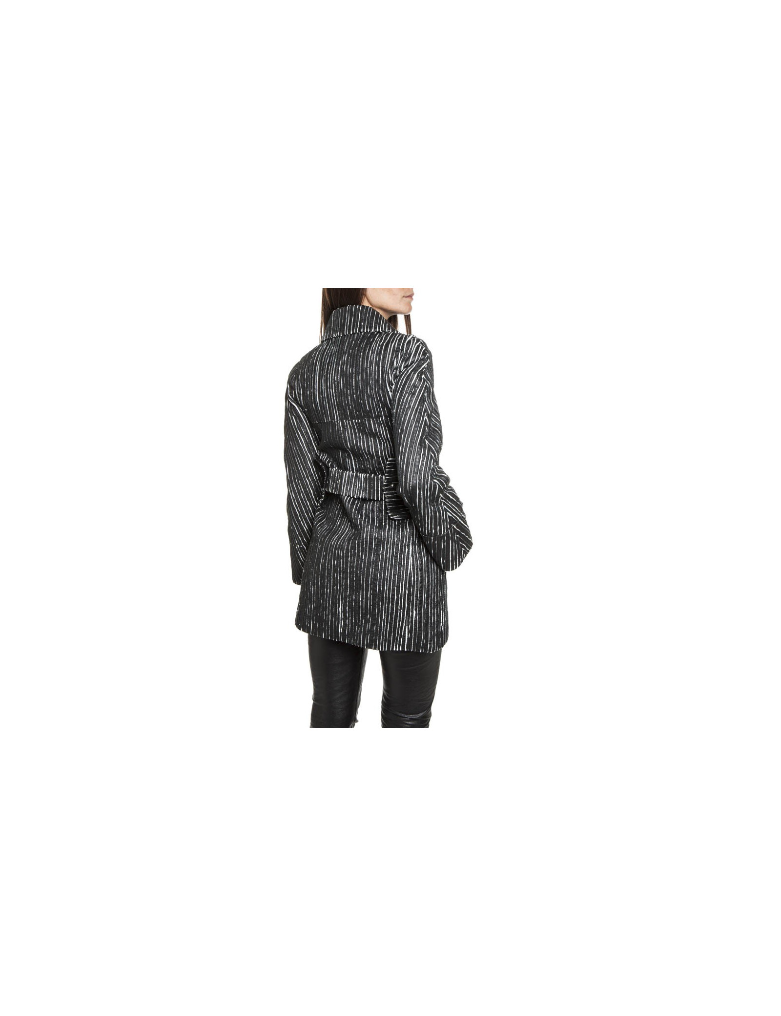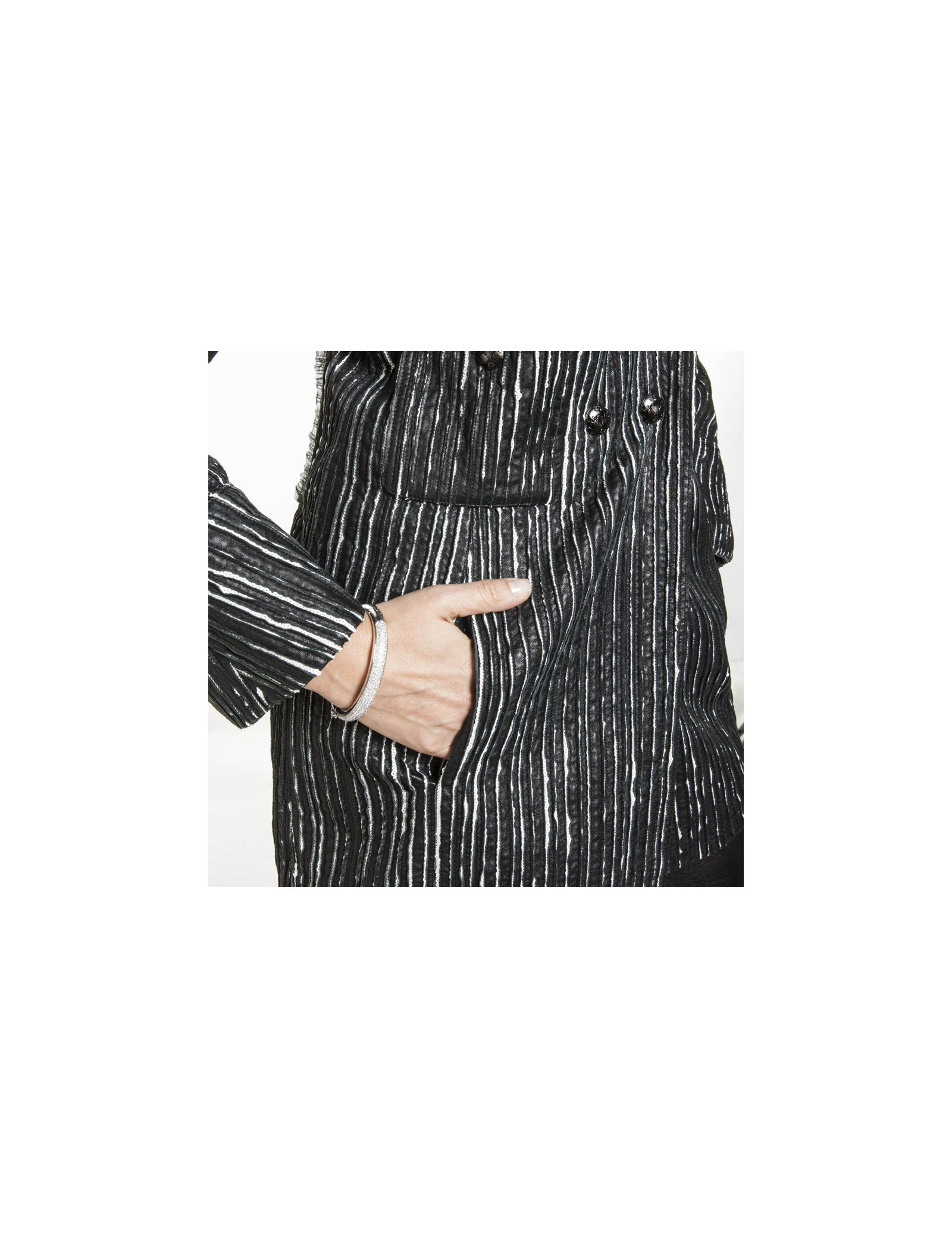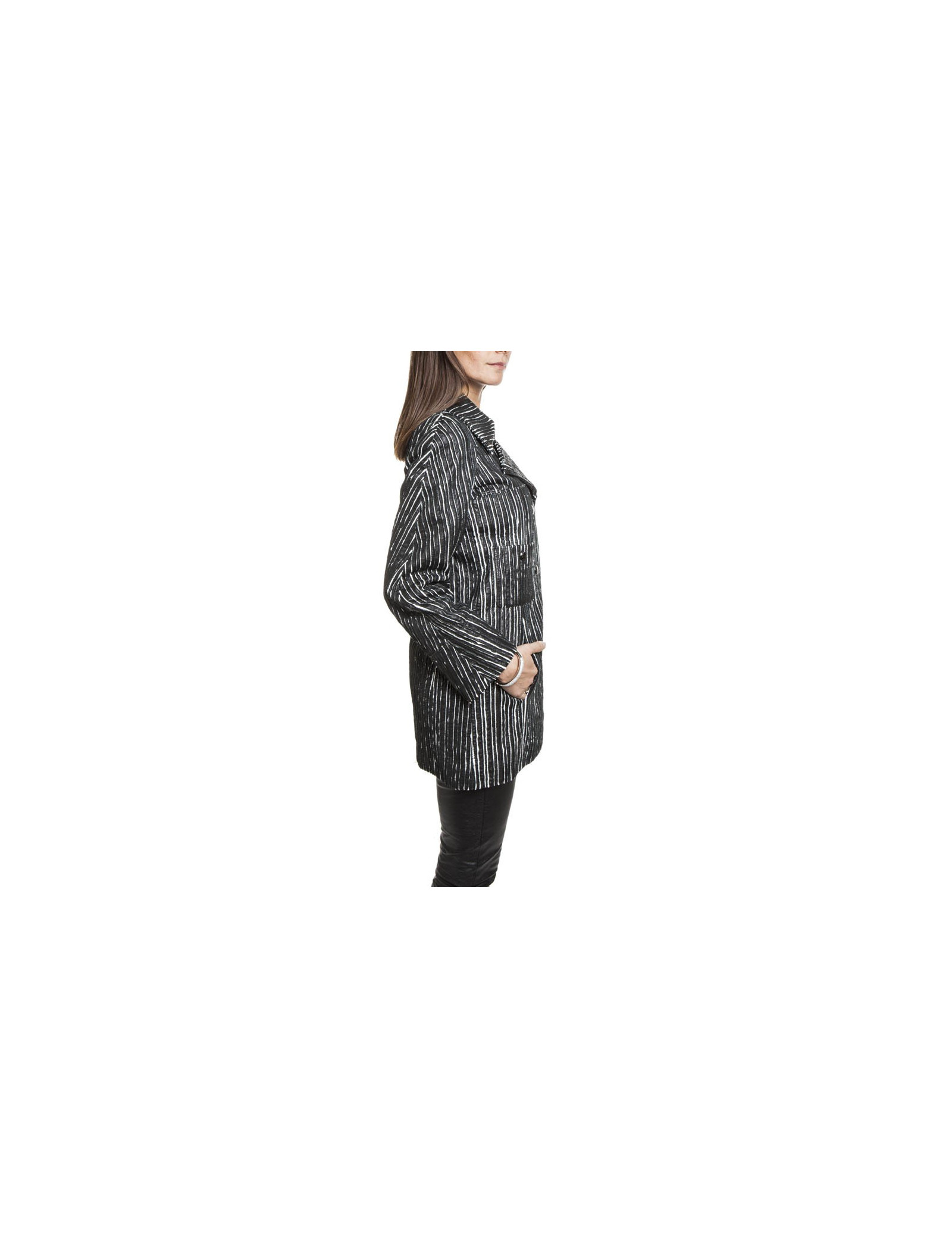 Caban CHANEL cuir rayé noir et blanc