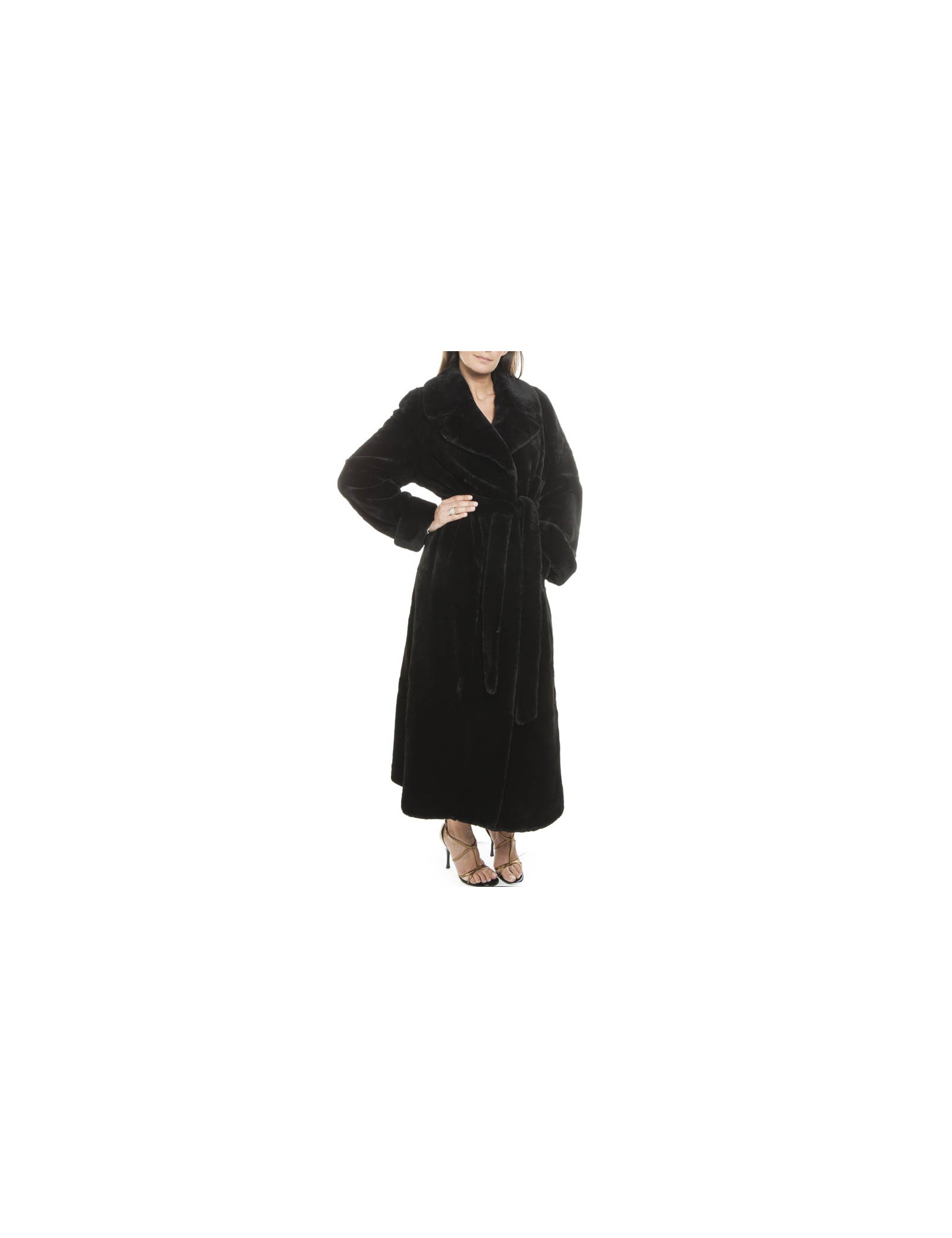 Long coat black shaved mink unbranded T40 EN