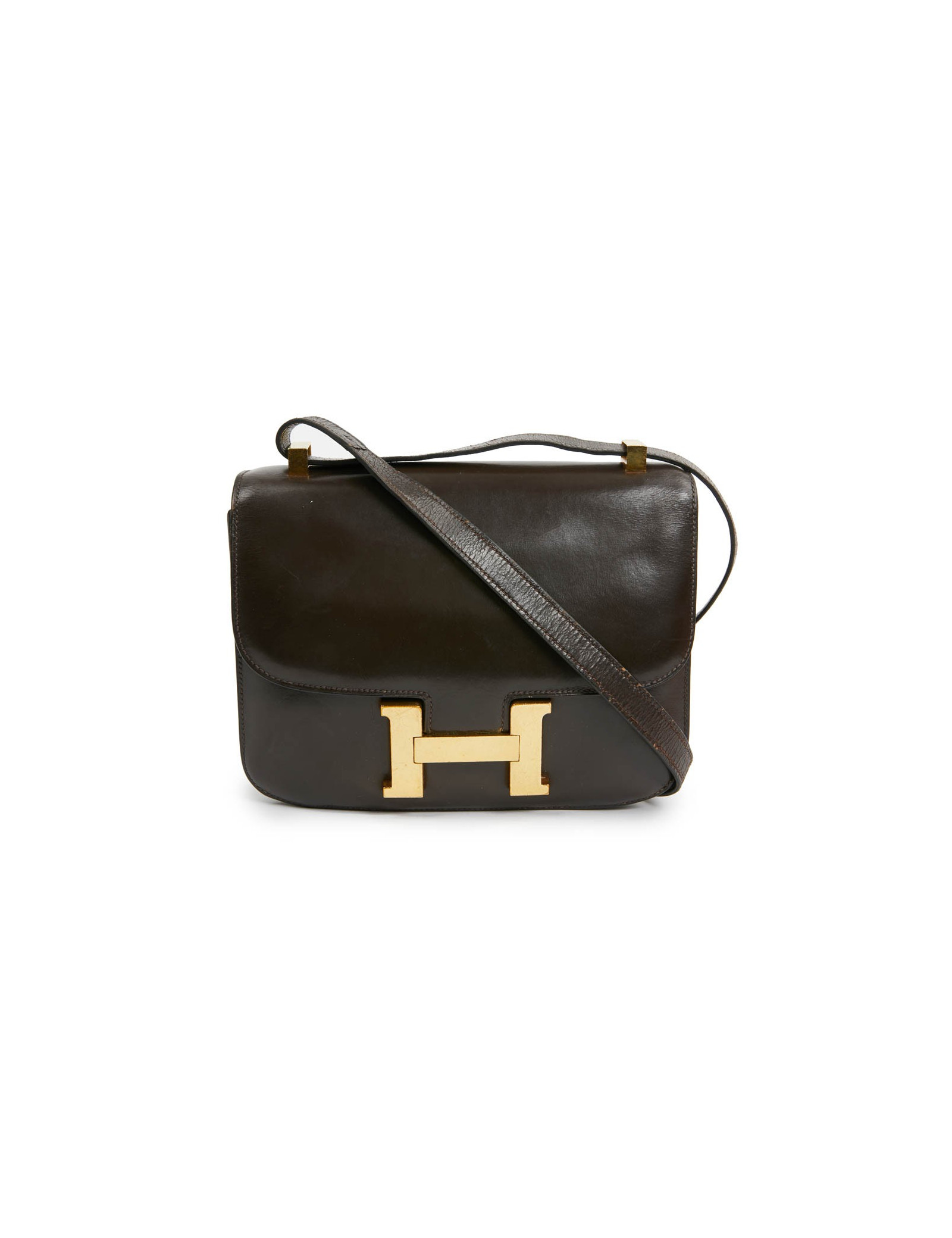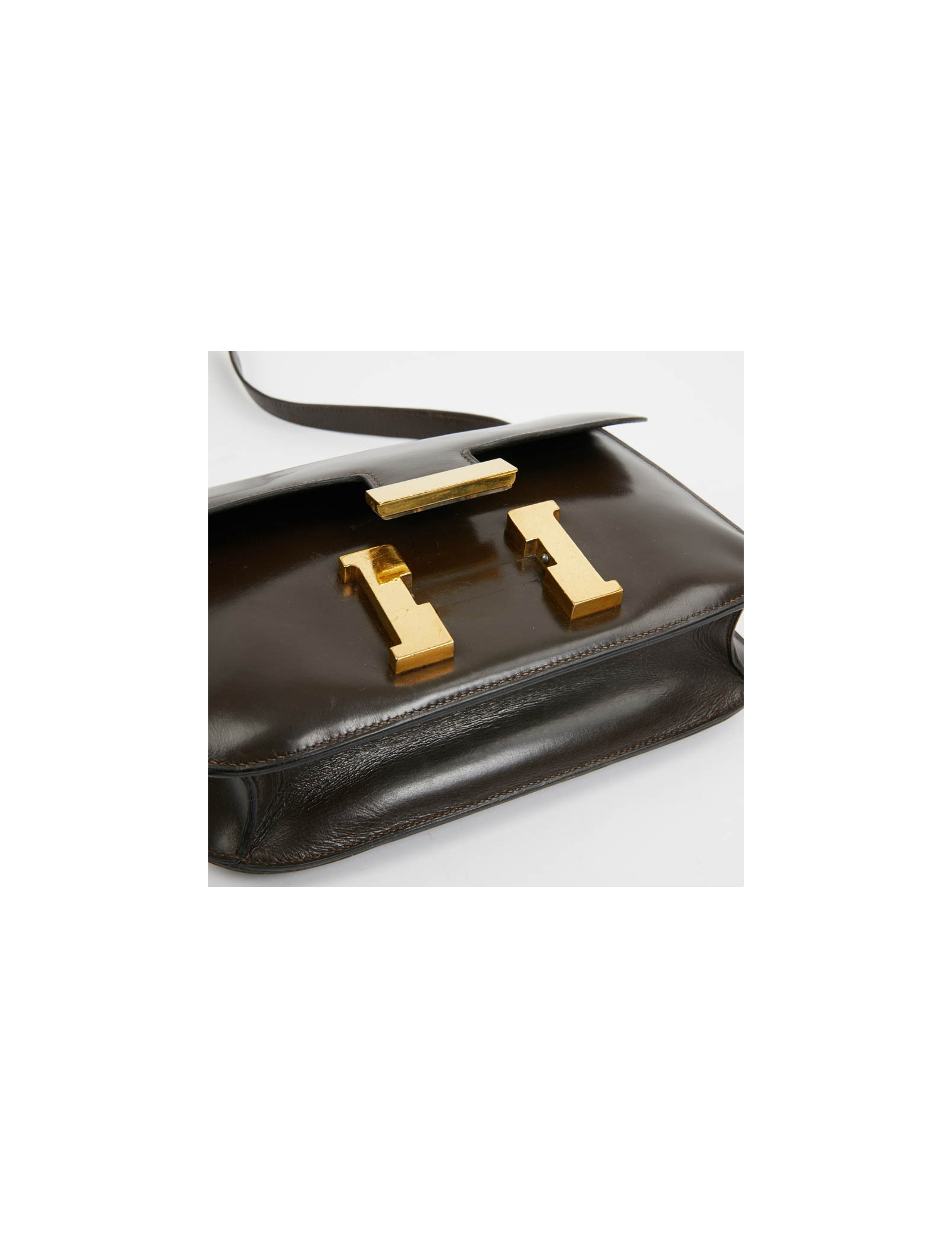 Made in France, this Constance bag is in brown box leather. Its dimensions: 23 X 16 X 7 cm. It is in good condition of use.