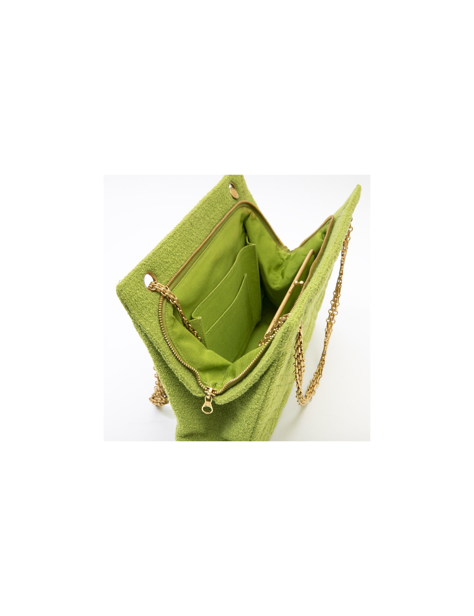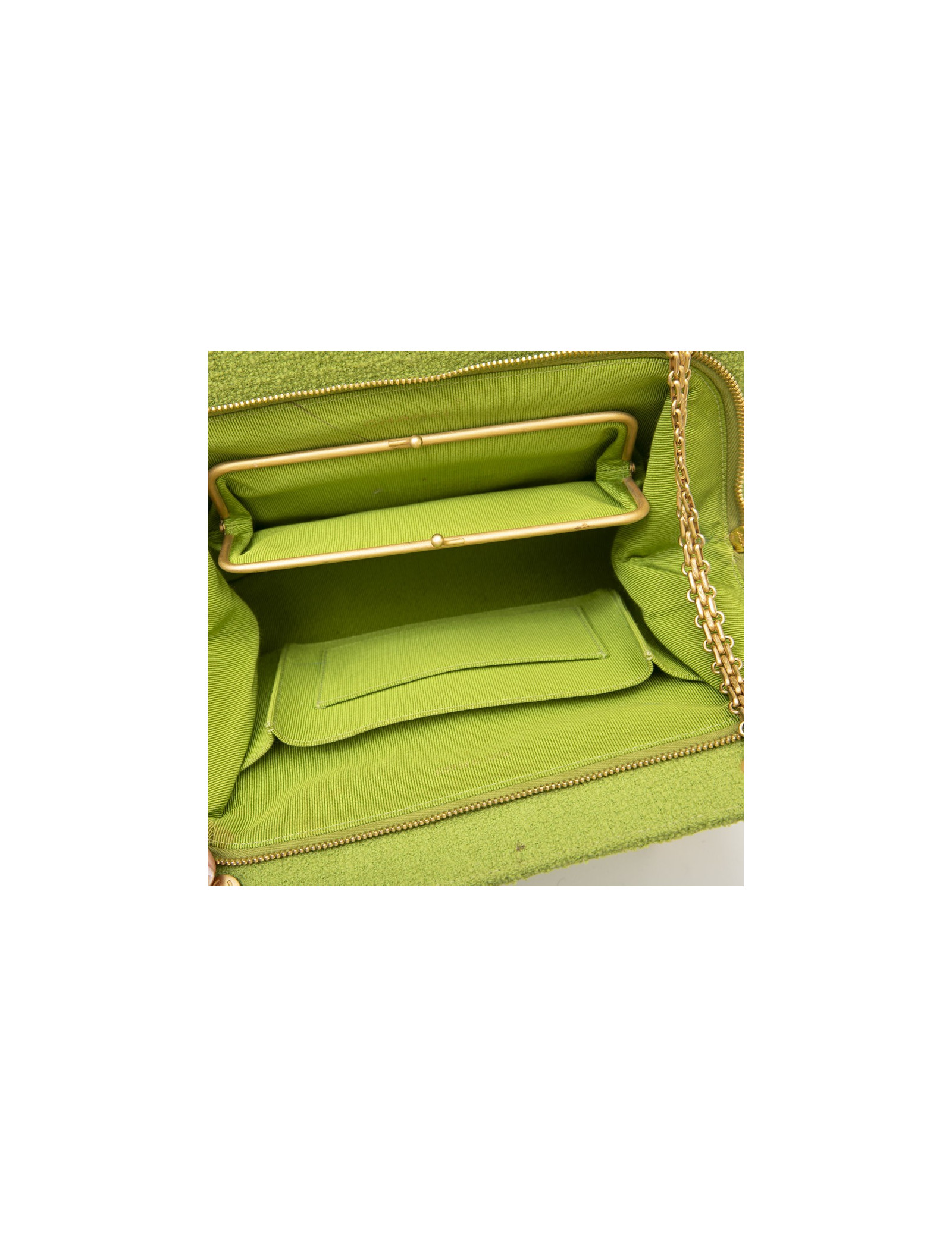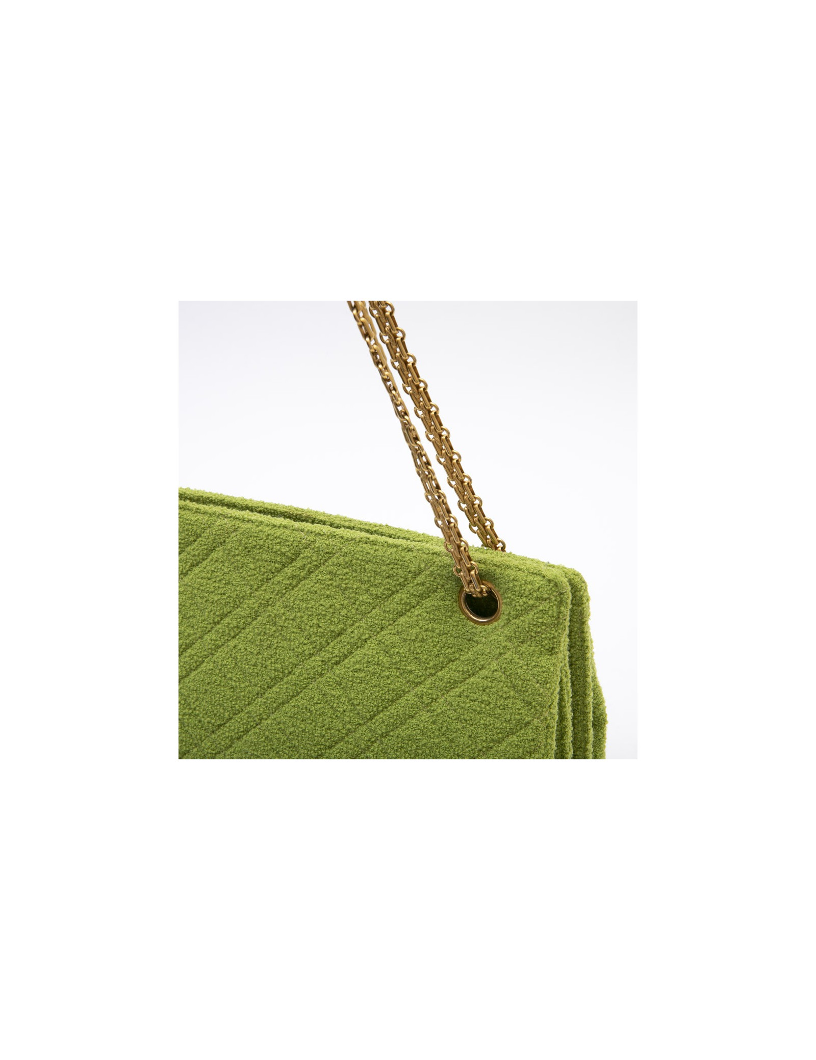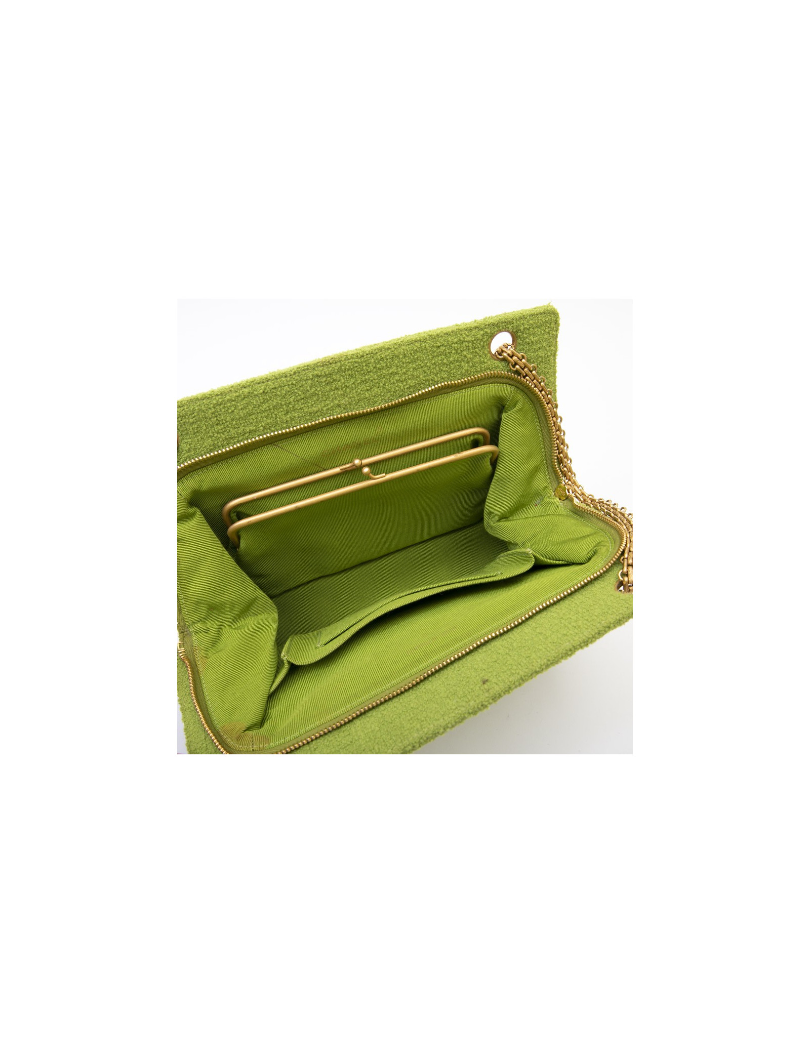Chanel vintage bag in anise green terry cloth. It is lined in anise green piqué fabric.